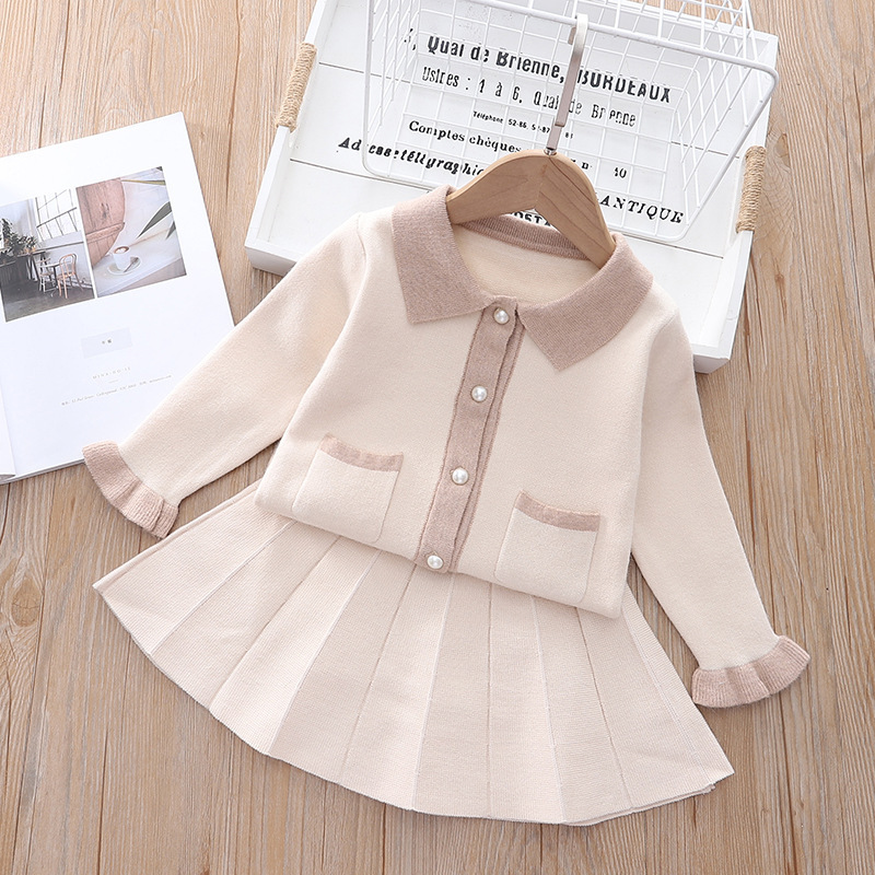 가을과 겨울 소녀 작은 샤넬 스타일 스웨터 카디건 스커트 2 피스 세트 3-5 세 소녀 우아한 스웨터 원피스스토어 가기