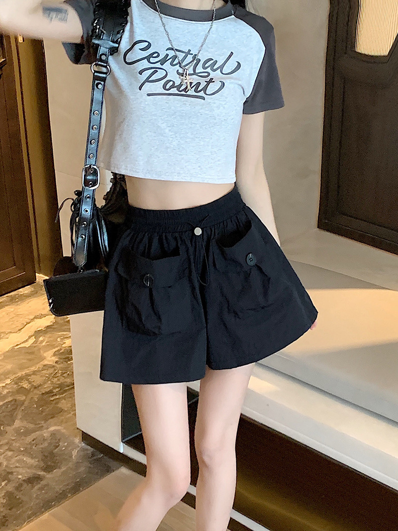 山本休闲裤高腰工装短裤女宽松直筒短裤直播货源现货一件代发