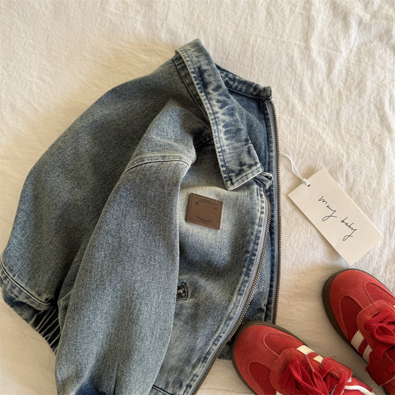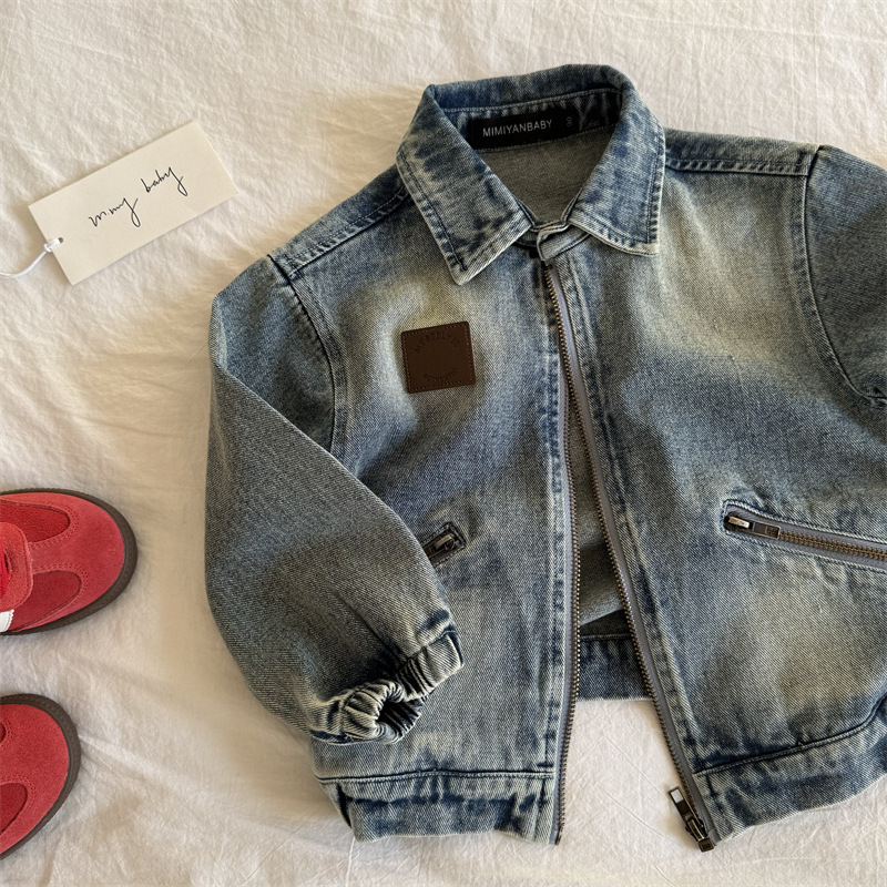 재고 있음 아동용 재킷 2025 봄 신상 남아 여아 심플 지퍼 데님 재킷 아기 한국 스타일 재킷 트렌디스토어 가기