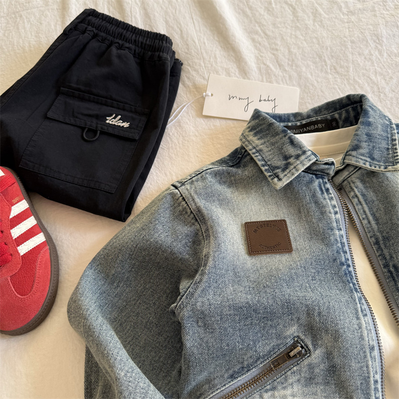 재고 있음 아동용 재킷 2025 봄 신상 남아 여아 심플 지퍼 데님 재킷 아기 한국 스타일 재킷 트렌디