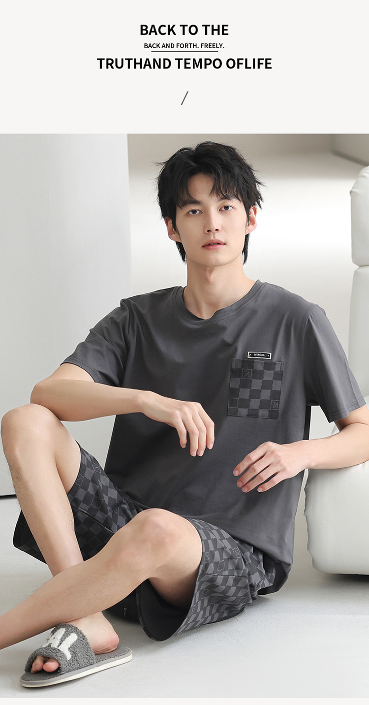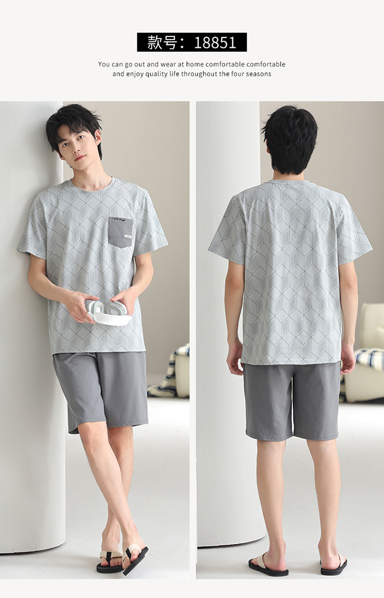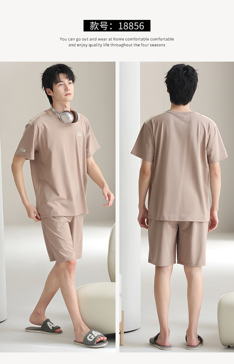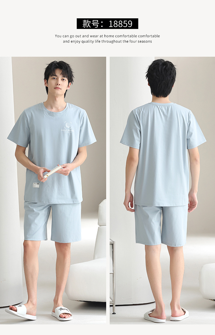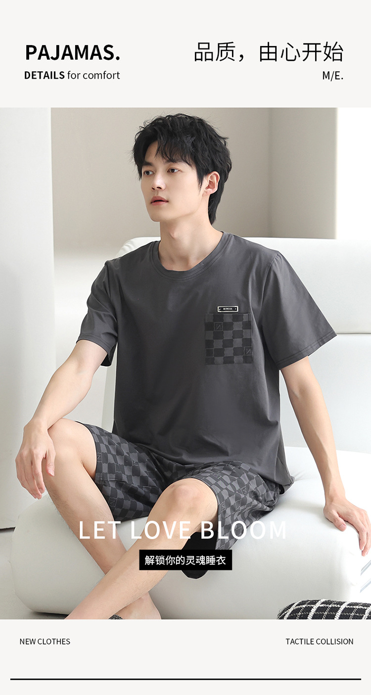 모달 파자마 남자 여름 2025 새로운 스타일 홈 의류 세트 짧은 소매 느슨한 플러스 사이즈 시원한 외부 착용스토어 가기