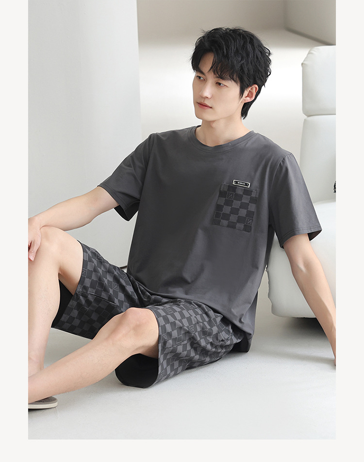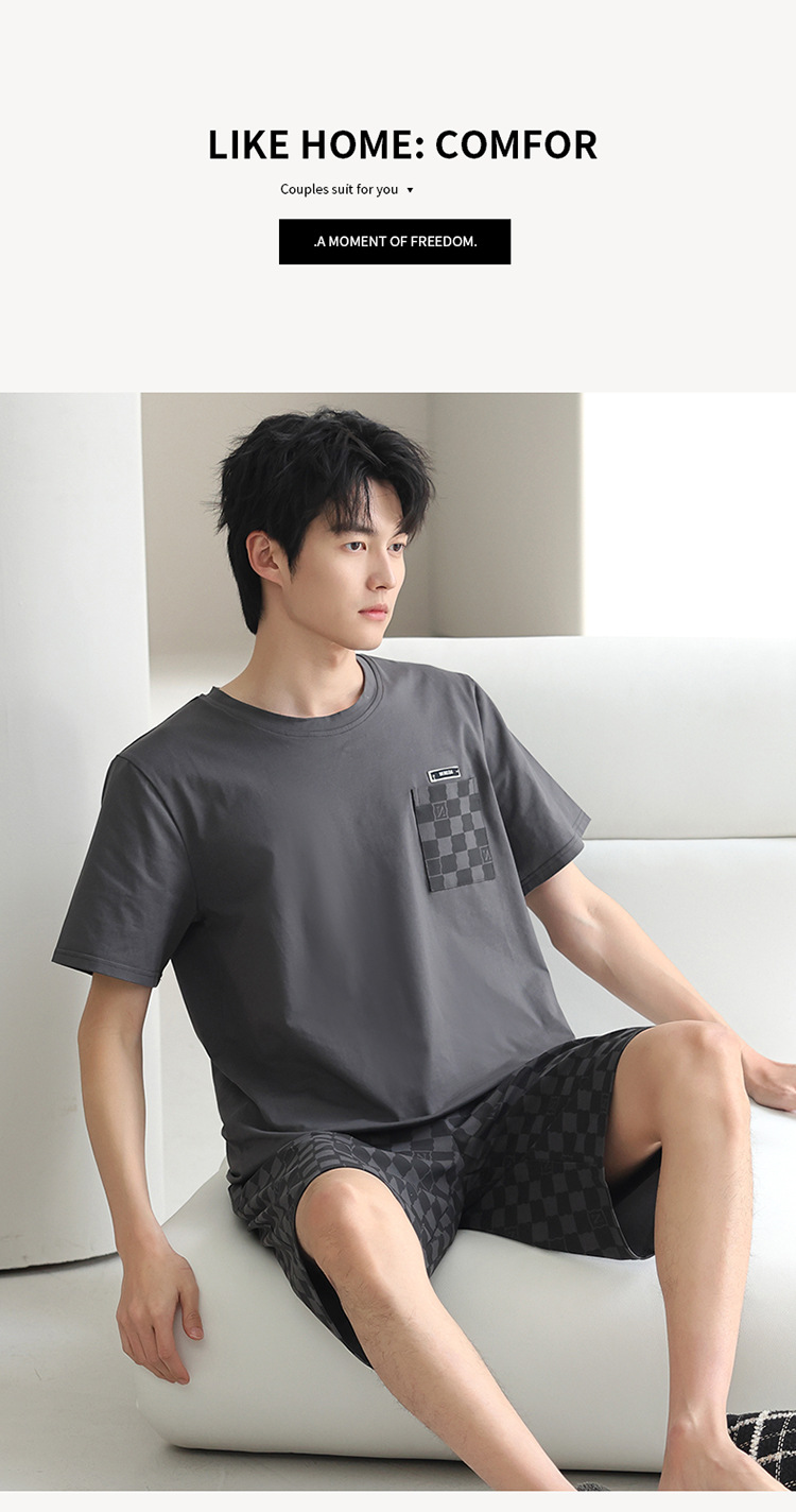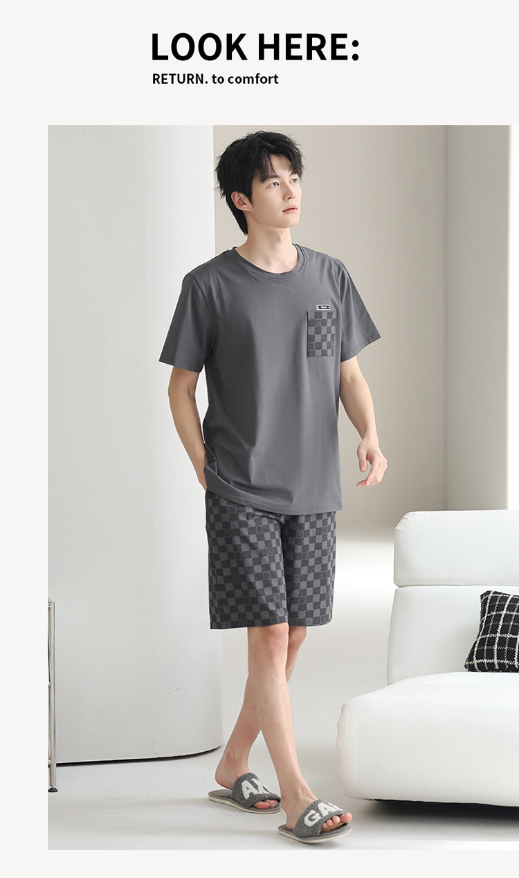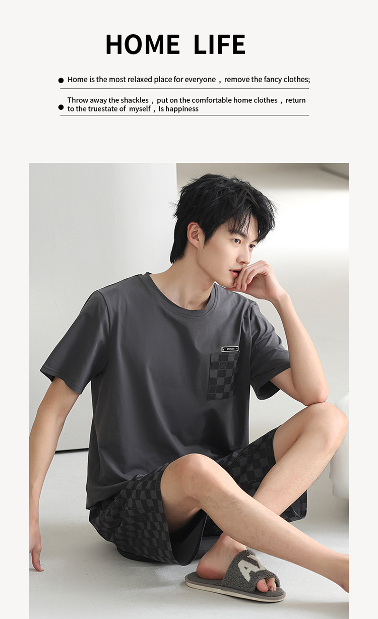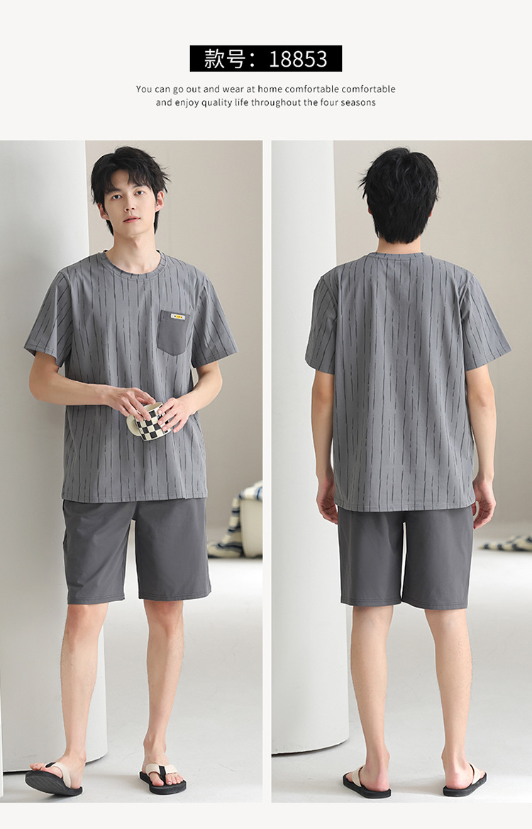 모달 파자마 남자 여름 2025 새로운 스타일 홈 의류 세트 짧은 소매 느슨한 플러스 사이즈 시원한 외부 착용스토어 가기