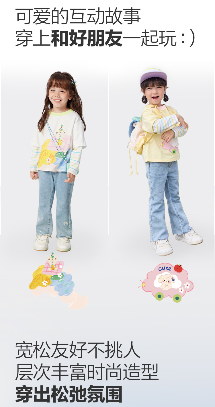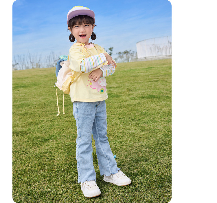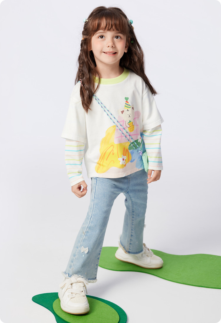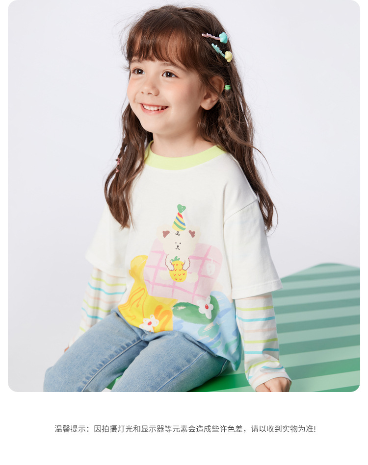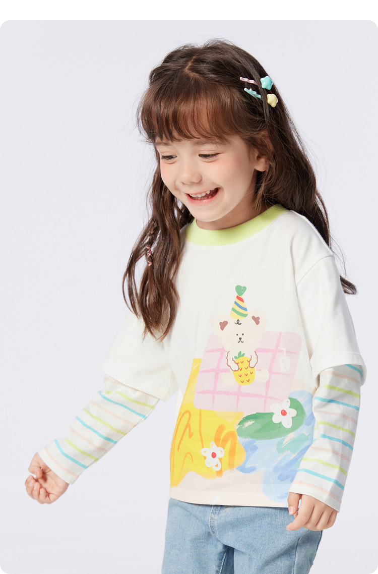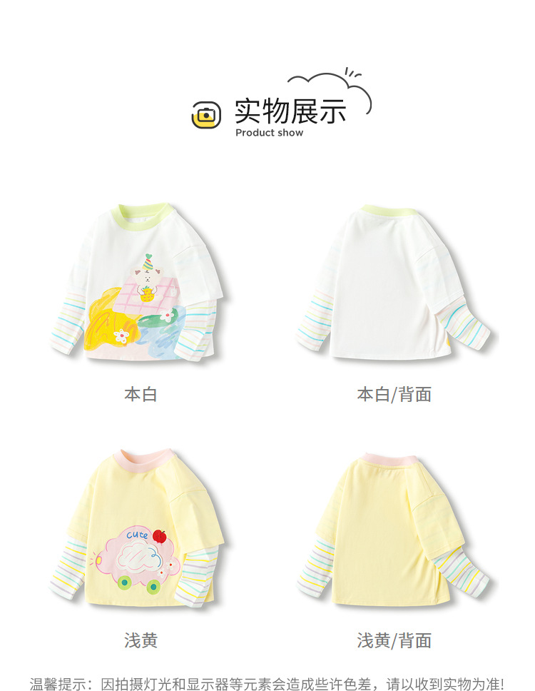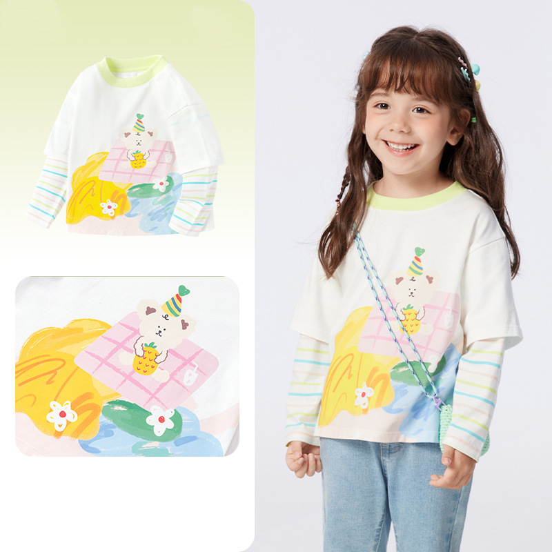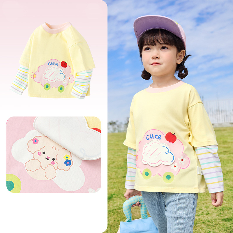 소녀 긴팔 티셔츠 얇은 가짜 투피스 베이스 셔츠 순수 면 봄과 가을 2025 새로운 3 살 아기 탑스토어 가기