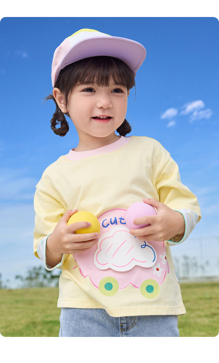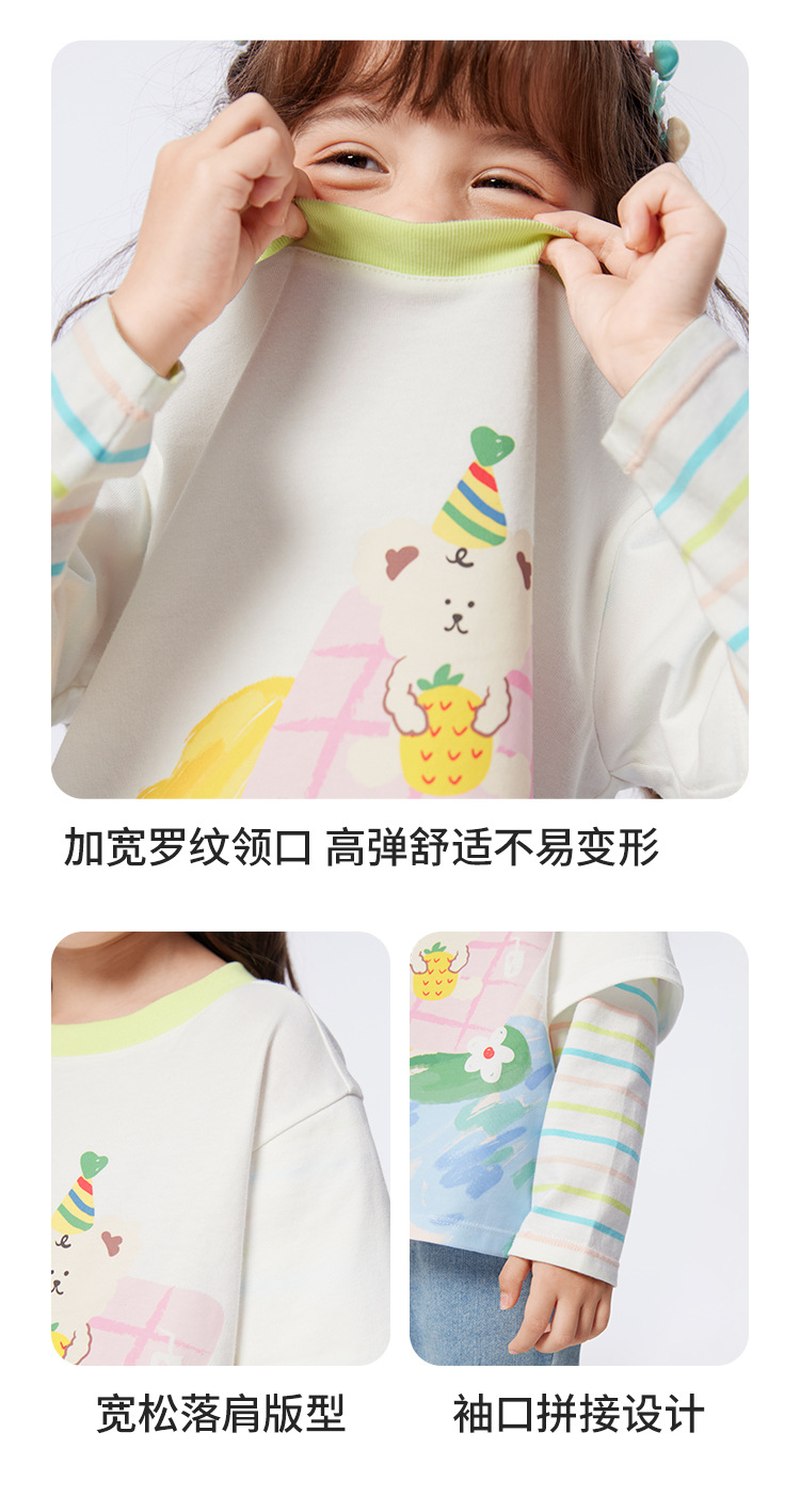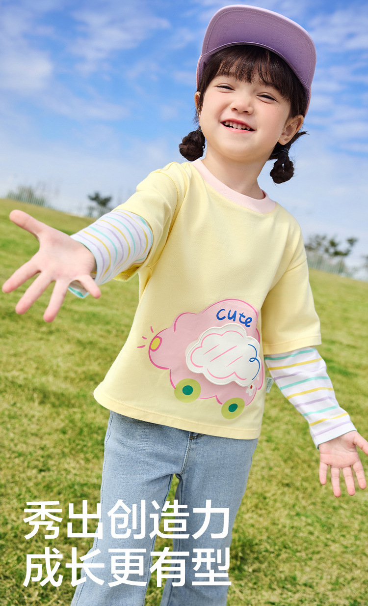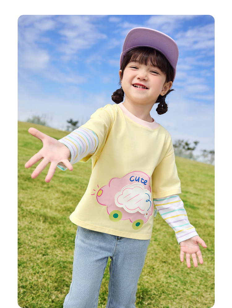 소녀 긴팔 티셔츠 얇은 가짜 투피스 베이스 셔츠 순수 면 봄과 가을 2025 새로운 3 살 아기 탑