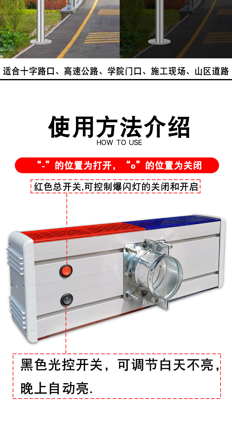 태양 충전 경고 플래시 라이트 교차로 안전 깜박이는 야간 건설 신호 교통 도로 밝은 길가스토어 가기