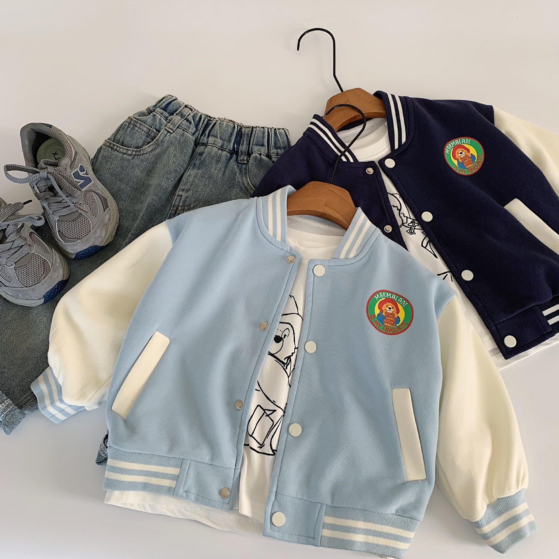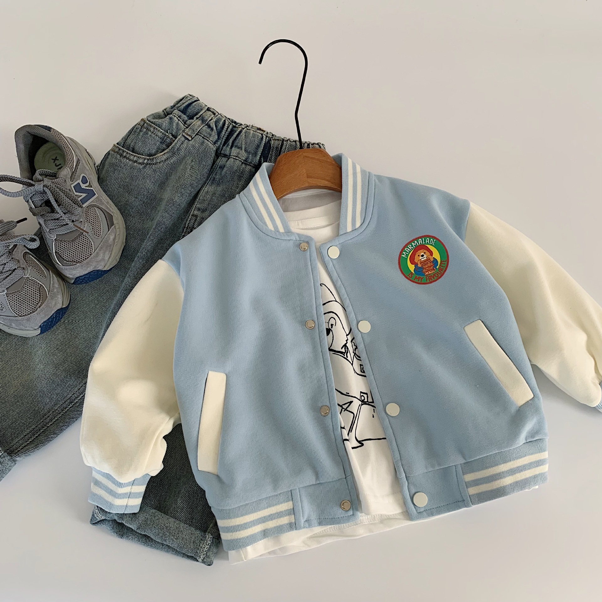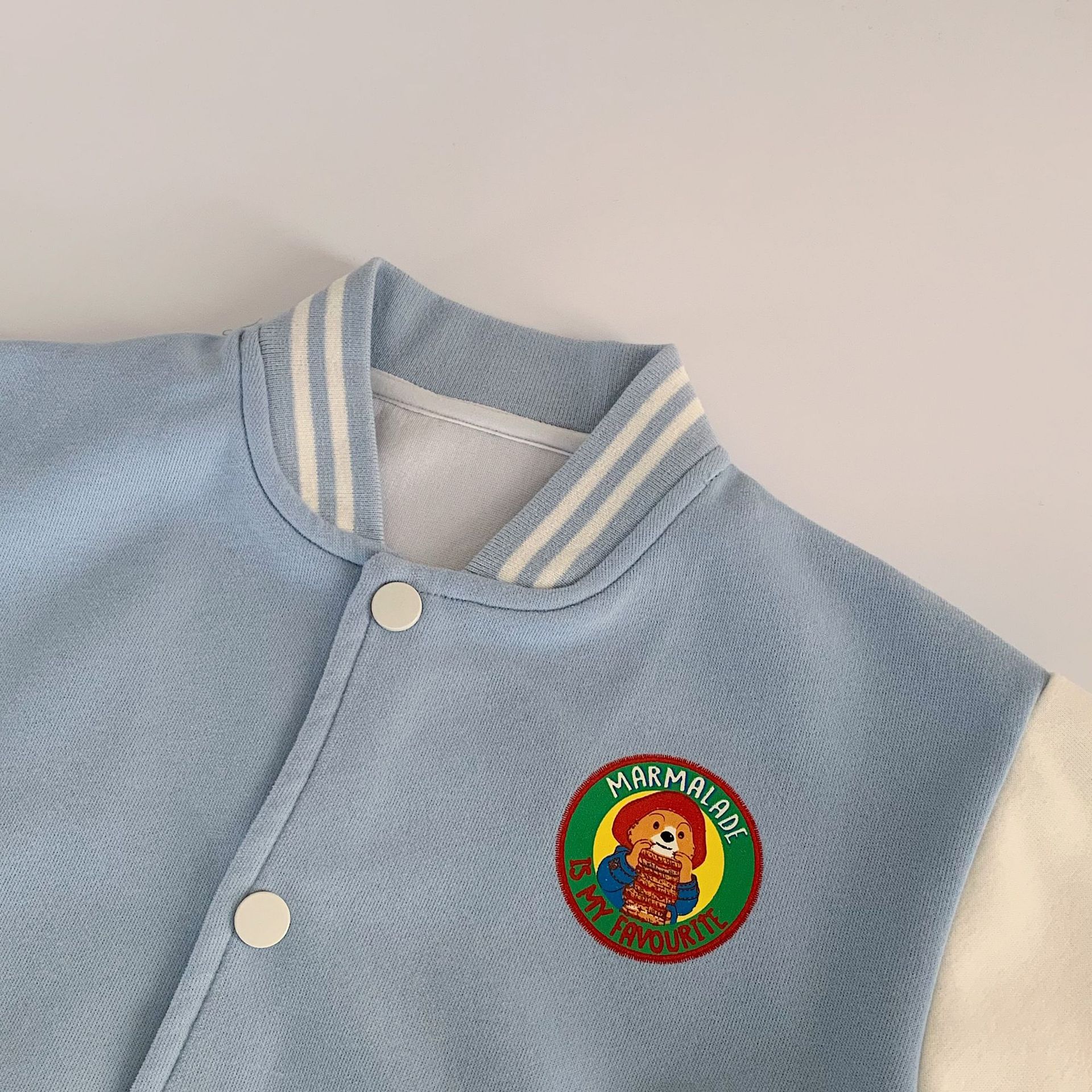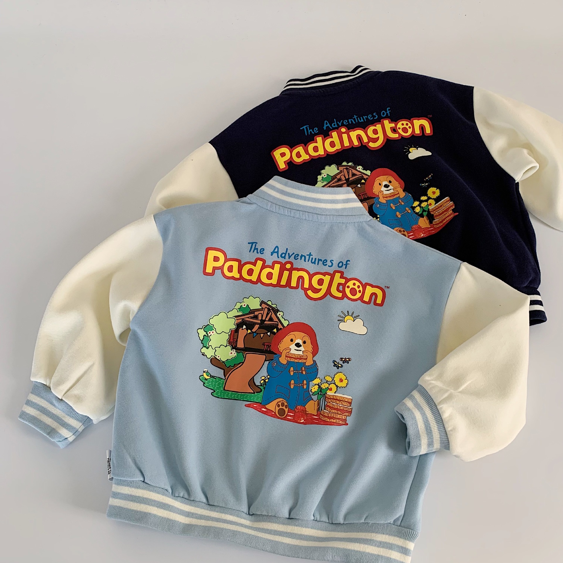 Maibao 어린이 가을 재킷 2025 새로운 한국어 버전 소년과 소녀 패딩턴 베어 야구 유니폼 베이비 스타일 탑스토어 가기