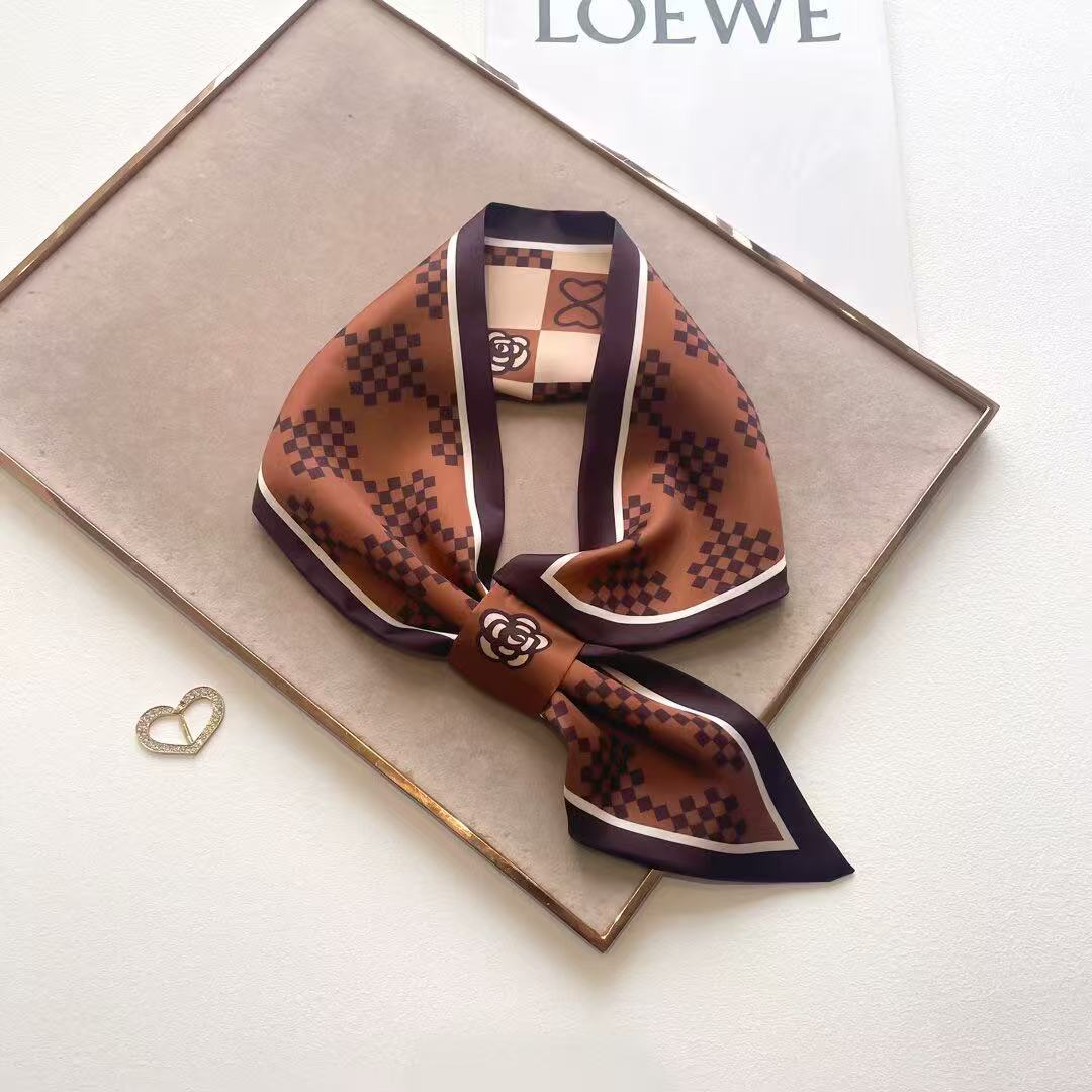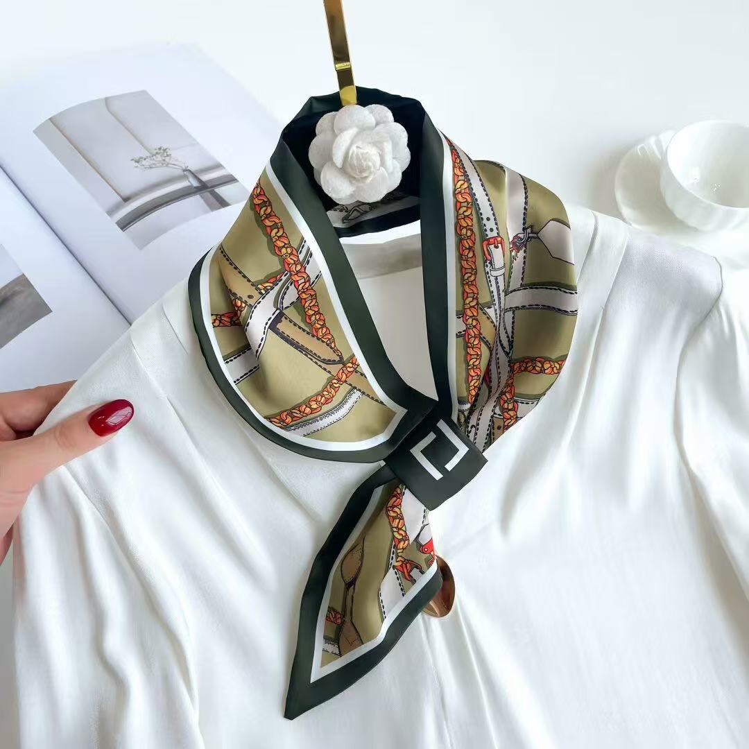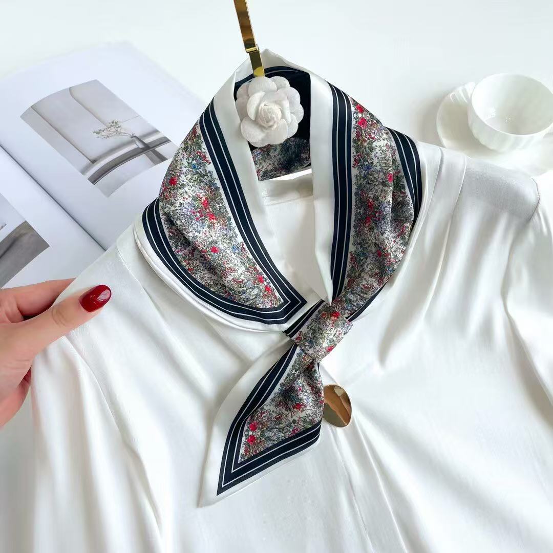 셔츠 앵글 스카프 봄과 여름 새로운 시뮬레이션 작은 귀 크로스 실크 스카프 앵글 리본 뜨거운 셔츠