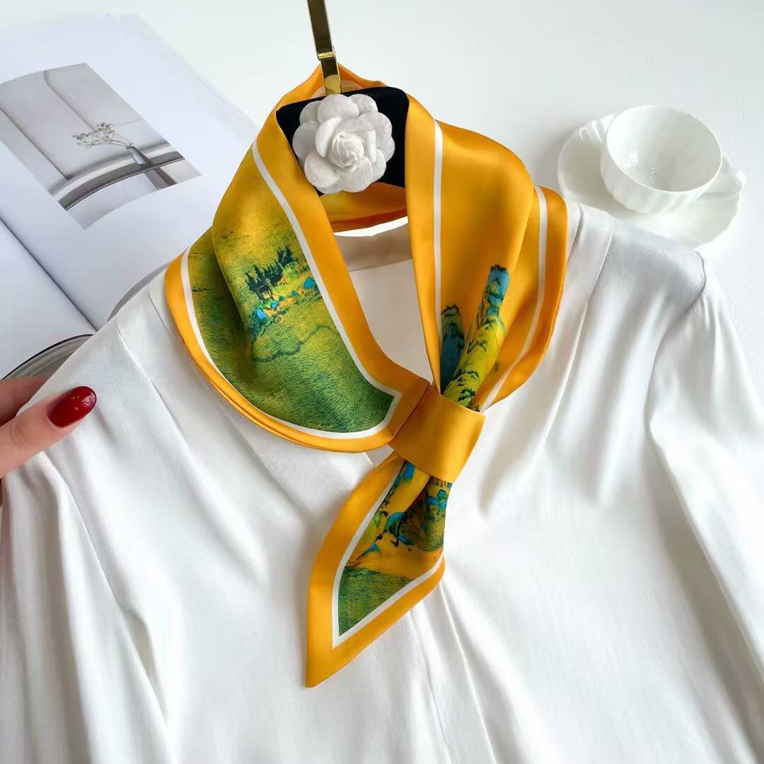 셔츠 앵글 스카프 봄과 여름 새로운 시뮬레이션 작은 귀 크로스 실크 스카프 앵글 리본 뜨거운 셔츠스토어 가기
