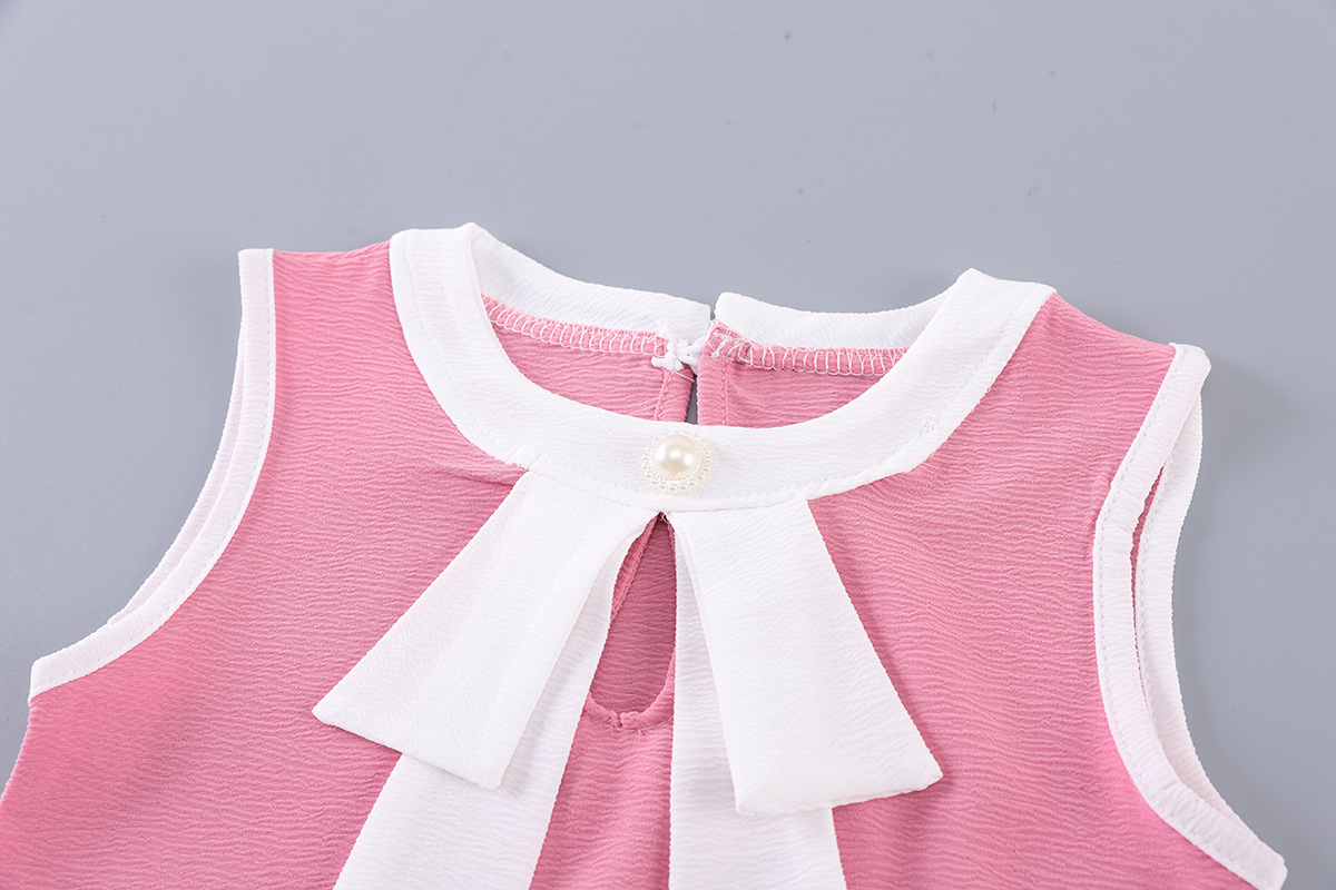 여아 민소매 여름복, 신상 아기 여름옷, 중소형 아동용 쉬폰 얇은 조끼 투피스 세트, 인기 폭발