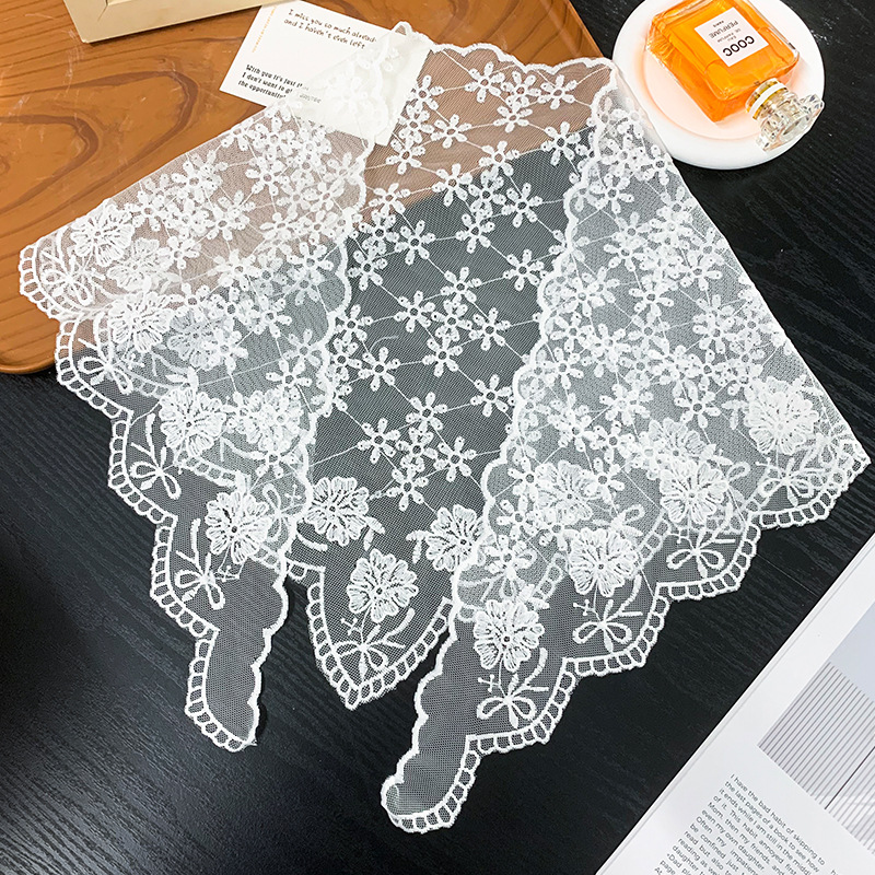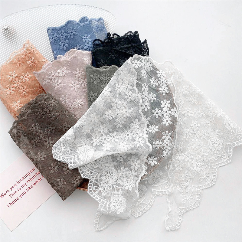 중공 레이스 삼각형 스카프 작은 실크 스카프 여성의 봄과 가을 여름 패션 장식 작은 스카프 넥타이 손목 헤어 밴드스토어 가기