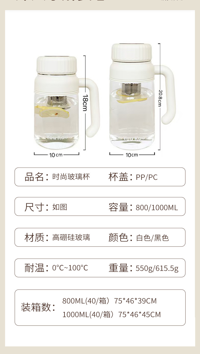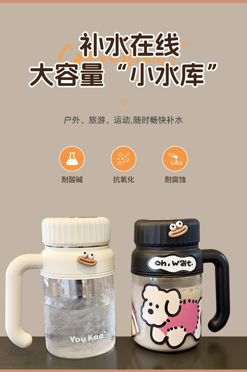 손잡이를 가진 새로운 대용량 마시는 컵 어린이 컵 높은 온도 저항하는 차 컵 높은 붕규산 유리 사용자 정의