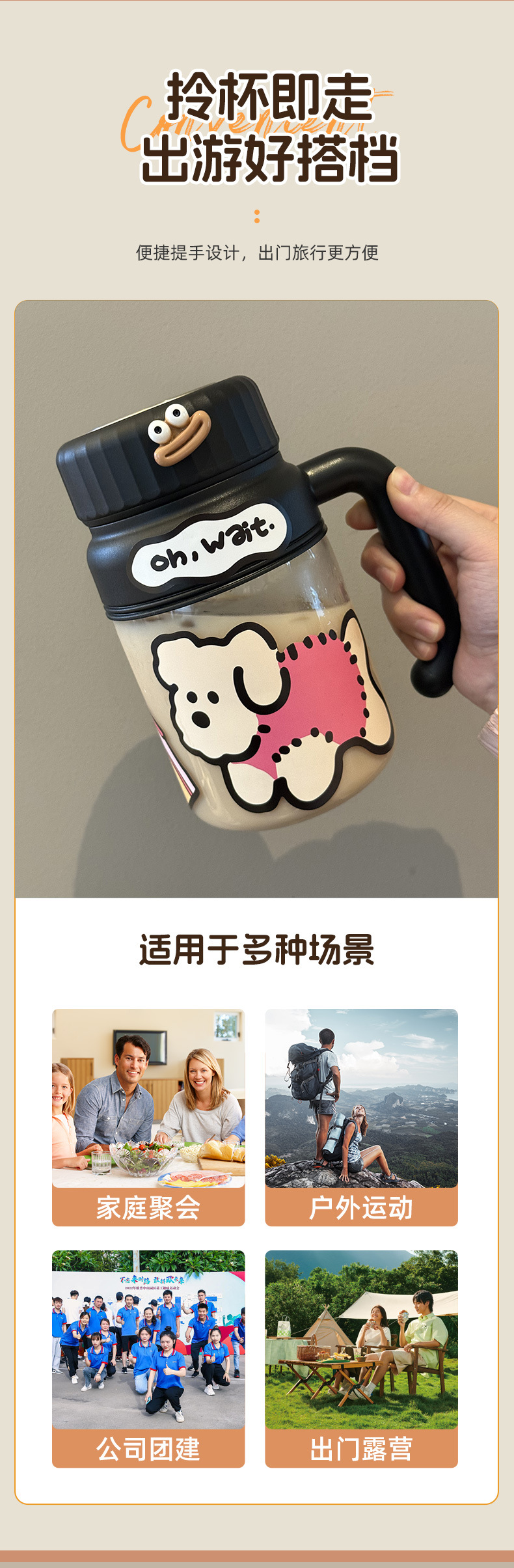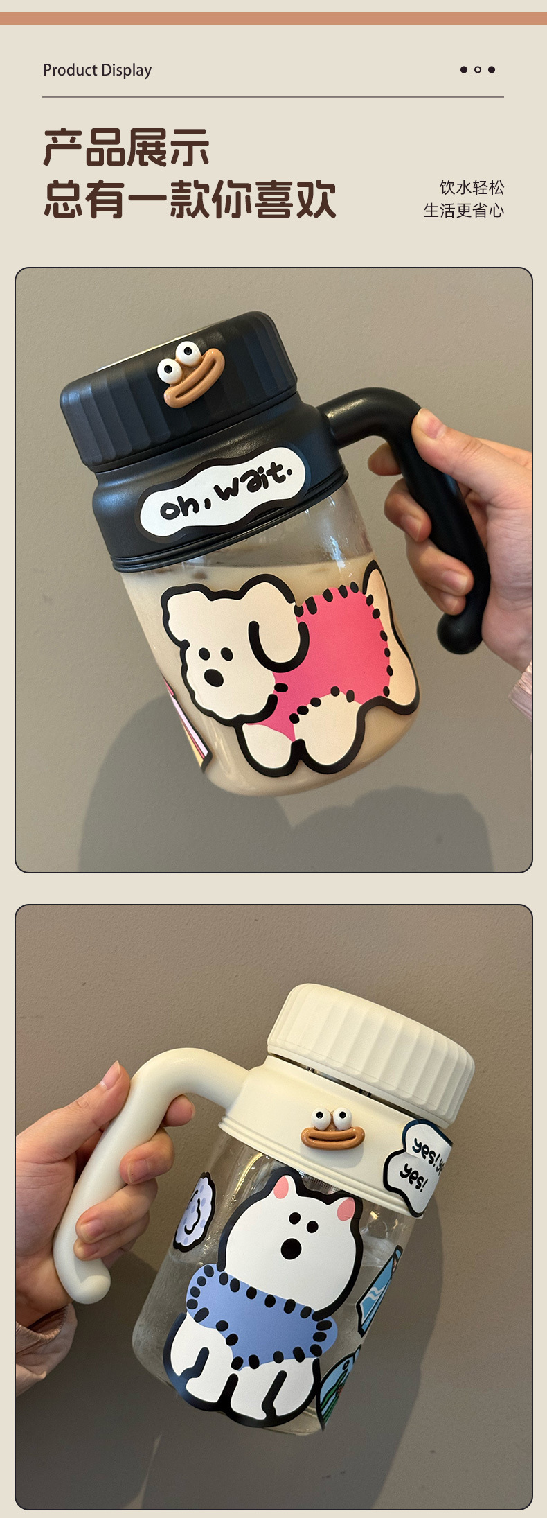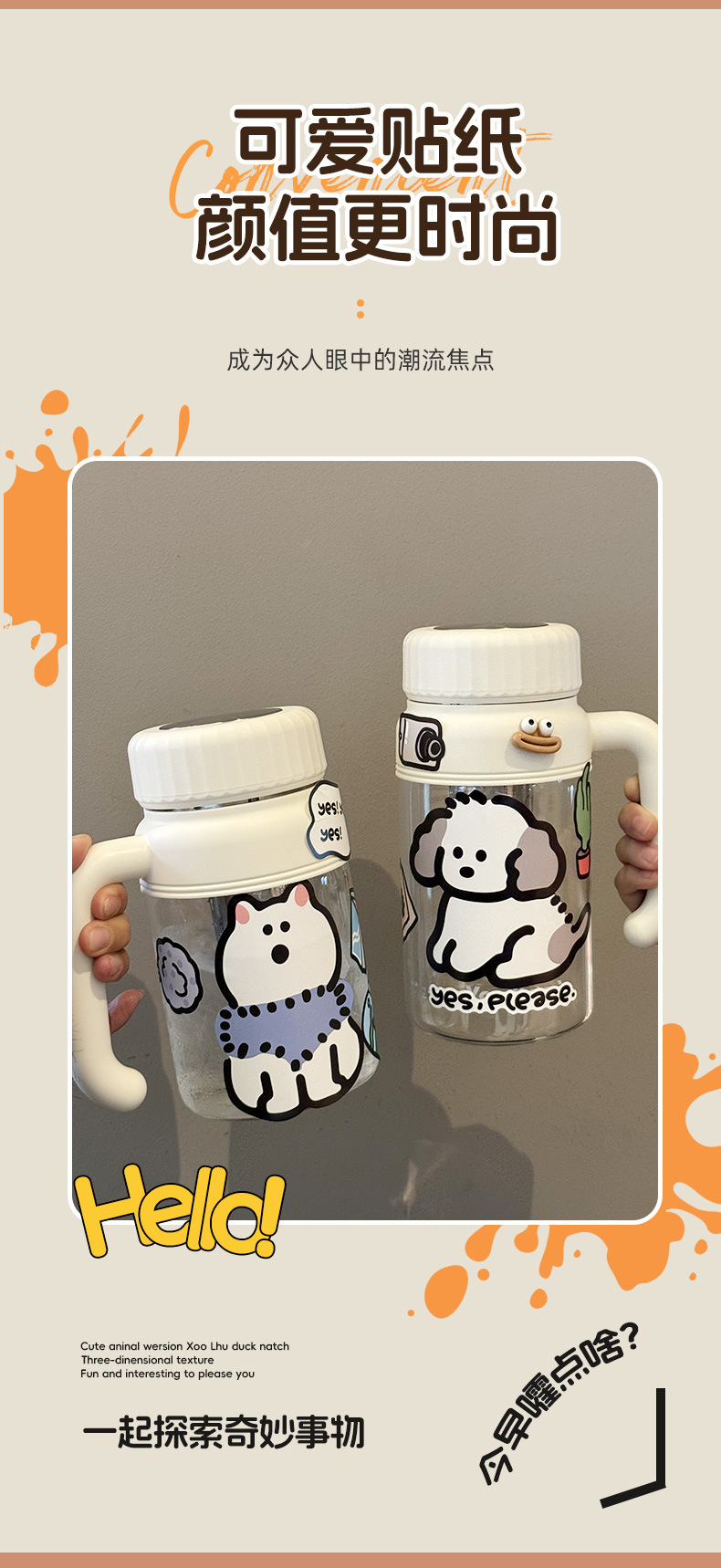 손잡이를 가진 새로운 대용량 마시는 컵 어린이 컵 높은 온도 저항하는 차 컵 높은 붕규산 유리 사용자 정의스토어 가기