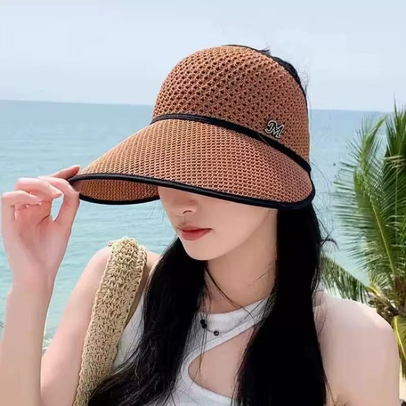 한국식 봄과 가을 새 모자 여자 니트 메쉬 빈 탑 모자 선 스크린 태양 모자 여름 올 매치 캐주얼 태양 모자스토어 가기