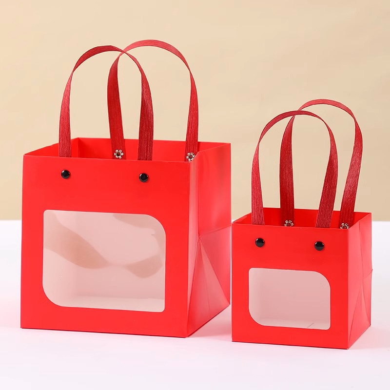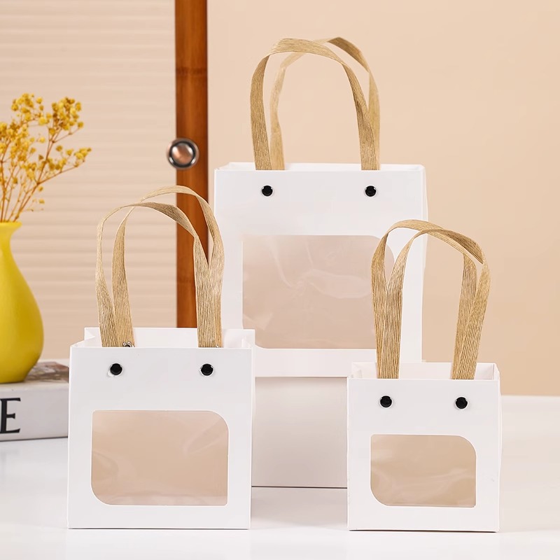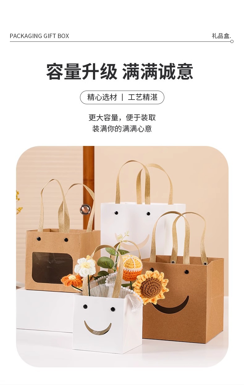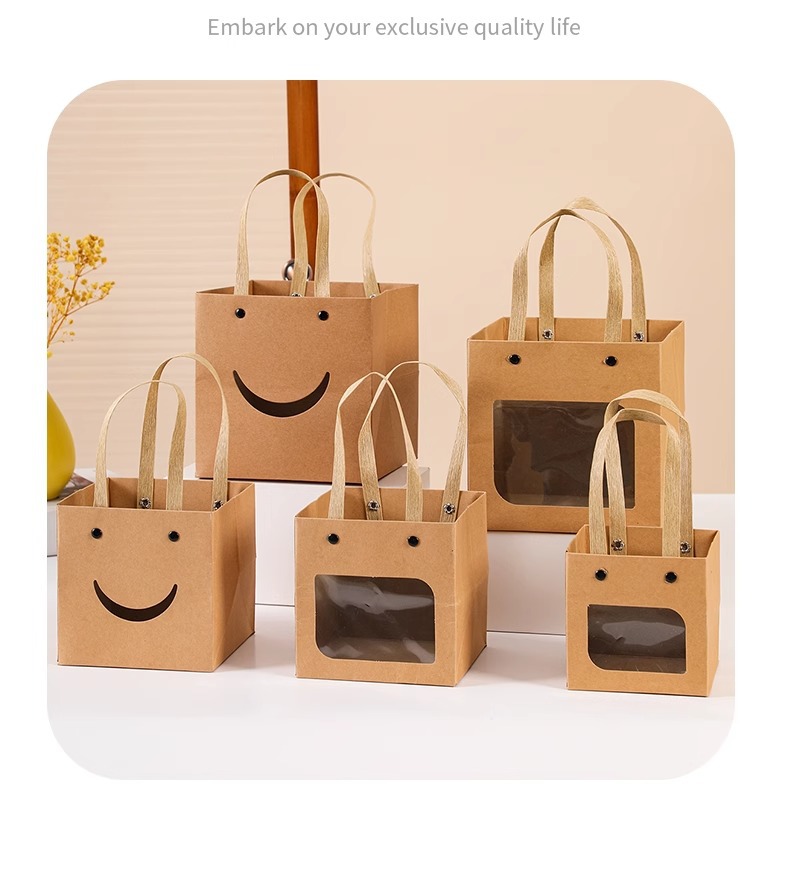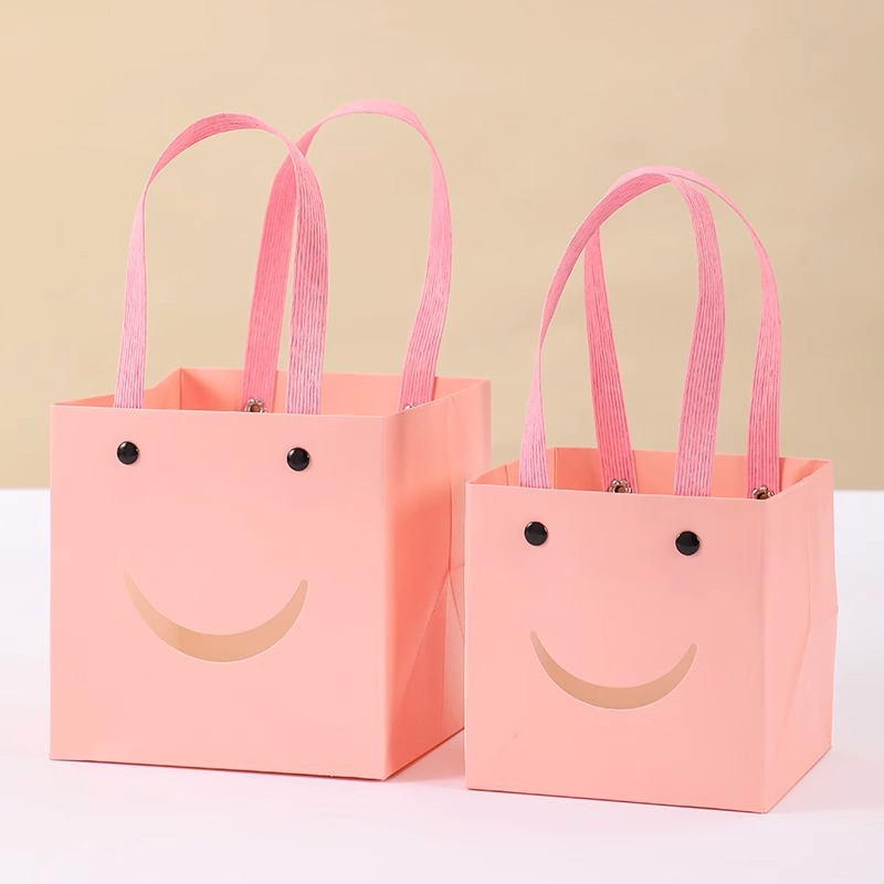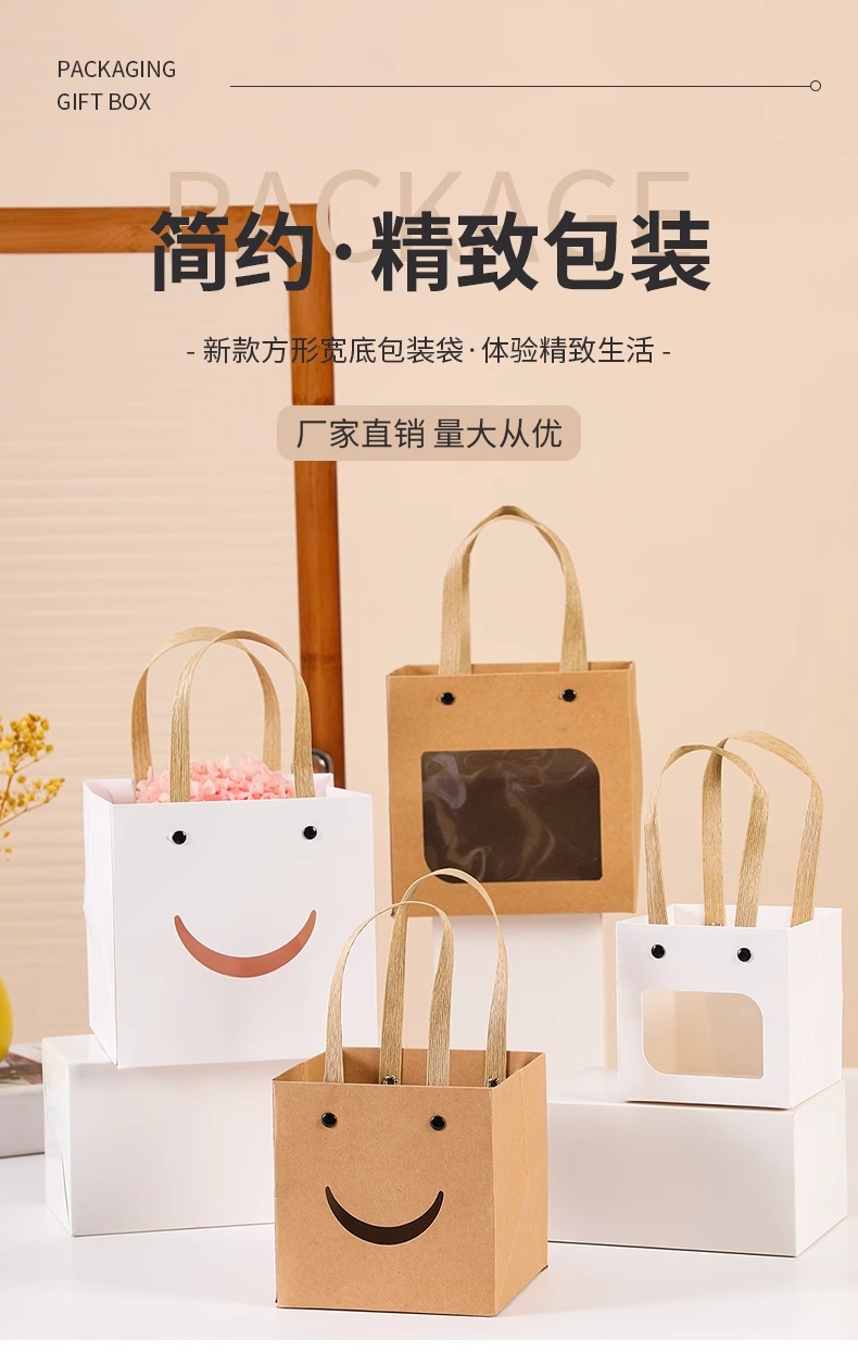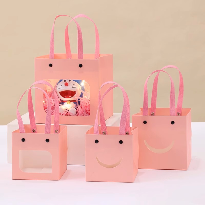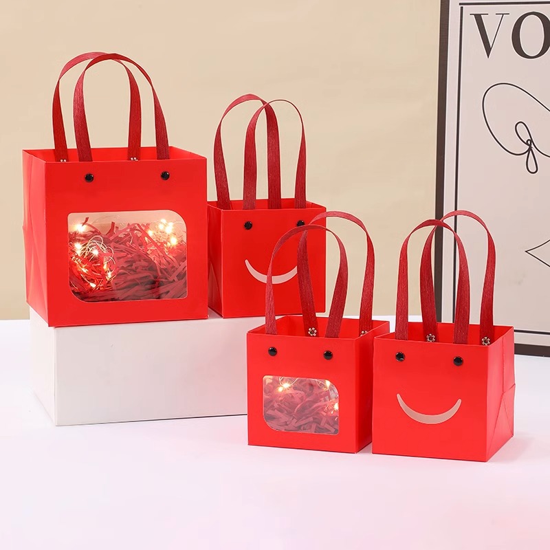 사각형 투명 창 선물 가방 소형 스마일 휴대용 명절 선물 가방 생일 선물 작은 선물 가방스토어 가기