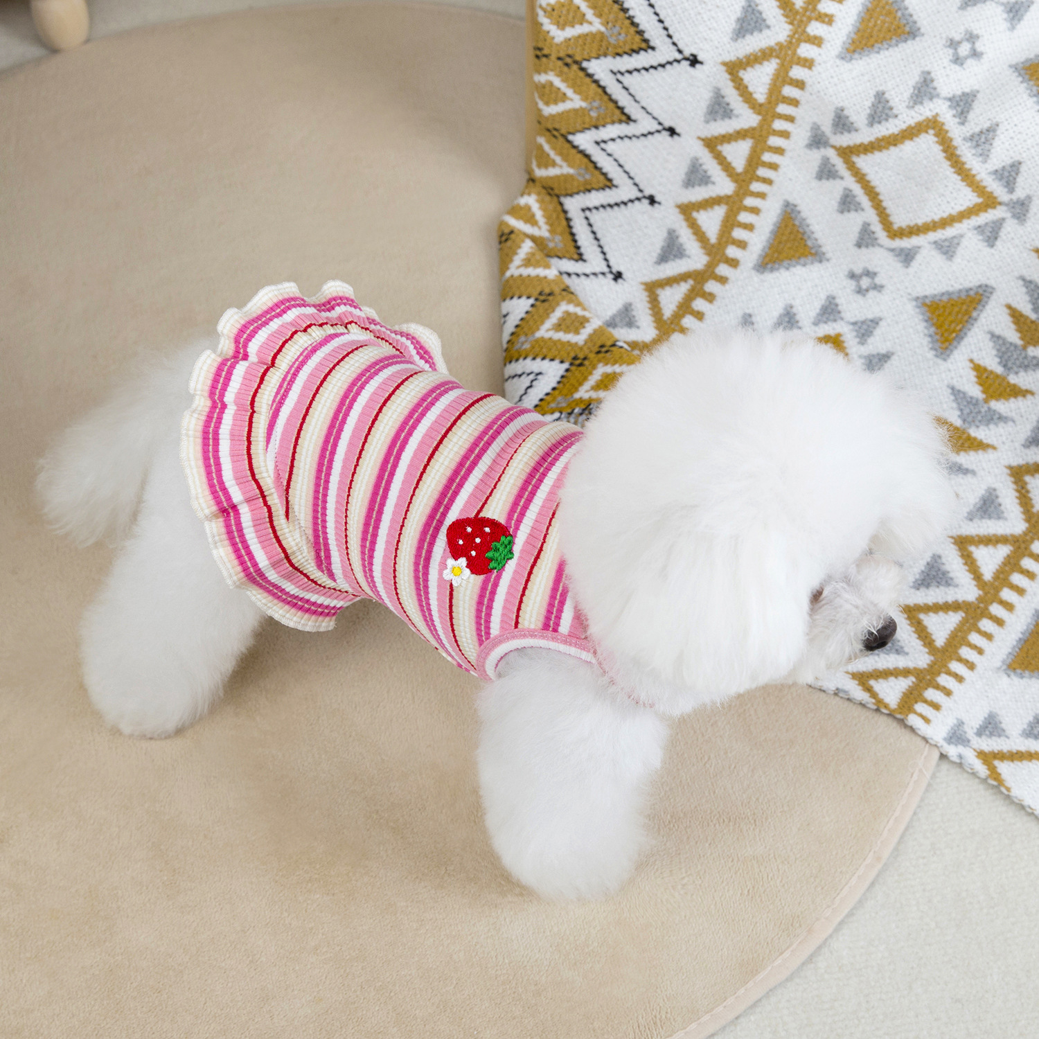 강아지 애완동물 의류 봄 여름 얇은 멜빵조끼 공주 드레스 고양이 테디 슈나우저 25 딸기 멜빵 드레스스토어 가기