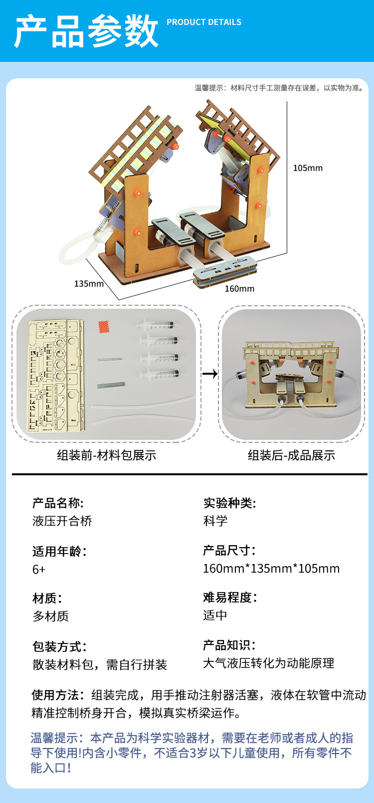 자체 제작 유압 개통 및 폐쇄 교량 역학 교량 건축 과학 작은 실험 재료 패키지 7-12 세 초등학생들이 교육 보조 도구를 사용합니다.스토어 가기