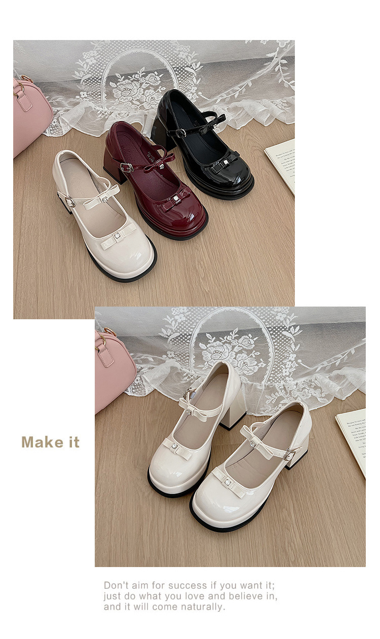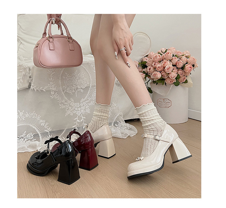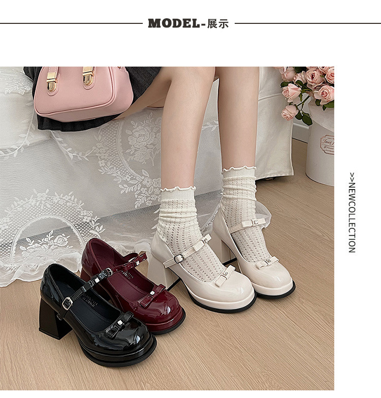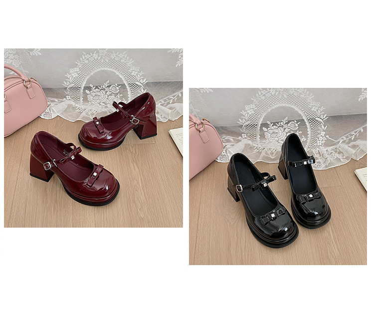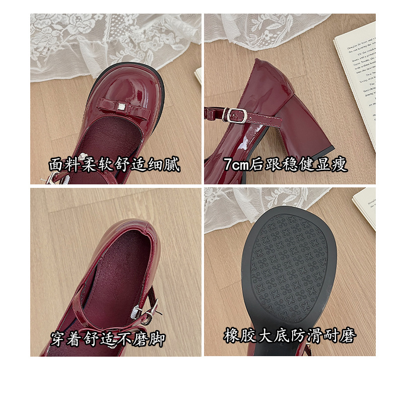 피곤하지 않은 버건디 기질 하이힐 여자 가을 2025 새로운 올 매치 스커트 두꺼운 힐 메리 제인 신발스토어 가기