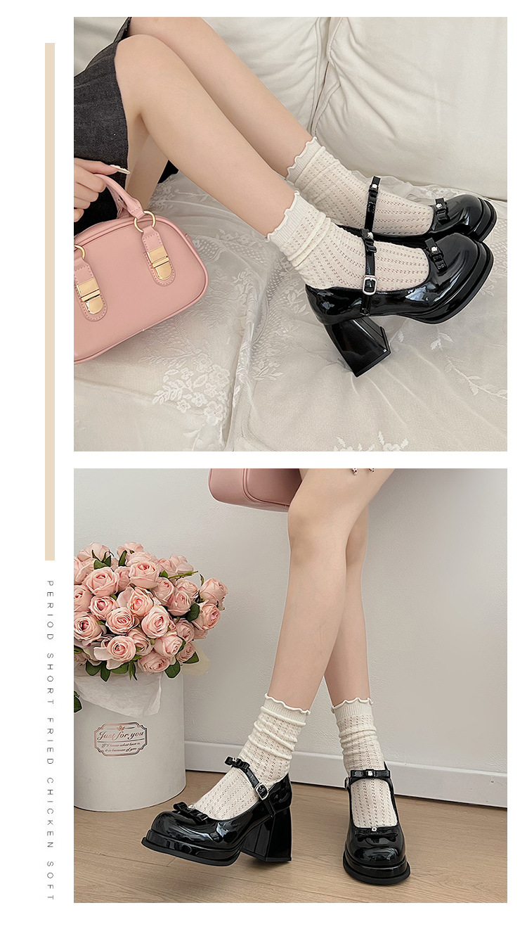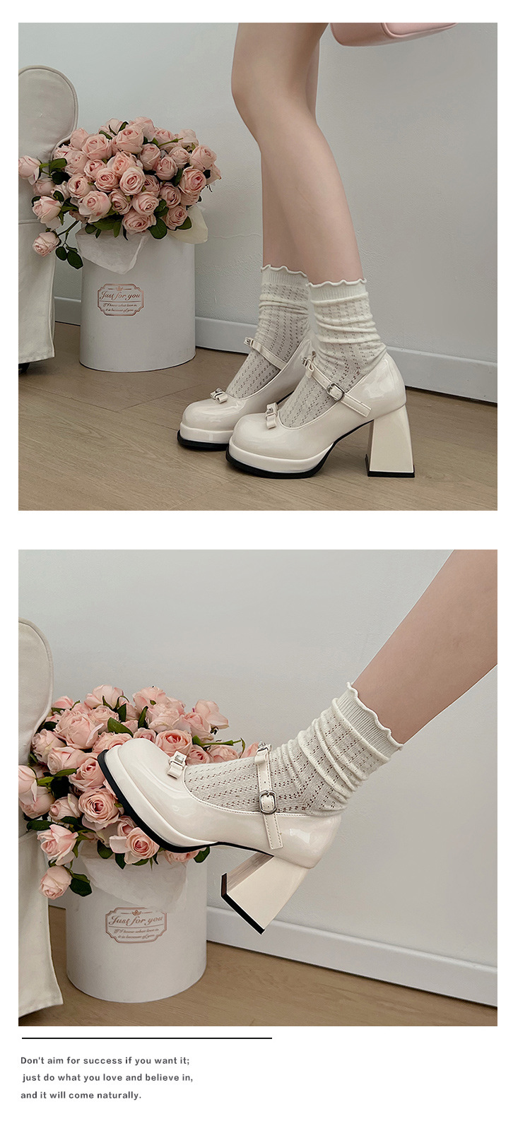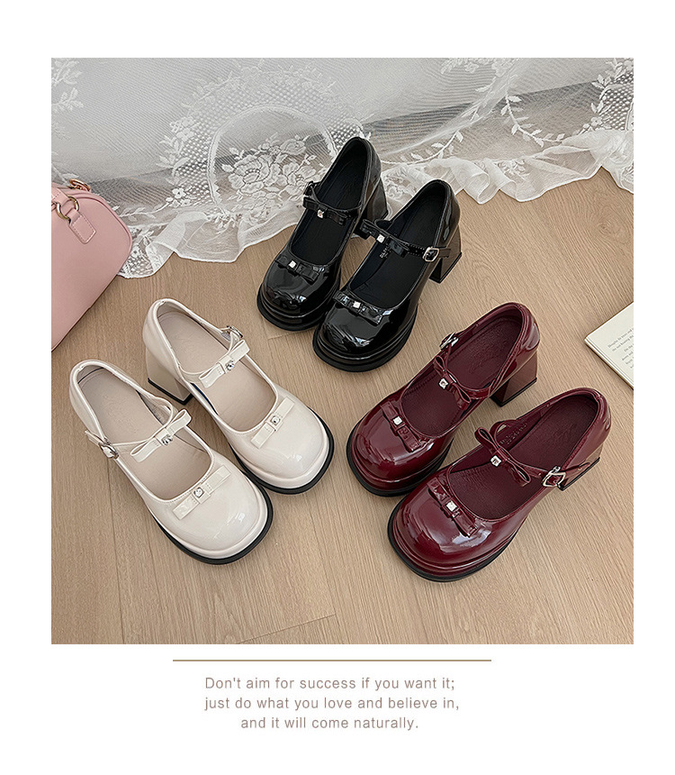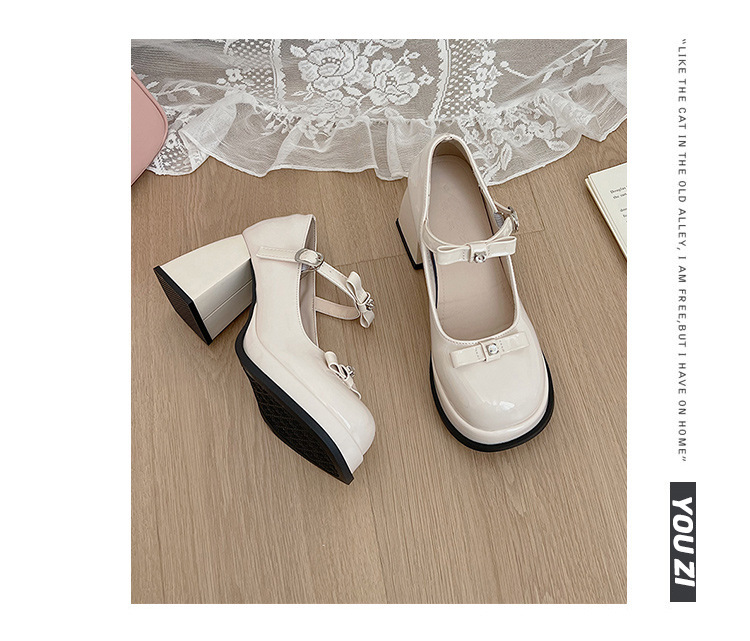 피곤하지 않은 버건디 기질 하이힐 여자 가을 2025 새로운 올 매치 스커트 두꺼운 힐 메리 제인 신발스토어 가기