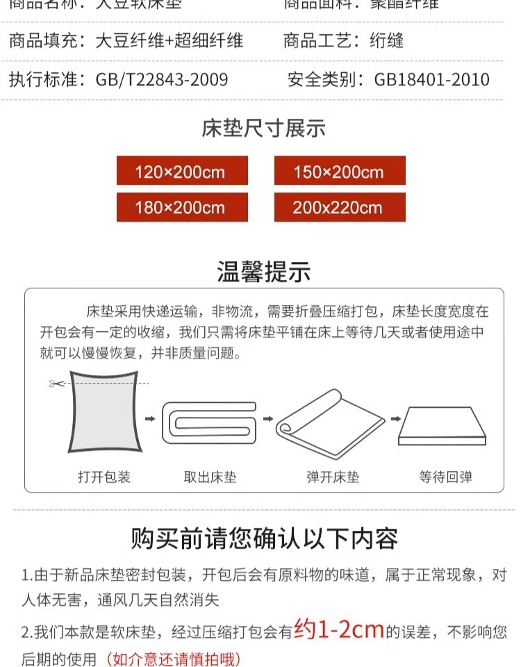 대두 섬유 매트리스 커버 순수 소프트 매트 가정용 침대 매트리스 학생용 싱글 전용 기숙사 매트리스스토어 가기