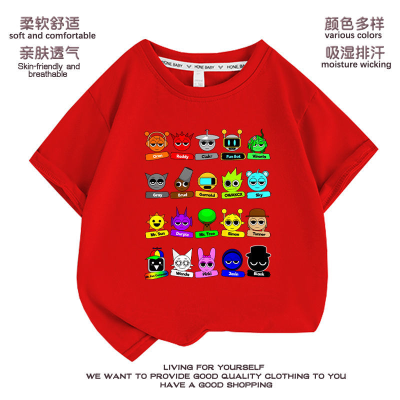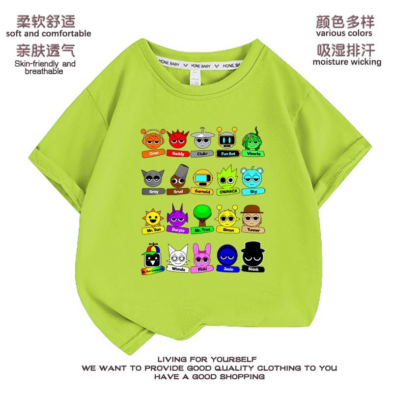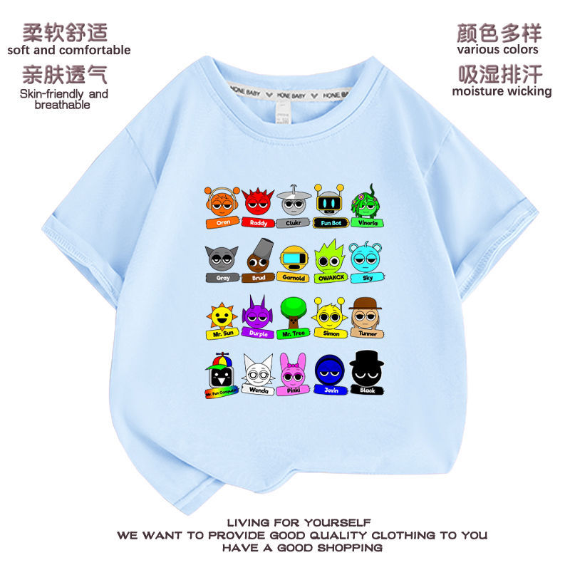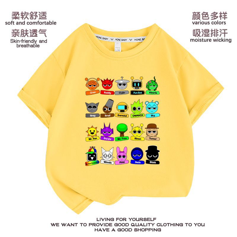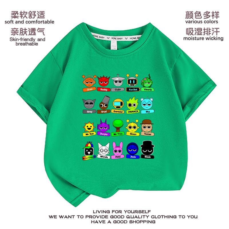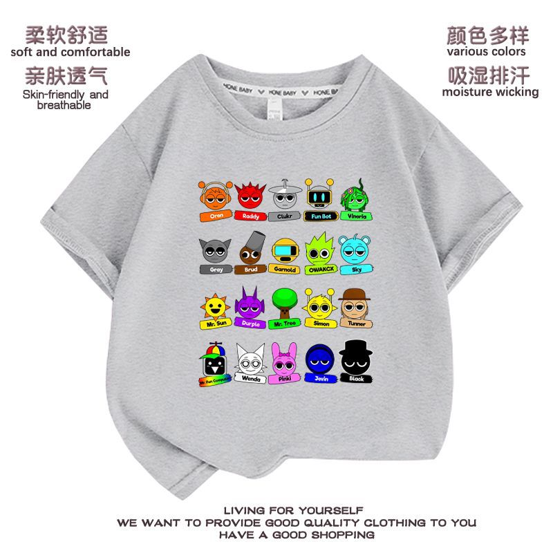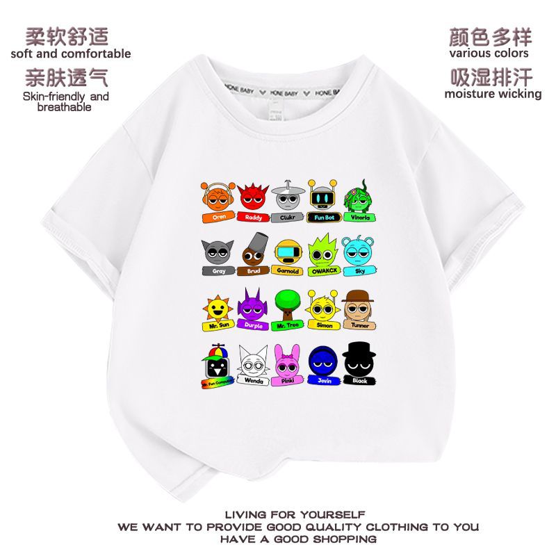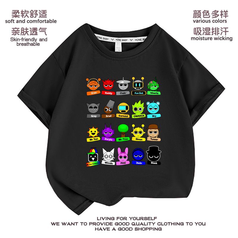 리듬 박스 티셔츠 어린이 짧은 소매 의류 sprunki 뮤직 박스 톱 코튼 여름 반 소매 소년 소녀스토어 가기