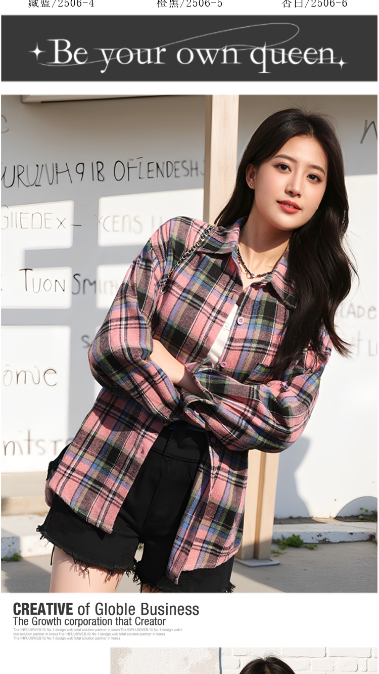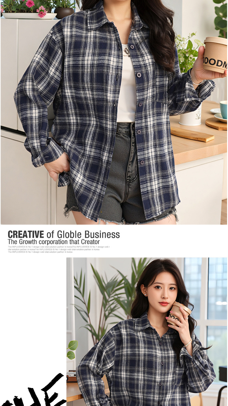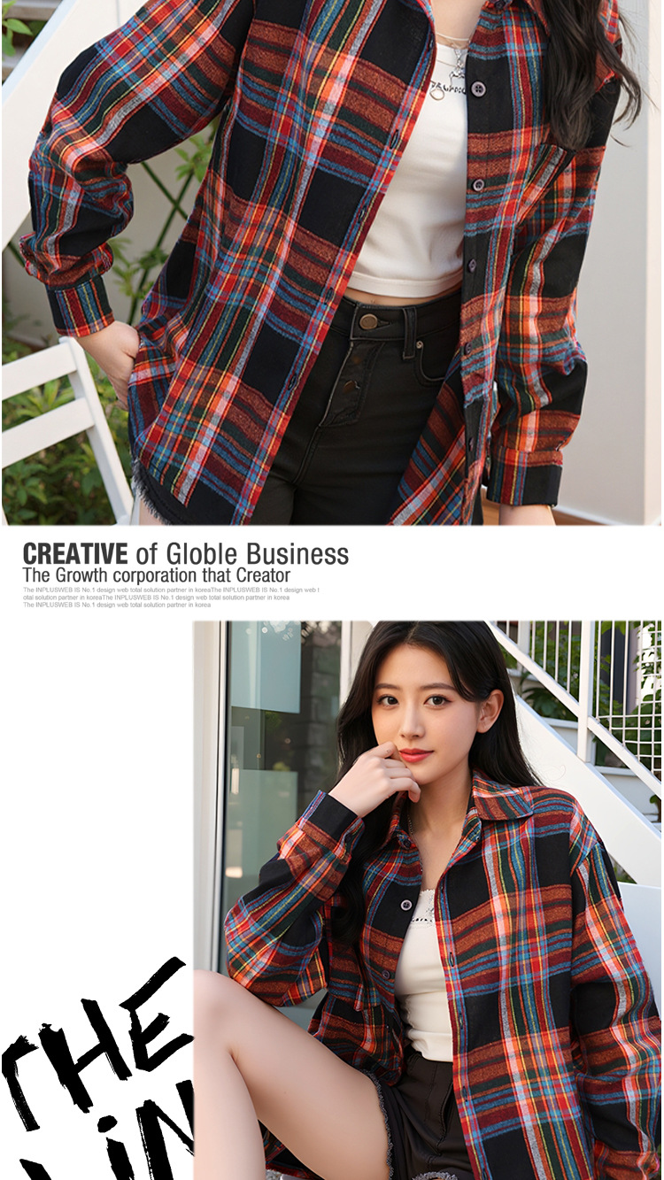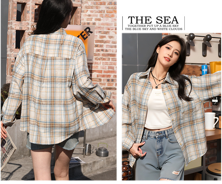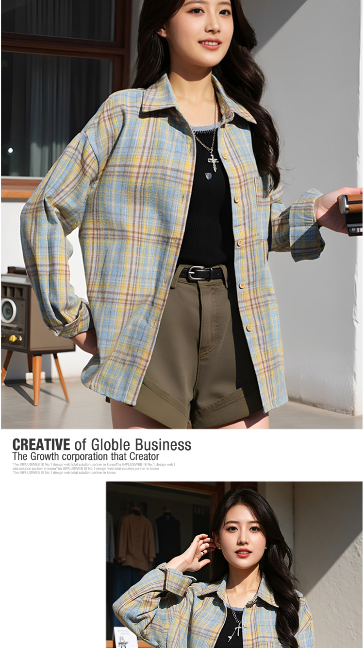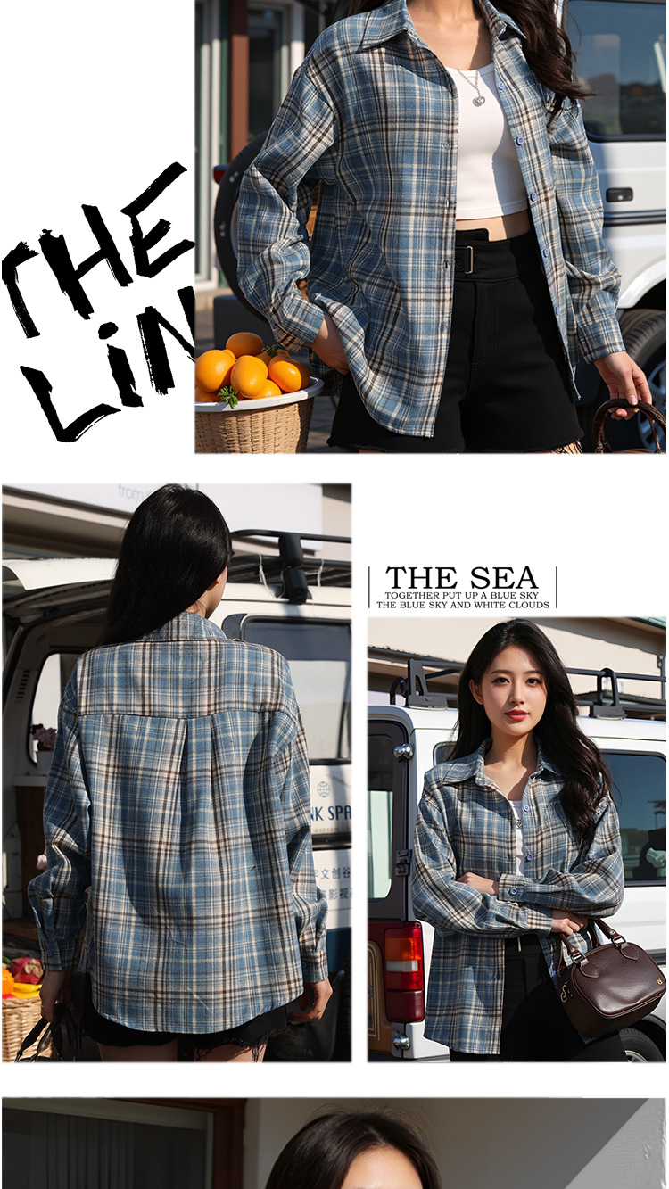 봄, 가을 여성용 체크무늬 셔츠, 캐주얼 레트로 트렌디 하이스트리트 스타일, 루즈핏 체크 긴팔 셔츠, 독특한 디자인스토어 가기