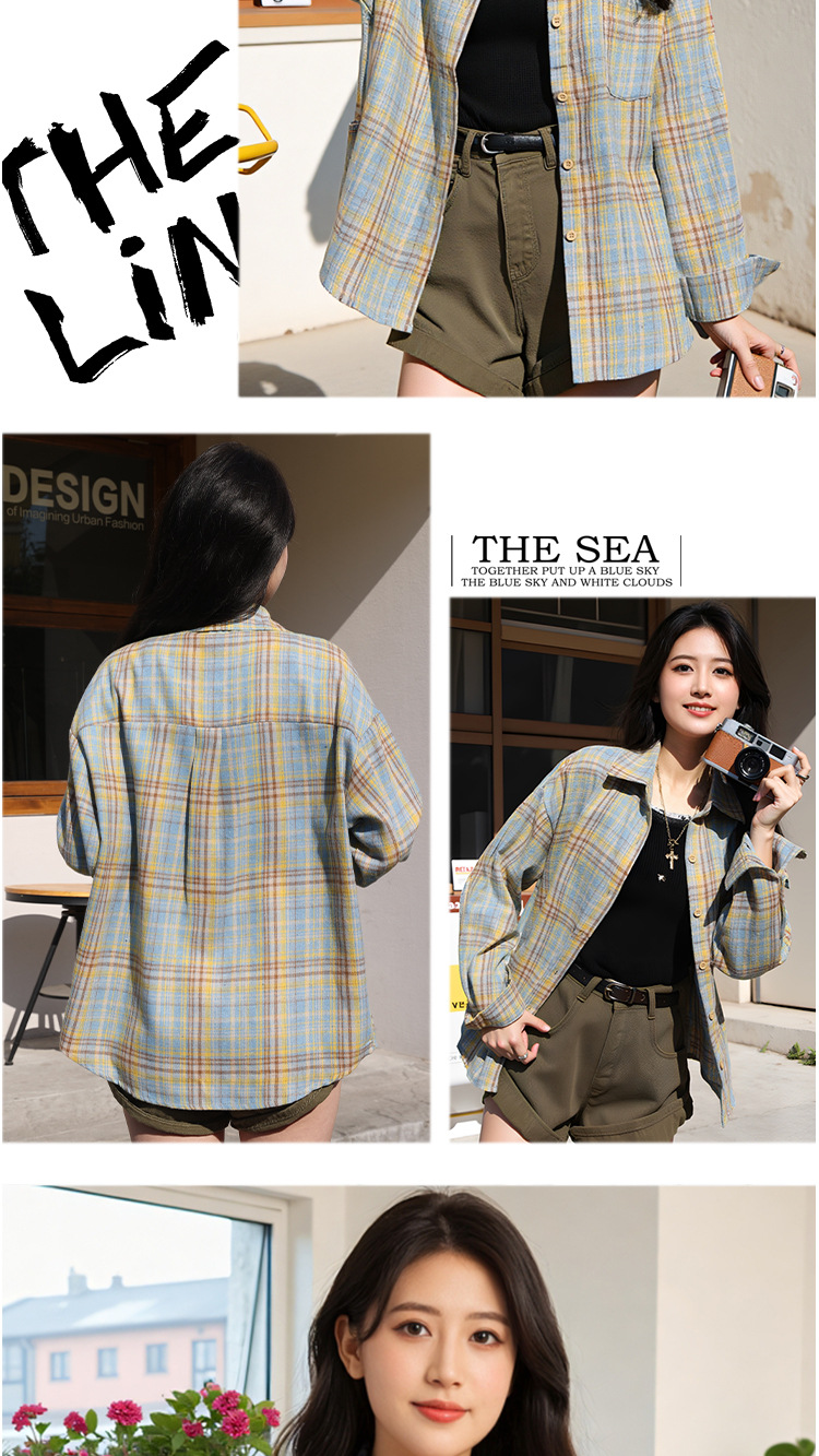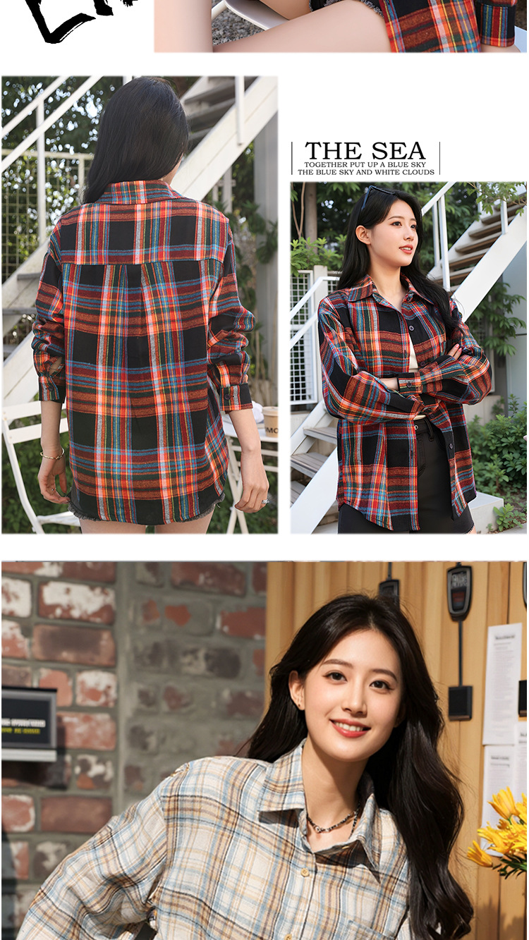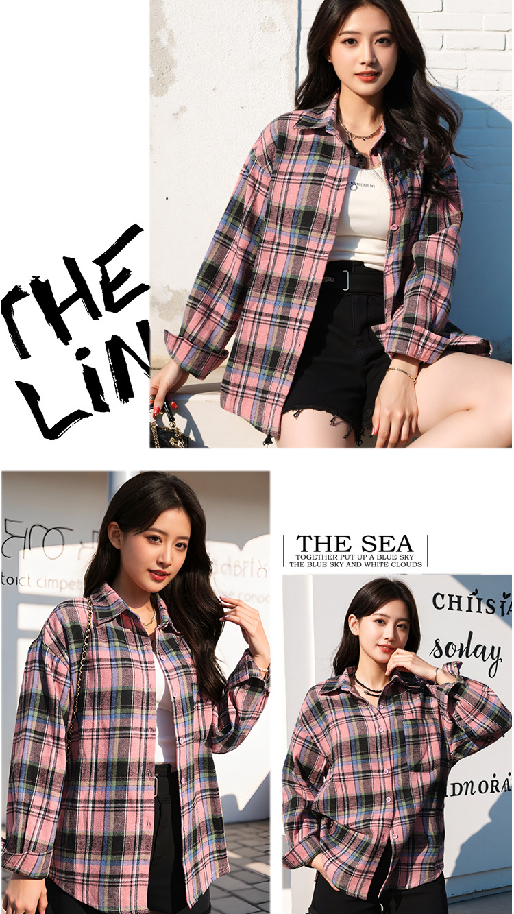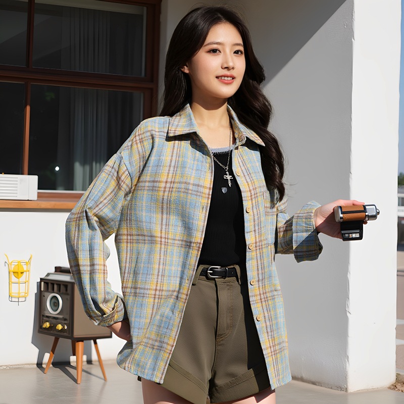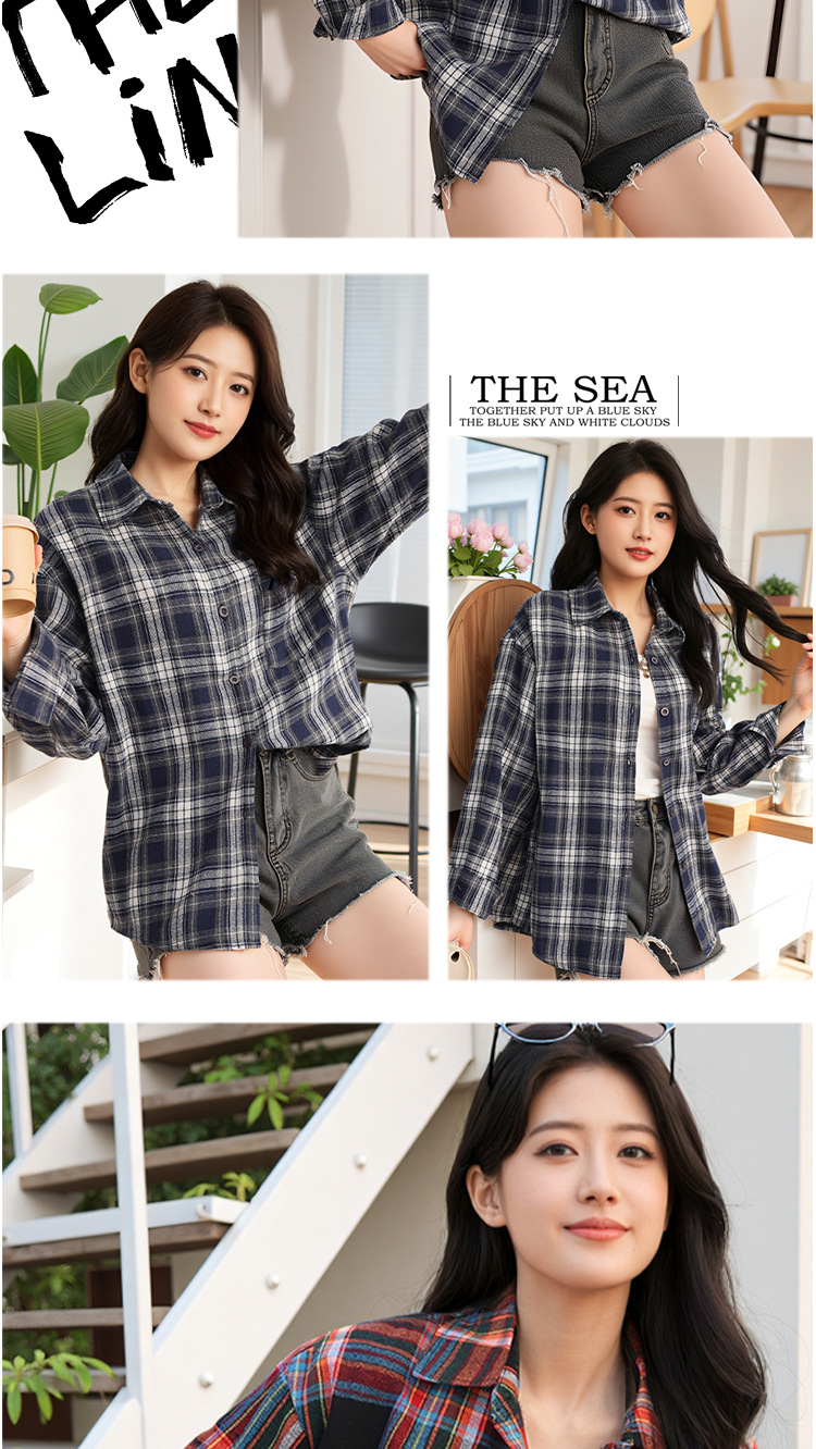 봄, 가을 여성용 체크무늬 셔츠, 캐주얼 레트로 트렌디 하이스트리트 스타일, 루즈핏 체크 긴팔 셔츠, 독특한 디자인스토어 가기