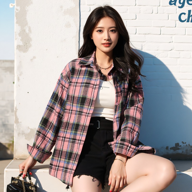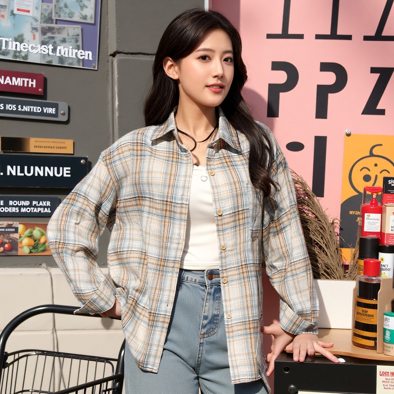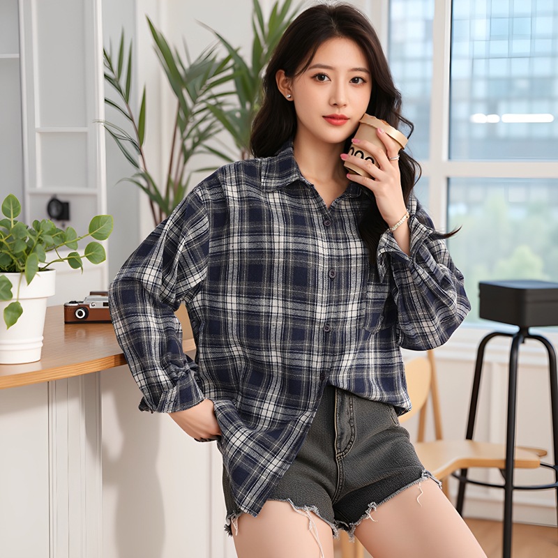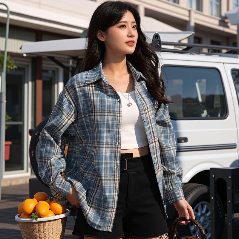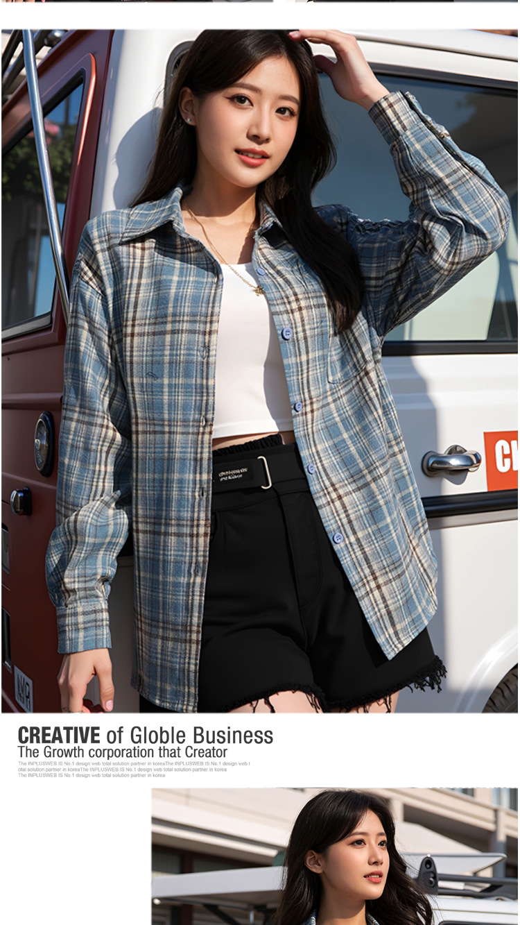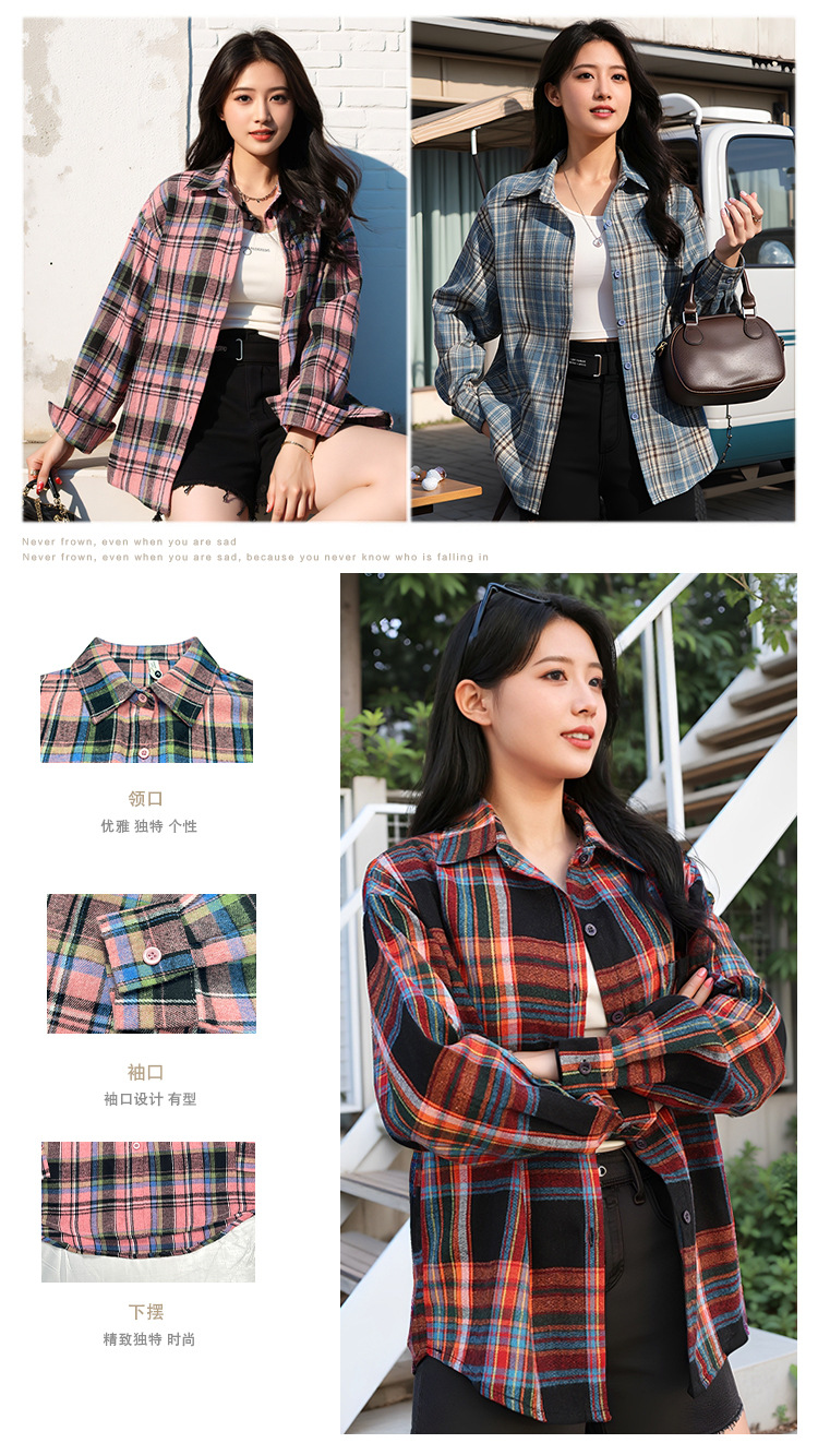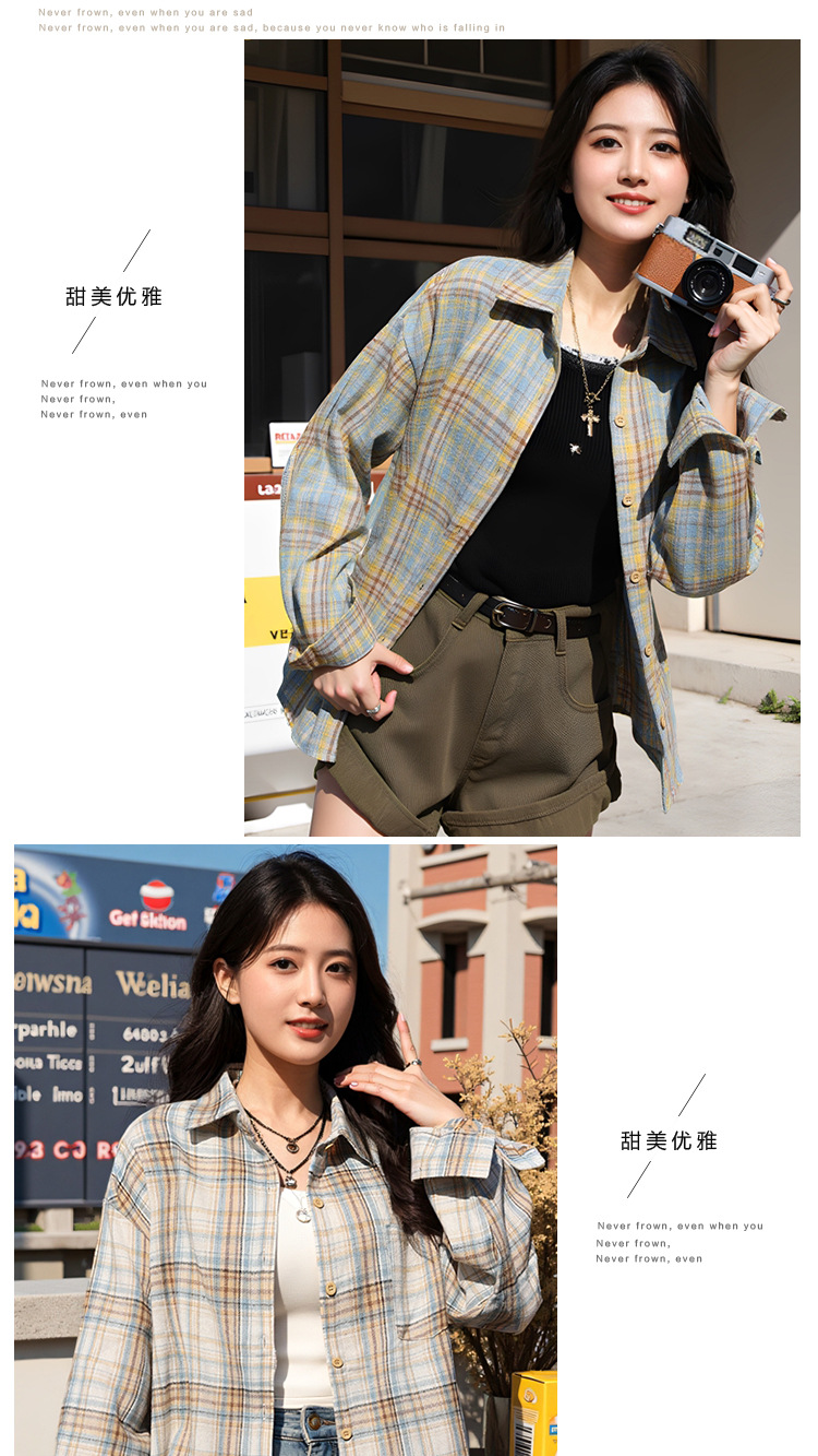 봄, 가을 여성용 체크무늬 셔츠, 캐주얼 레트로 트렌디 하이스트리트 스타일, 루즈핏 체크 긴팔 셔츠, 독특한 디자인스토어 가기