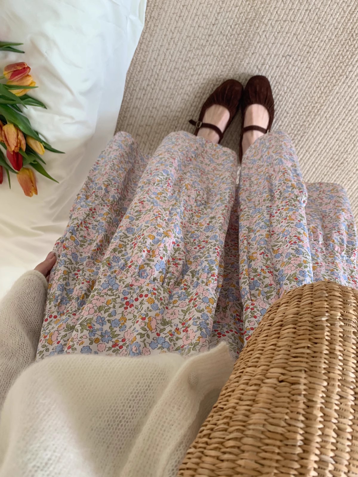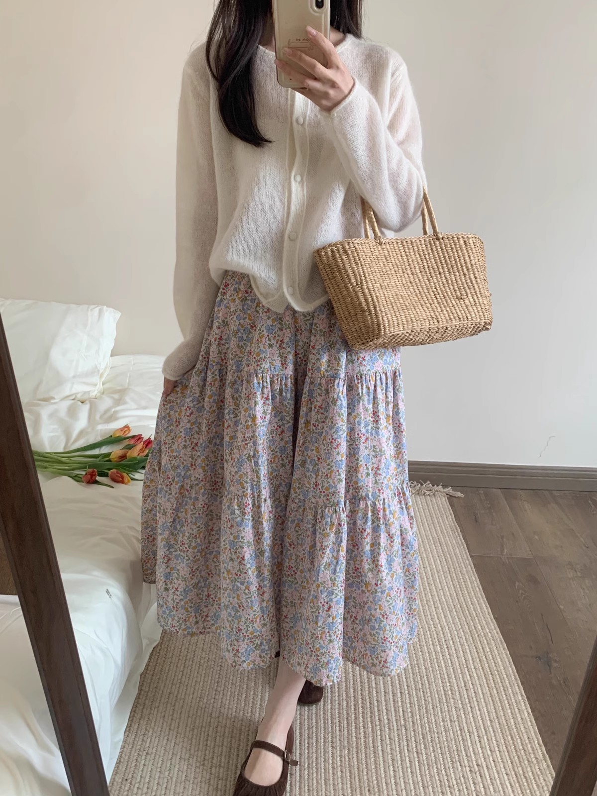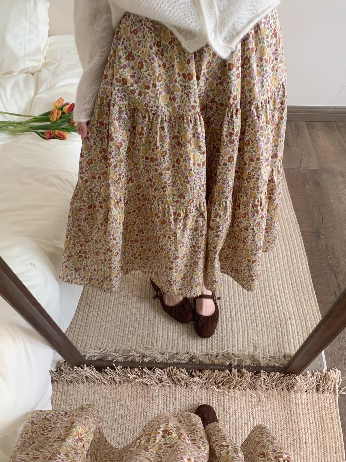 2025 봄과 여름 예술 100 빗질 코튼 플라워 스커트 A 라인 스커트 올매치 소프트 스킨 친화적 인 편안한 스커트