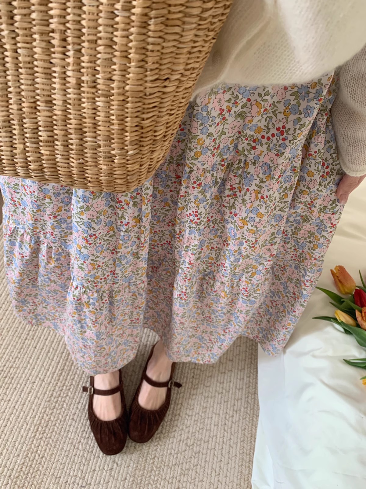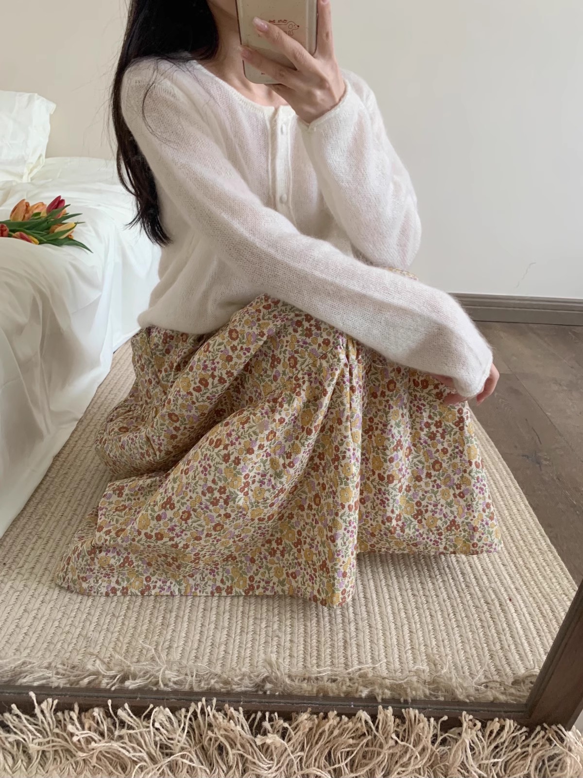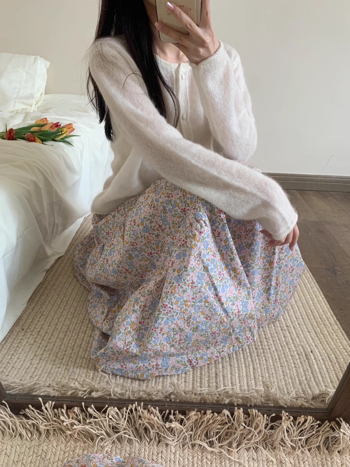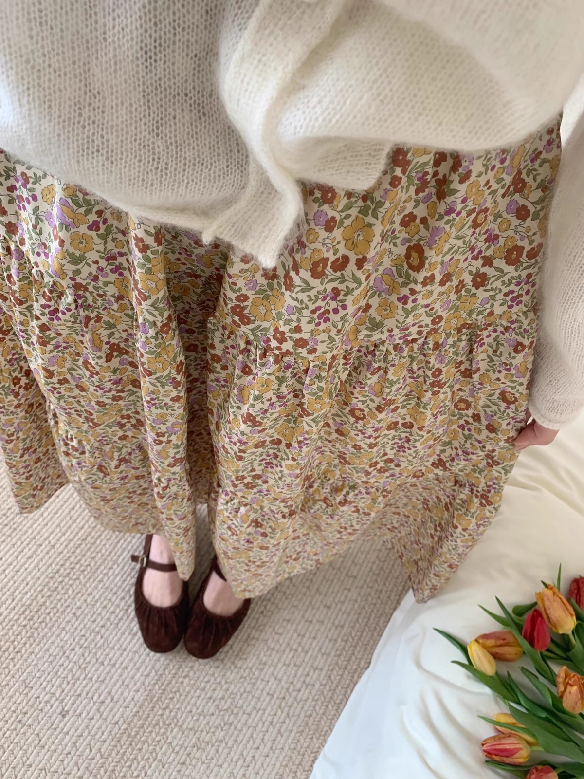 2025 봄과 여름 예술 100 빗질 코튼 플라워 스커트 A 라인 스커트 올매치 소프트 스킨 친화적 인 편안한 스커트