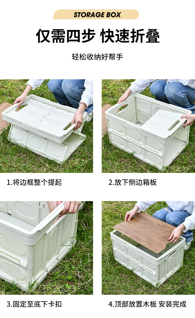 30L 접이식 대용량 플라스틱 상자 휴대용 보관 상자 가정용 의류 보관 상자 자동차 보관 상자
