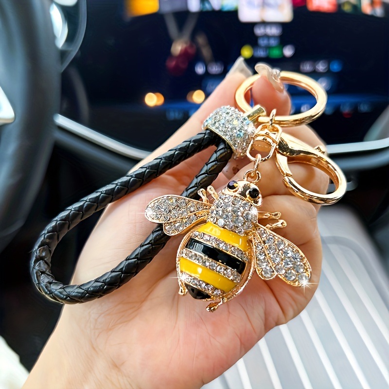 다이아몬드가 박힌 꿀벌 자동차 키 체인 금속 귀여운 여성 가방 펜던트 키 체인 AliExpress 국경 간 선물스토어 가기