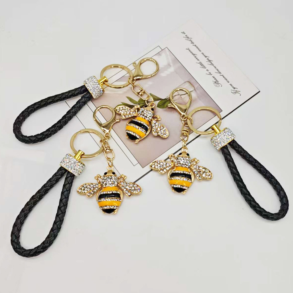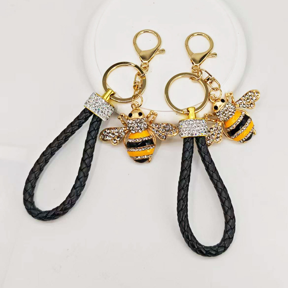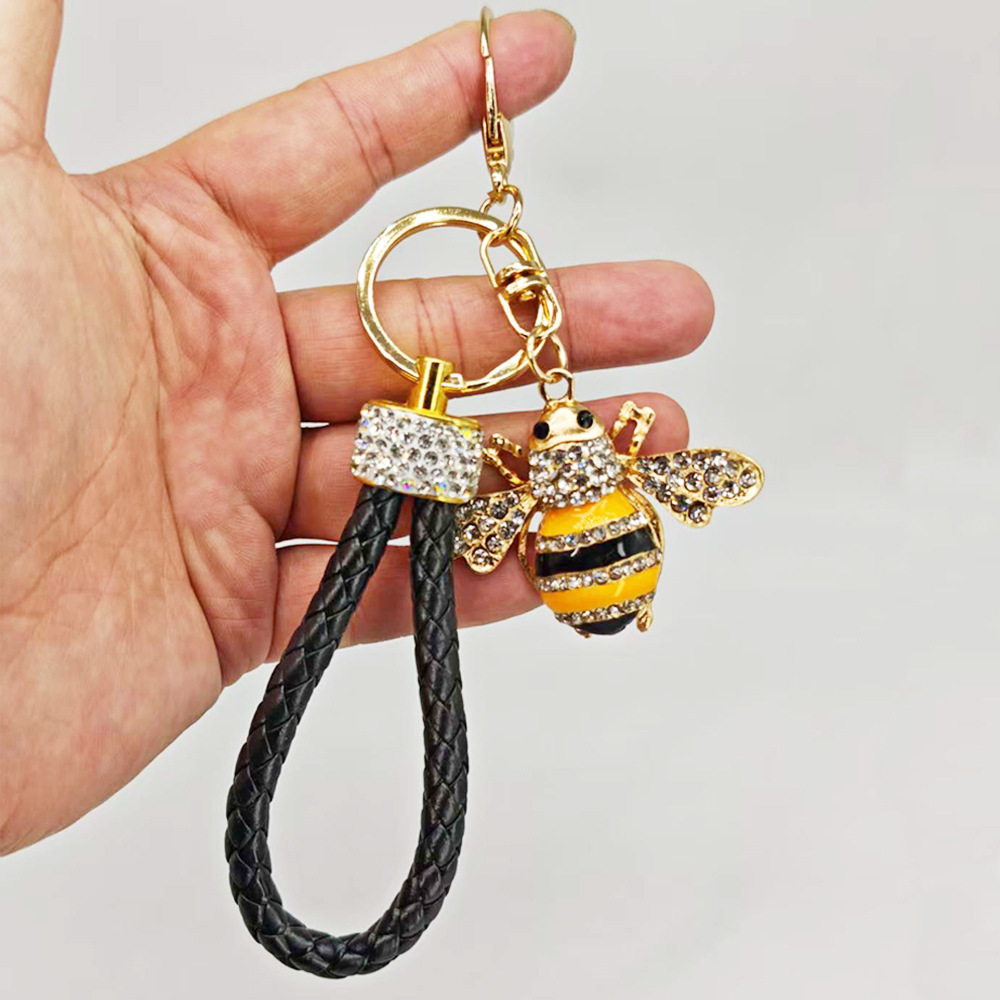 다이아몬드가 박힌 꿀벌 자동차 키 체인 금속 귀여운 여성 가방 펜던트 키 체인 AliExpress 국경 간 선물