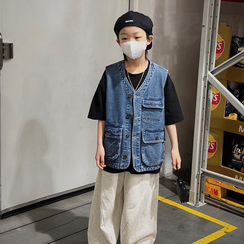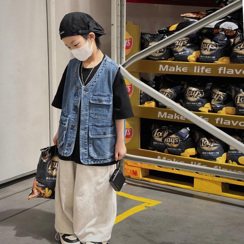 남아용 2026년 신상 데님 조끼, 중대형 아동 여름옷, 다용도 아기 조끼, 민소매 다주머니 작업복 조끼스토어 가기