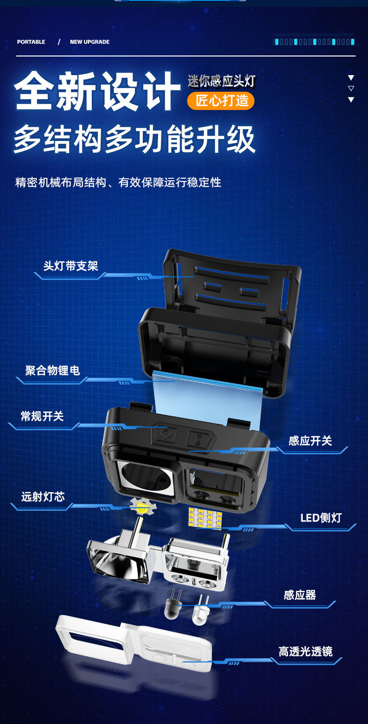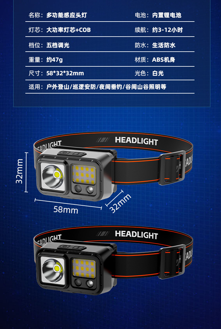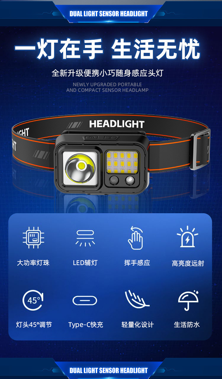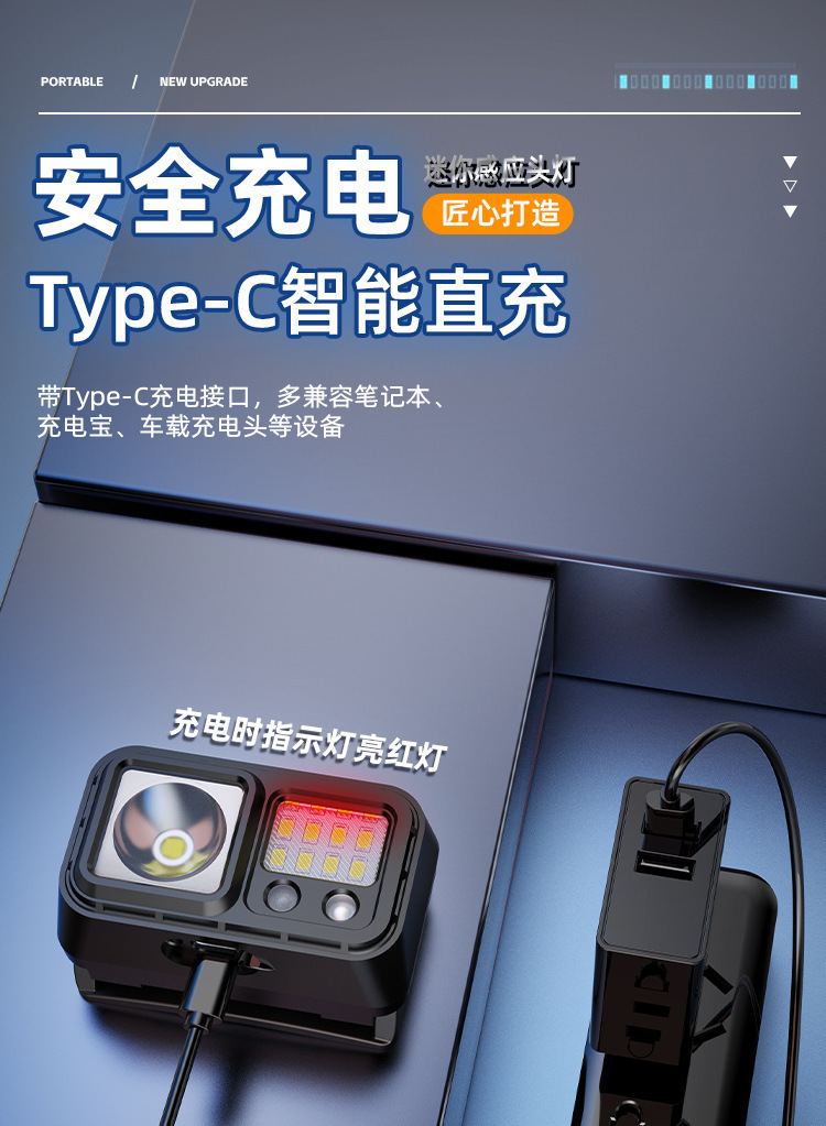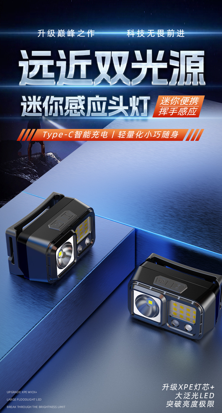 LED 미니 유도 헤드 라이트 야외 사이클링 나이트 런 라이트 충전 경량 강한 빛 슈퍼 밝은 머리 장착 야간 낚시 라이트