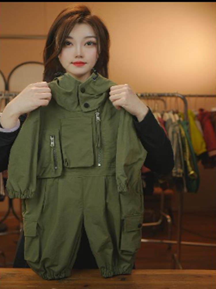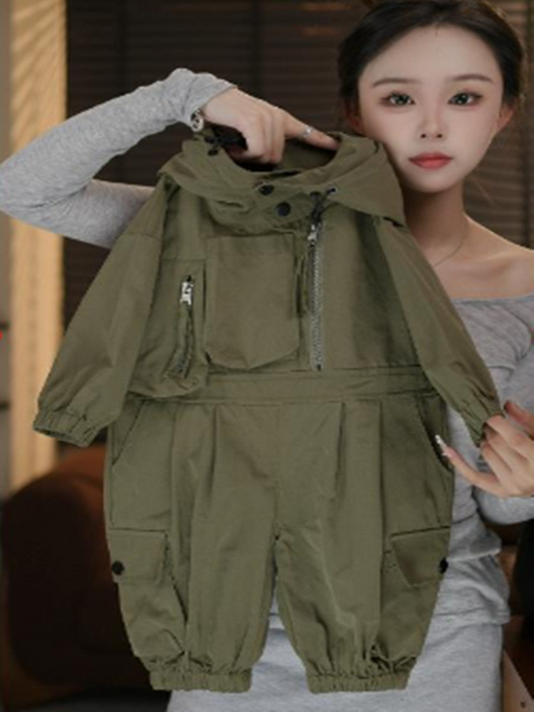 2025 봄과 가을 새로운 남자들과 소녀들의 세련된 패셔너블 루즈 패셔너블 한국 스타일 야외 후드 작업복