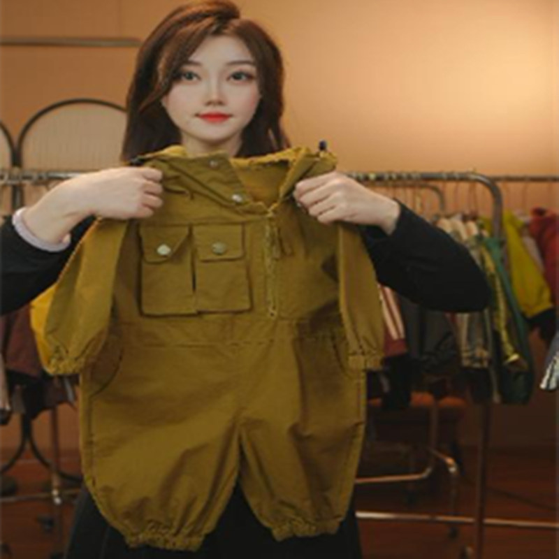 2025 봄과 가을 새로운 남자들과 소녀들의 세련된 패셔너블 루즈 패셔너블 한국 스타일 야외 후드 작업복스토어 가기