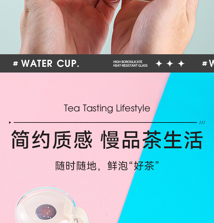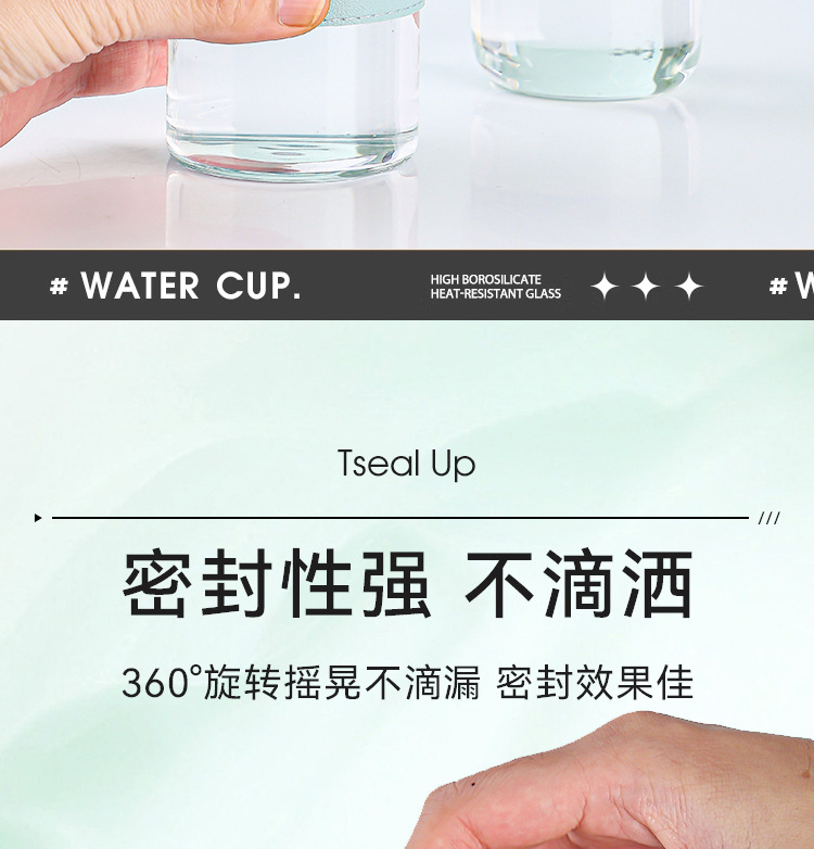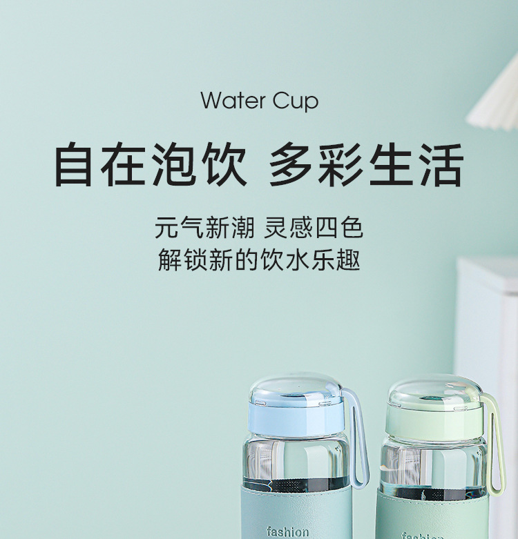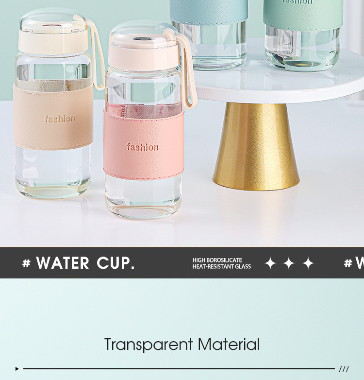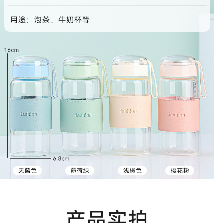 유리 워터 컵 내열성 휴대용 남성과 여성 학생 높은 가치 Instagram 스타일 두꺼운 휴대용 오피스 티 컵