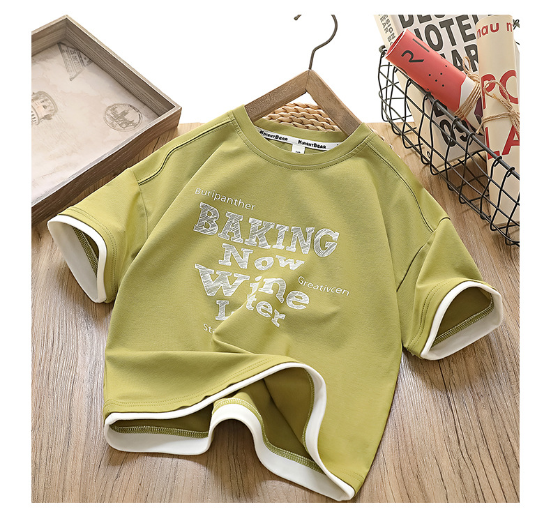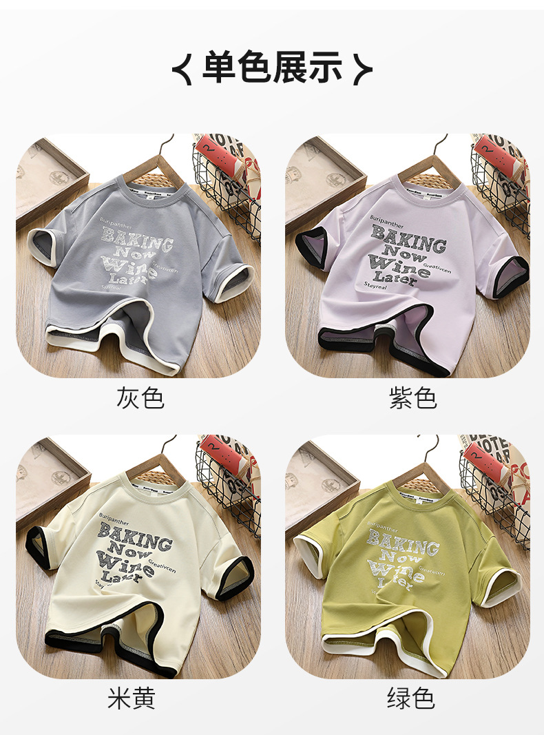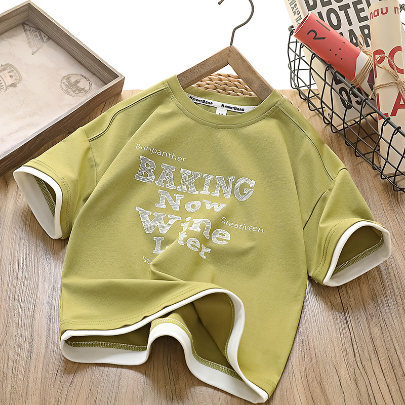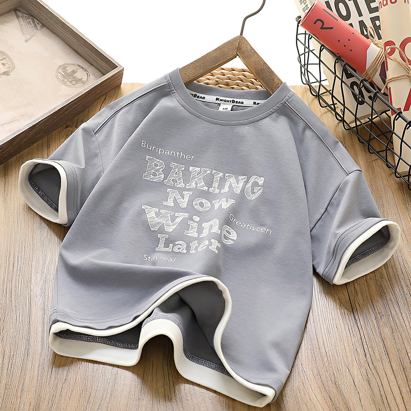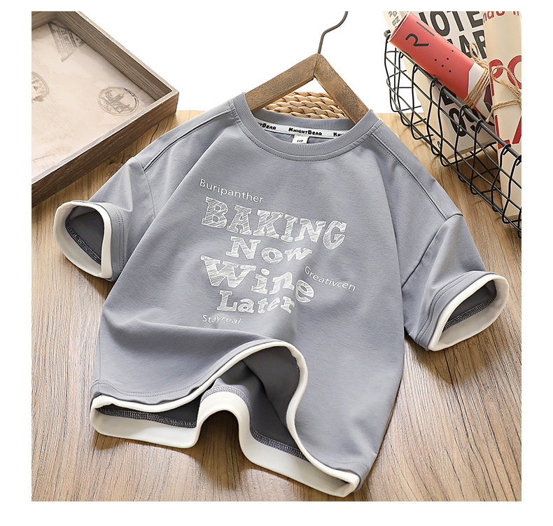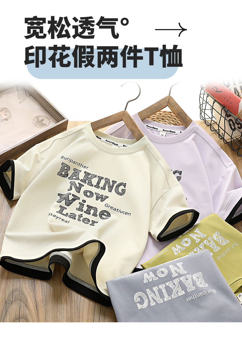 [7A 항균] 소년 반팔 아동복 여름 신작 아동 티셔츠 한국 스타일 중대형 아동 가짜 투피스상의 유행