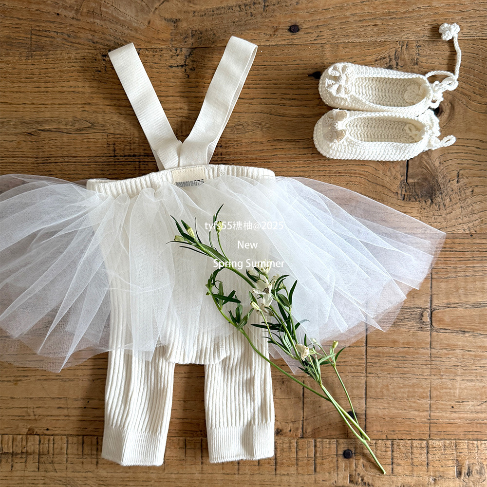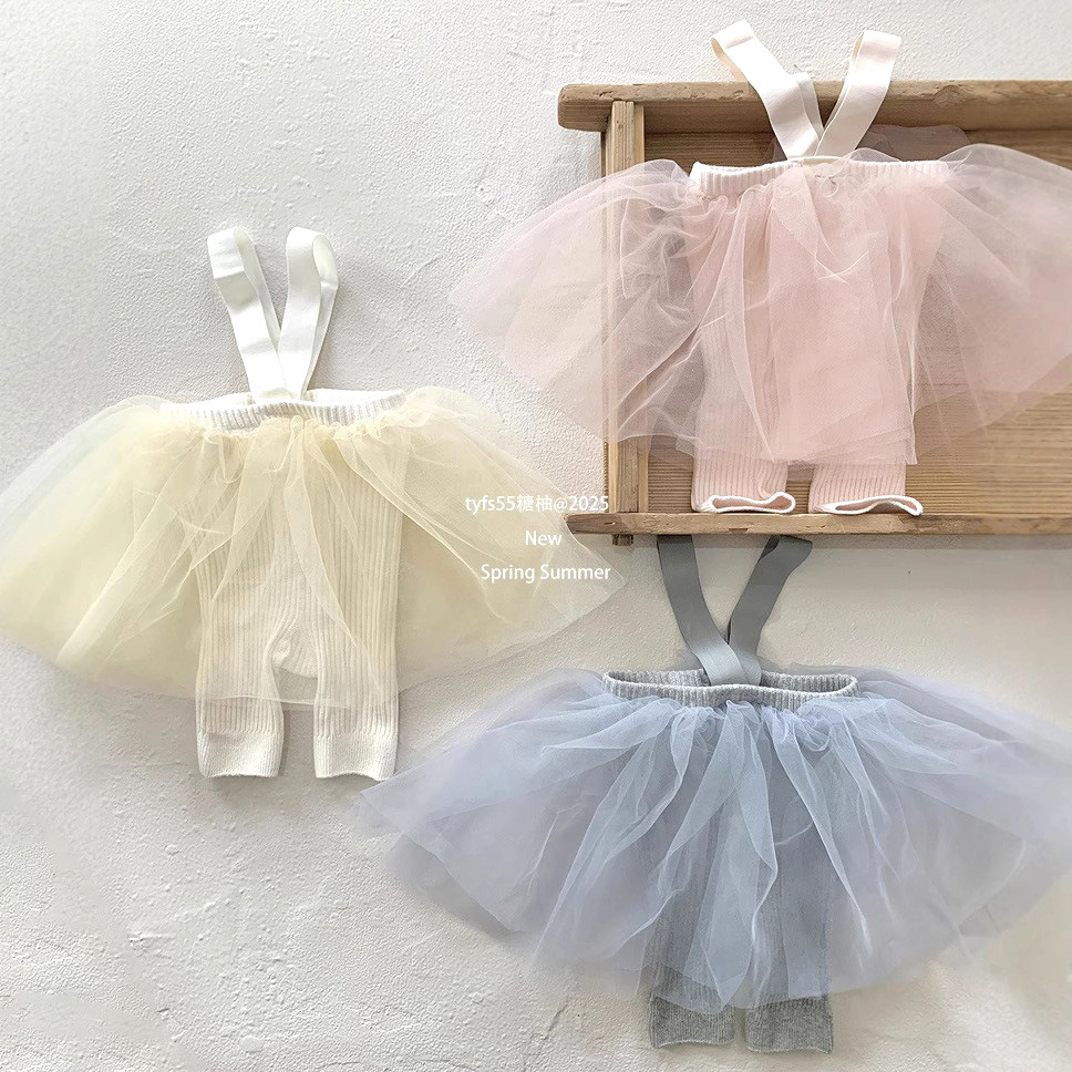 【名称】韩国婴幼儿宝宝针织背带纱裙裤打底裤春季女童连体裤子小公主裙裤
