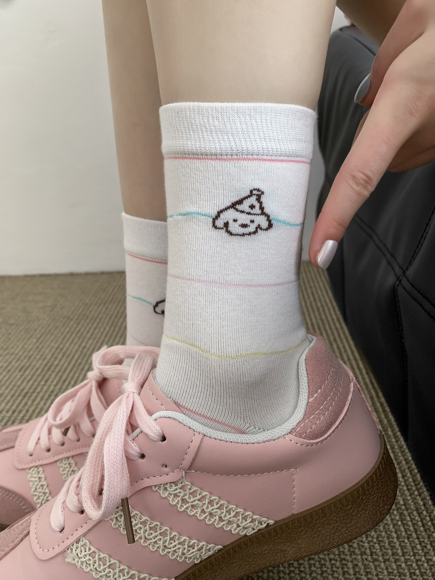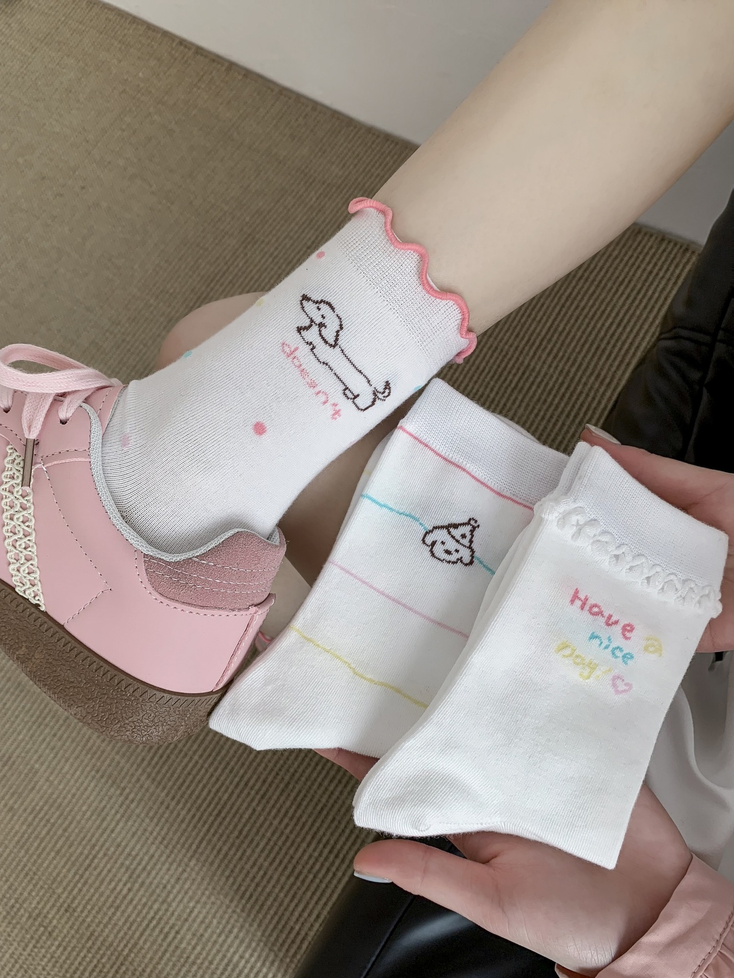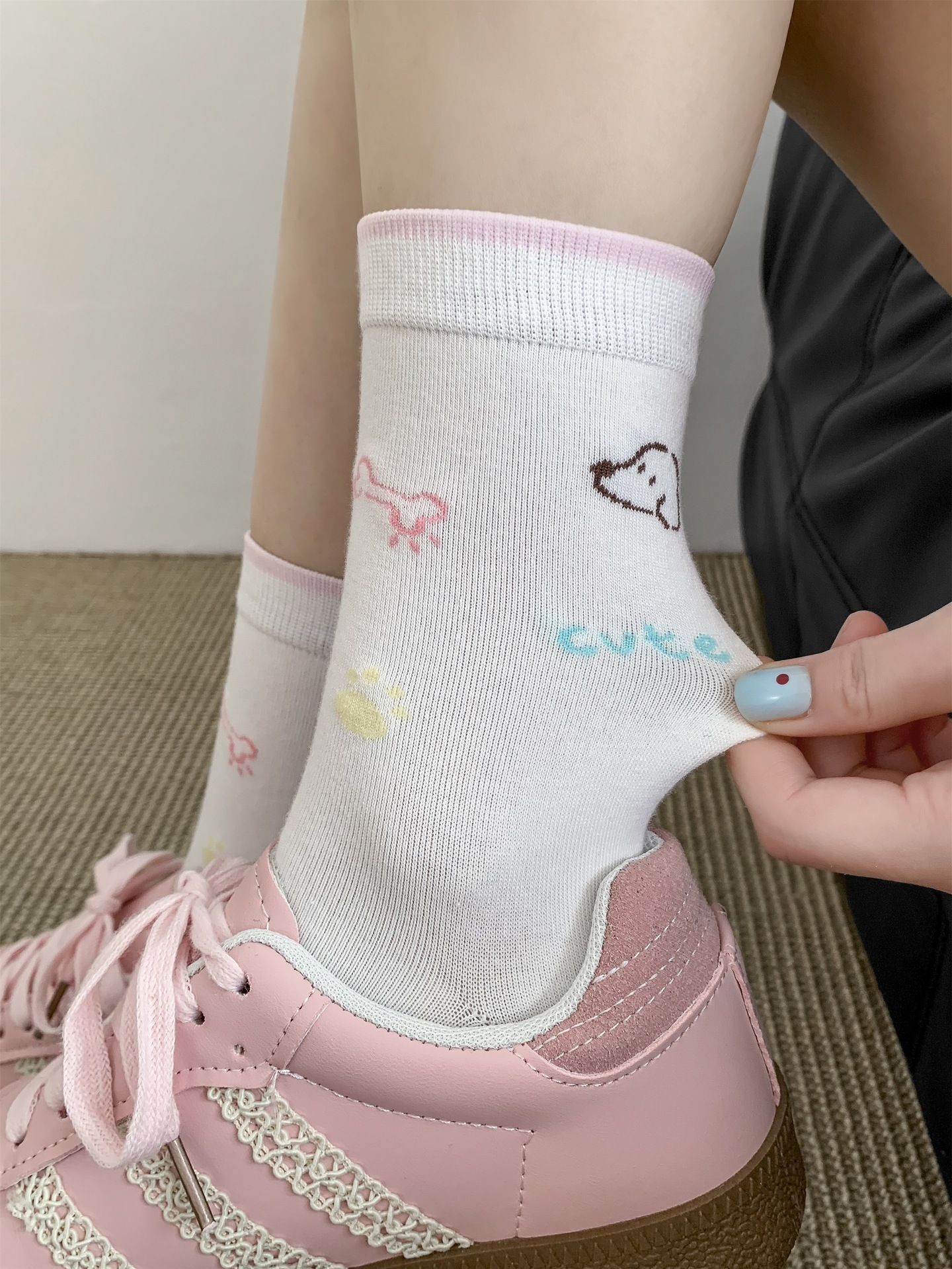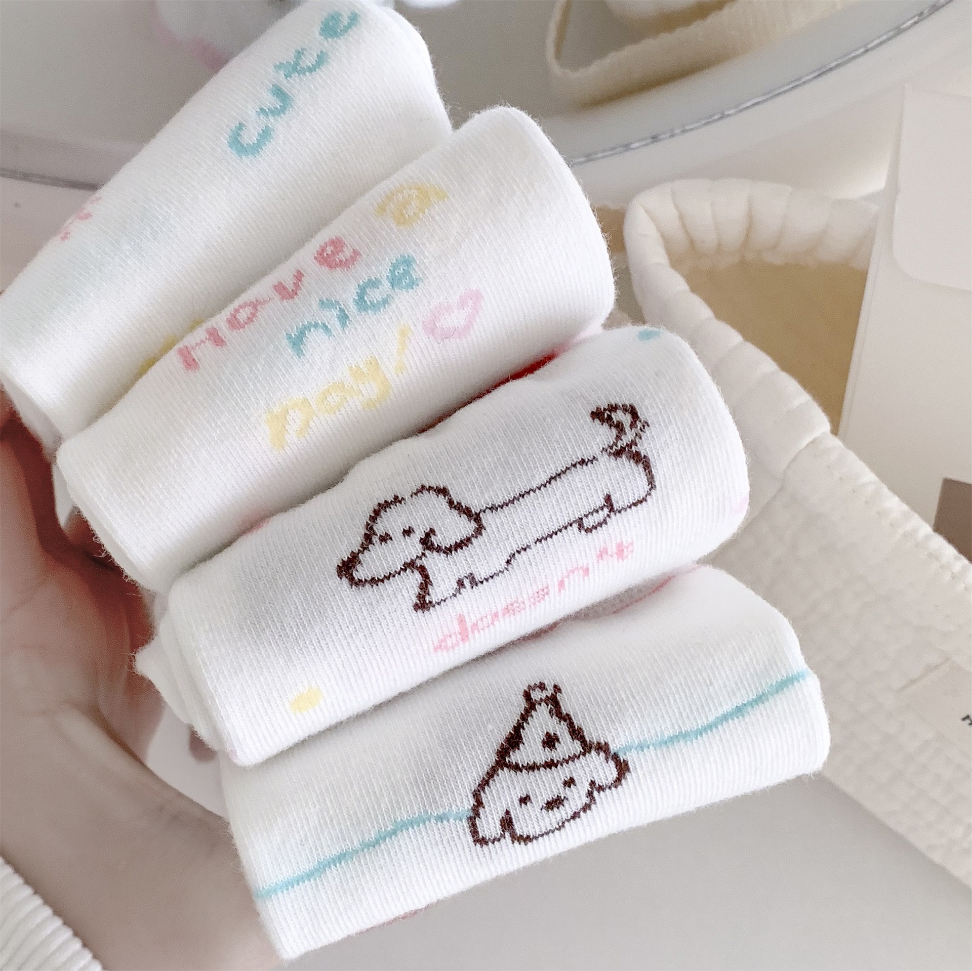 흰색 양말 여성의 봄과 여름 귀여운 그림 강아지 면화 양말 일본 만화 학생 조커 여성 양말 도매