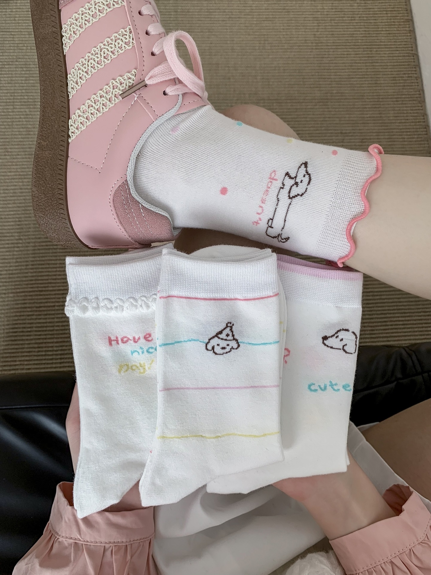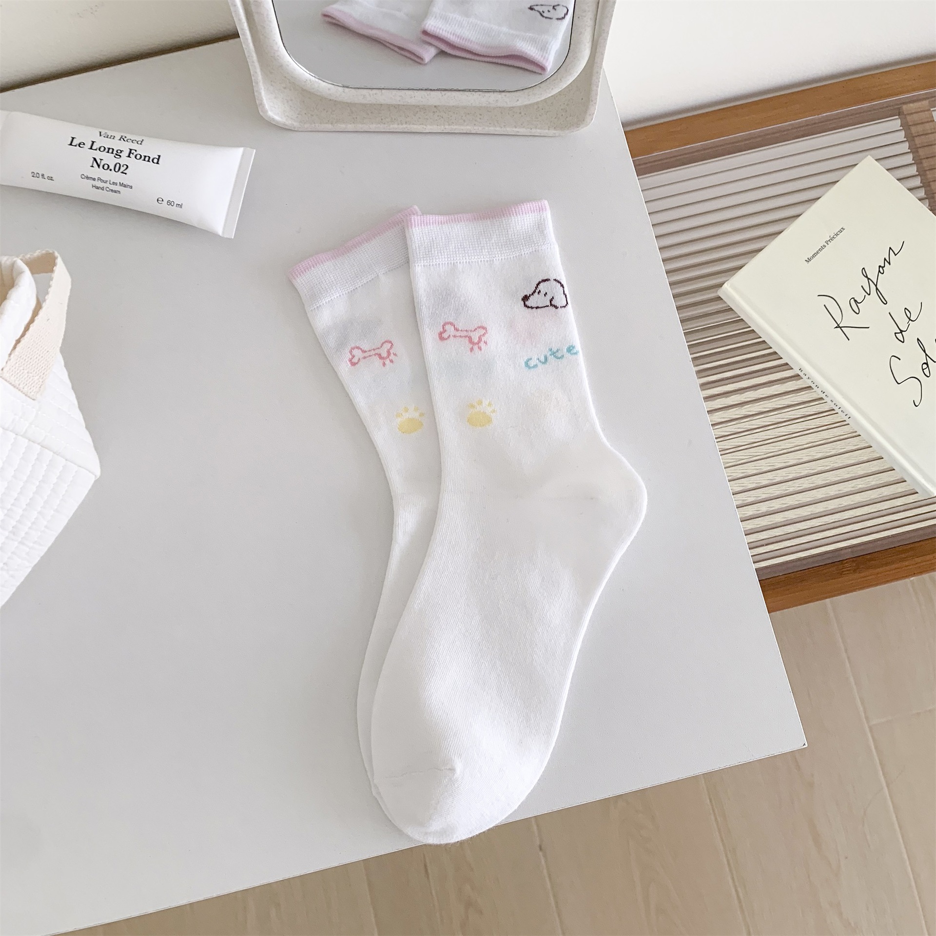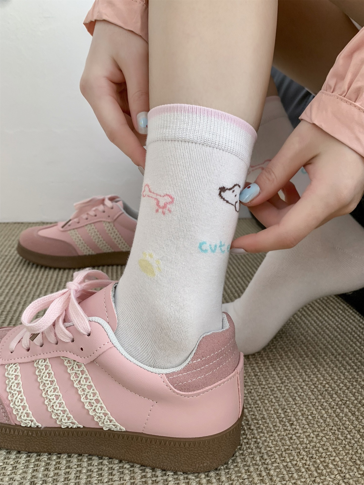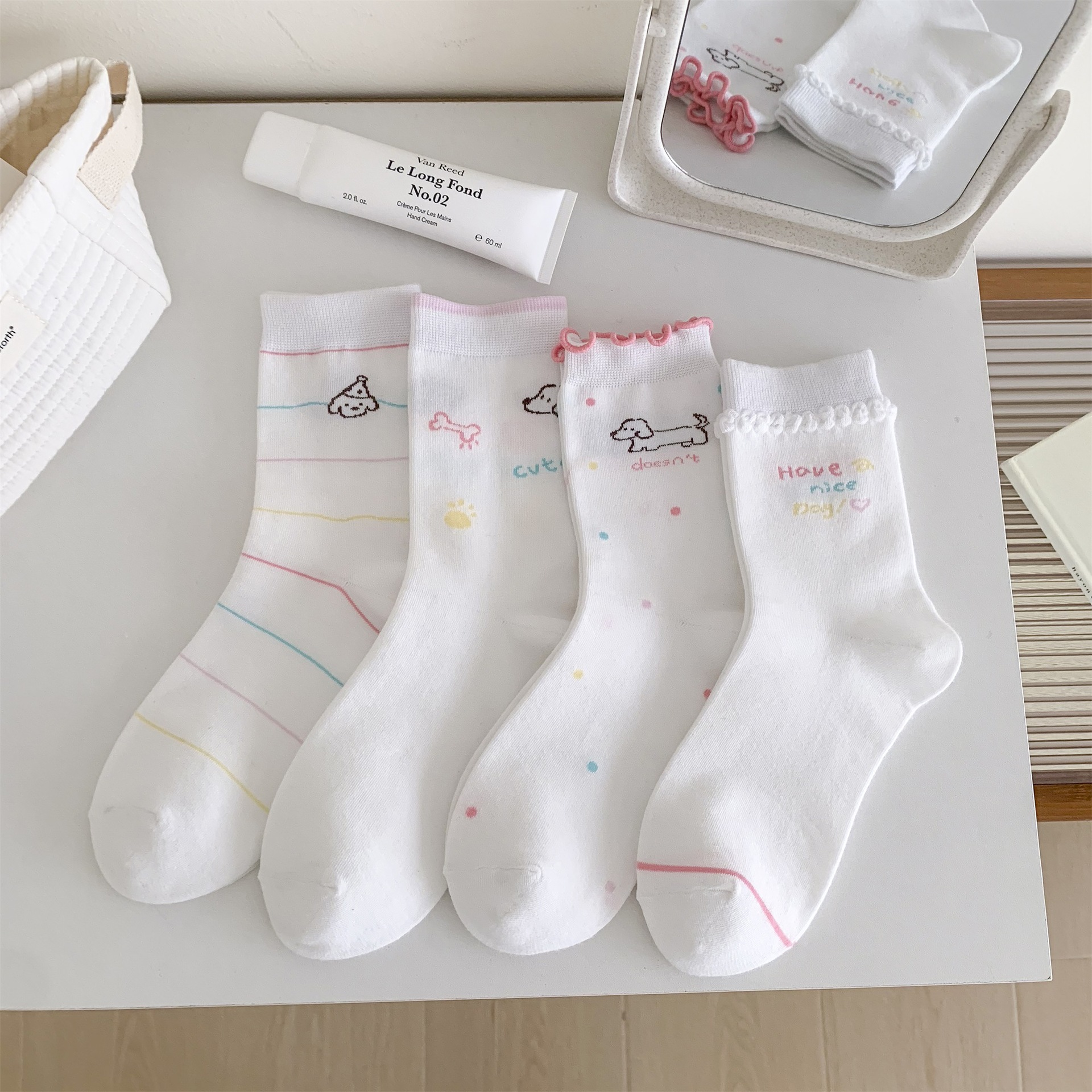 흰색 양말 여성의 봄과 여름 귀여운 그림 강아지 면화 양말 일본 만화 학생 조커 여성 양말 도매