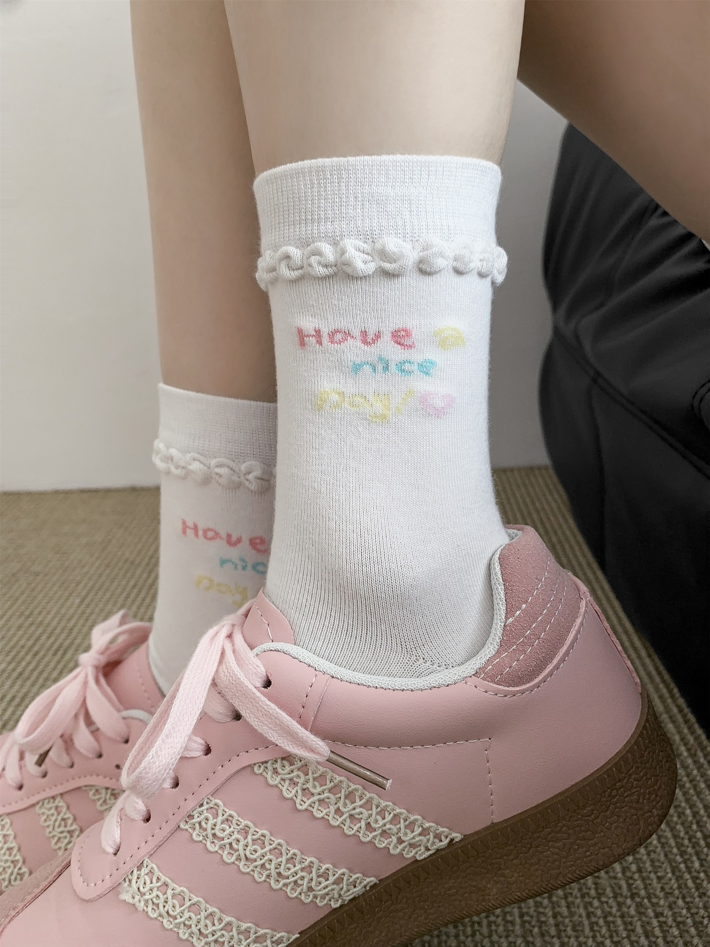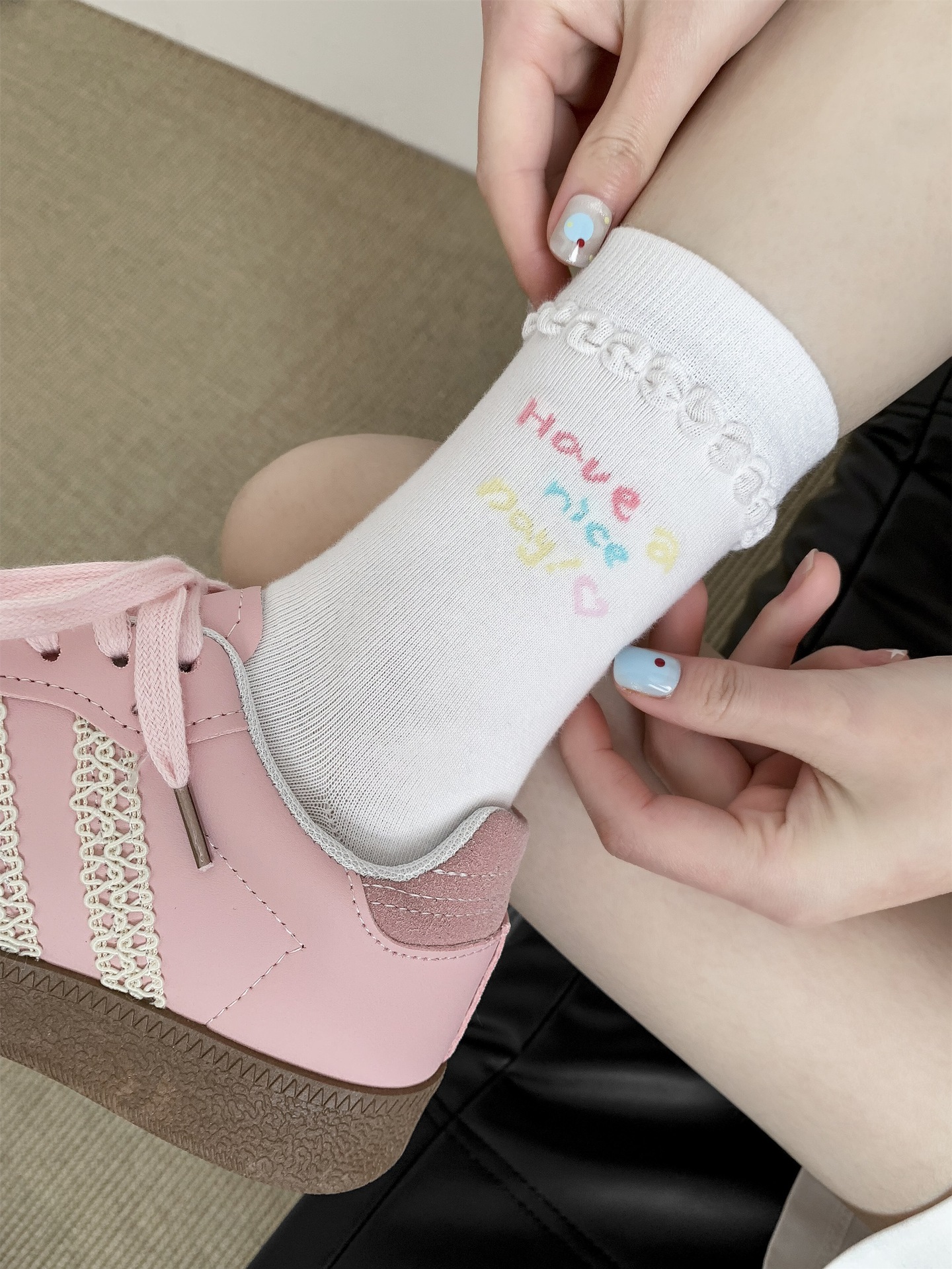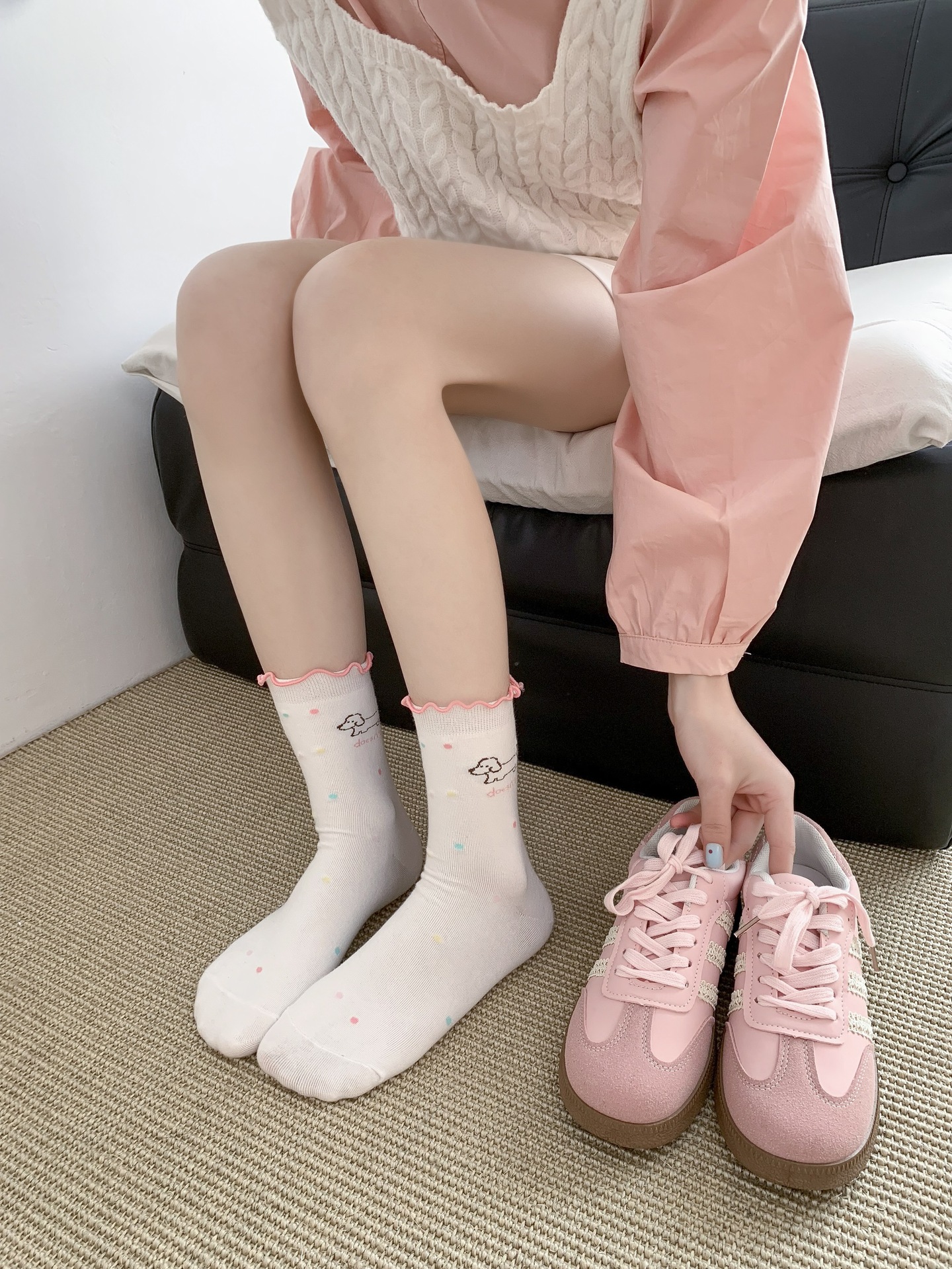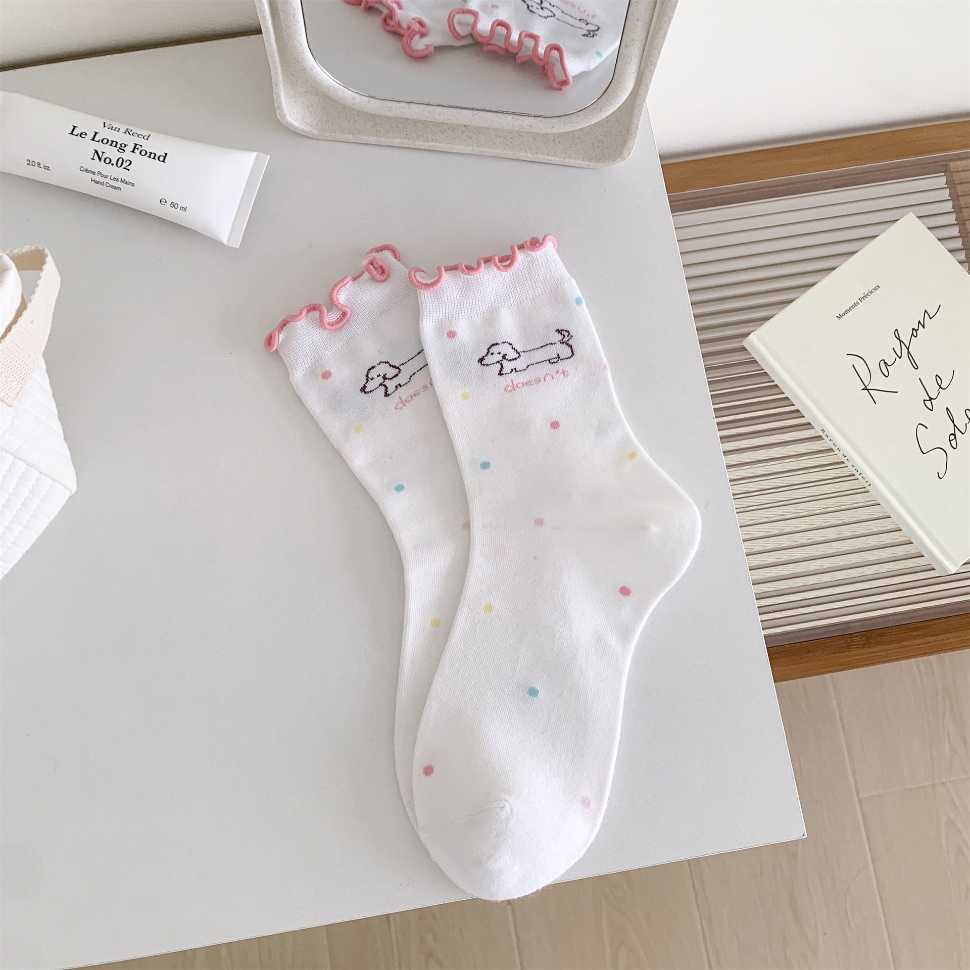 흰색 양말 여성의 봄과 여름 귀여운 그림 강아지 면화 양말 일본 만화 학생 조커 여성 양말 도매