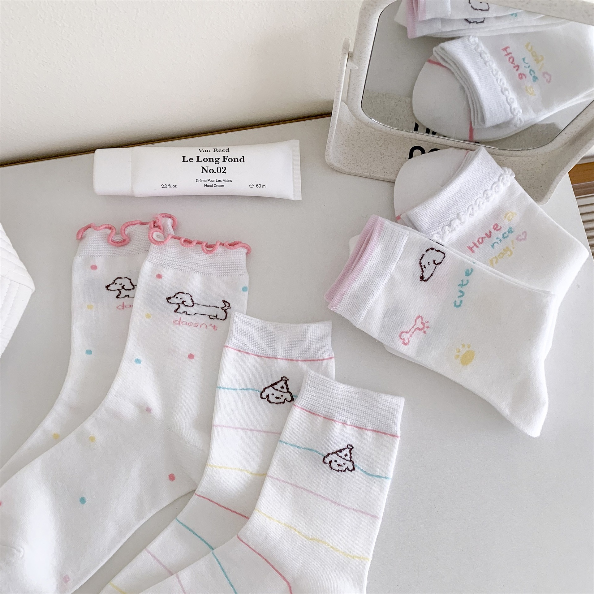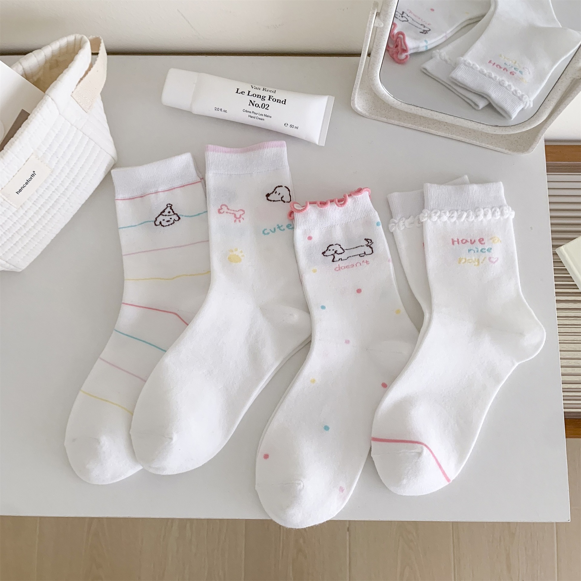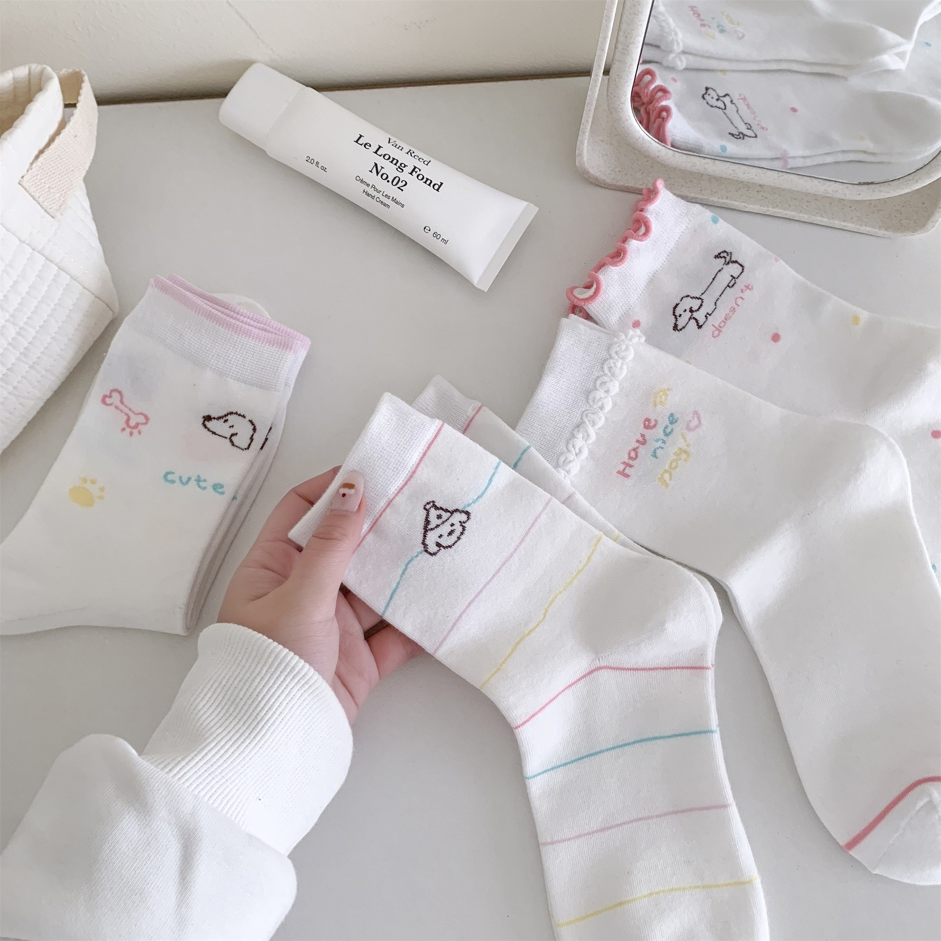 흰색 양말 여성의 봄과 여름 귀여운 그림 강아지 면화 양말 일본 만화 학생 조커 여성 양말 도매스토어 가기