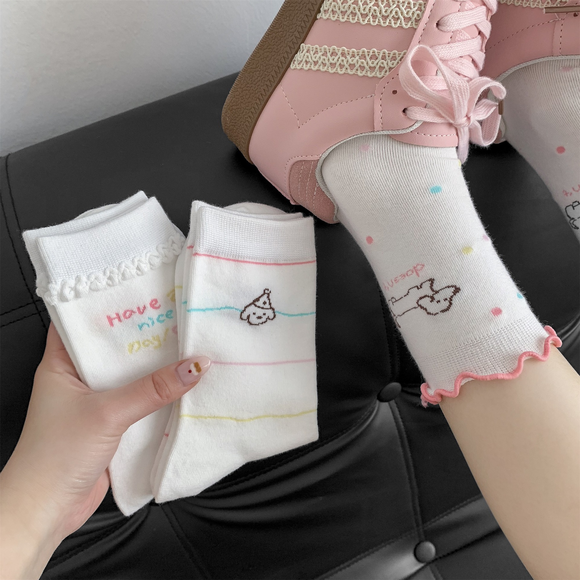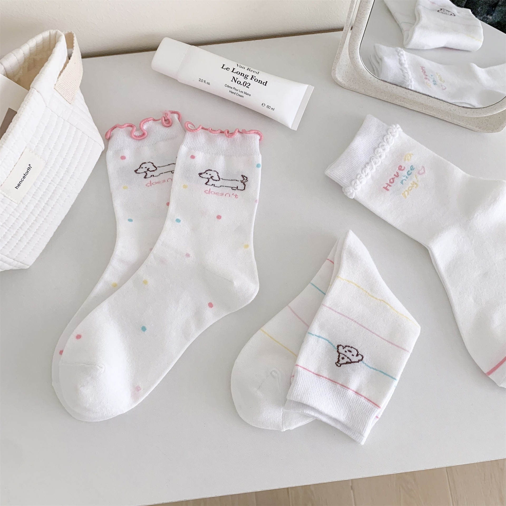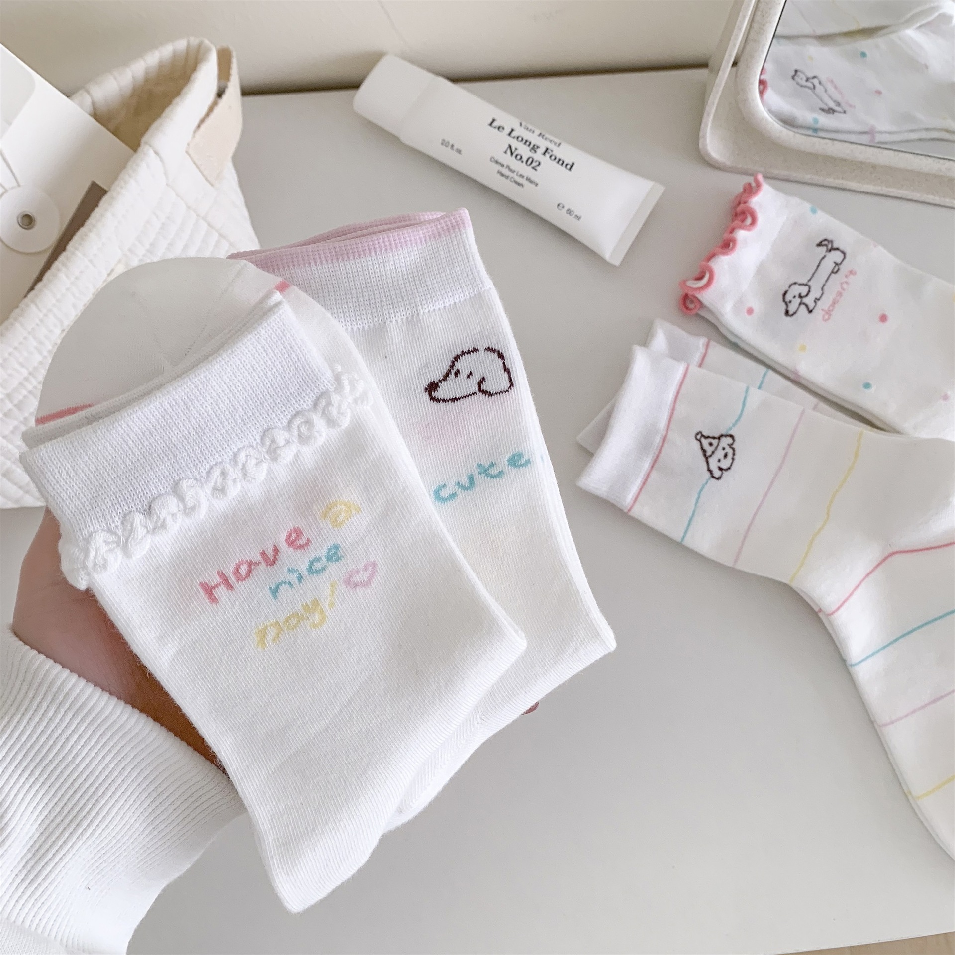 흰색 양말 여성의 봄과 여름 귀여운 그림 강아지 면화 양말 일본 만화 학생 조커 여성 양말 도매스토어 가기