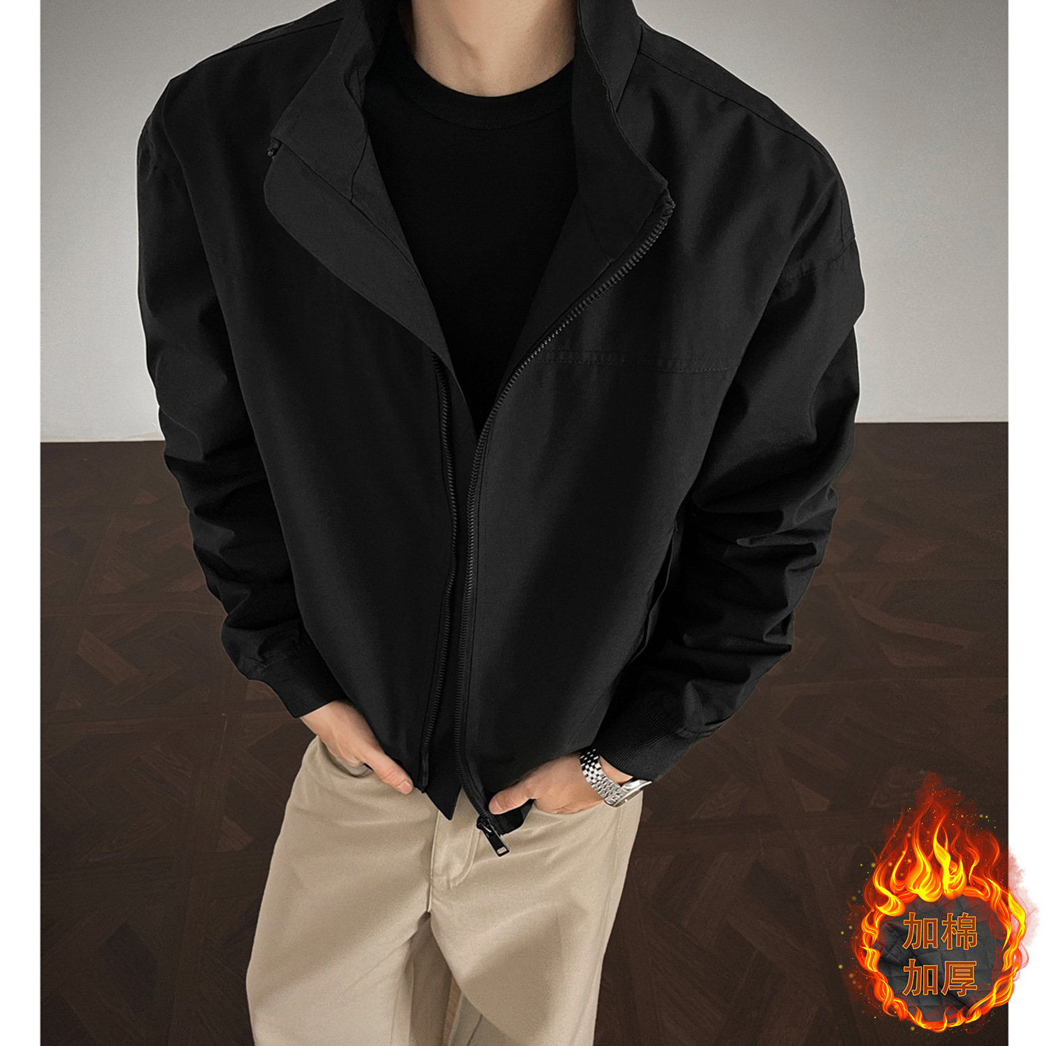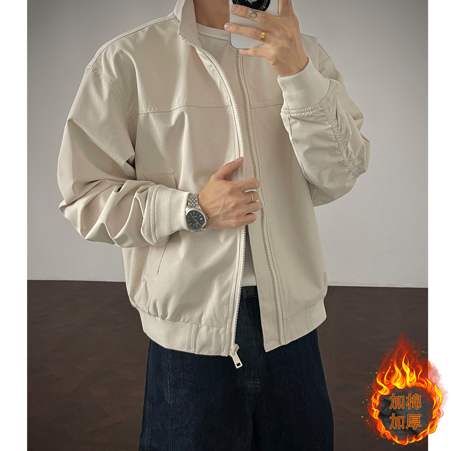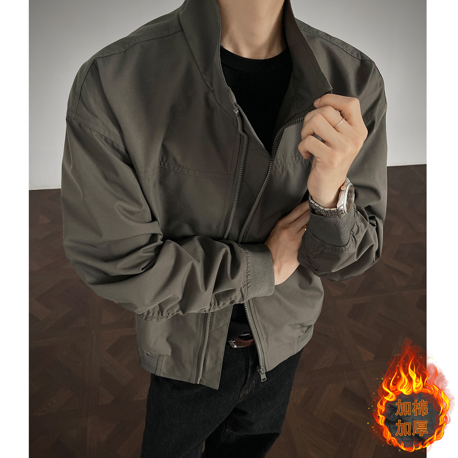 미국 복고풍 3 방 코치 자켓 남자 봄과 가을 짧은 어깨 오버홀 고급 수직 칼라 플라잉 세트