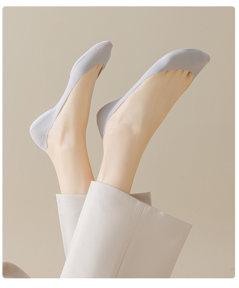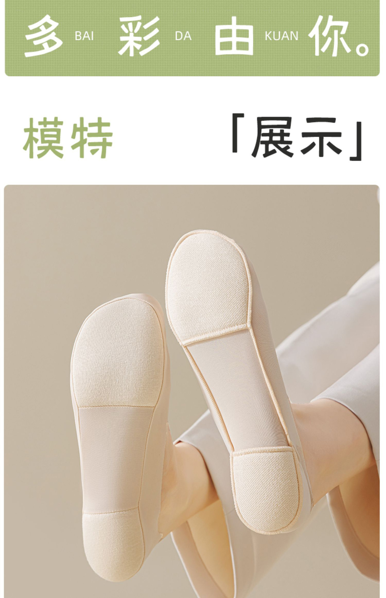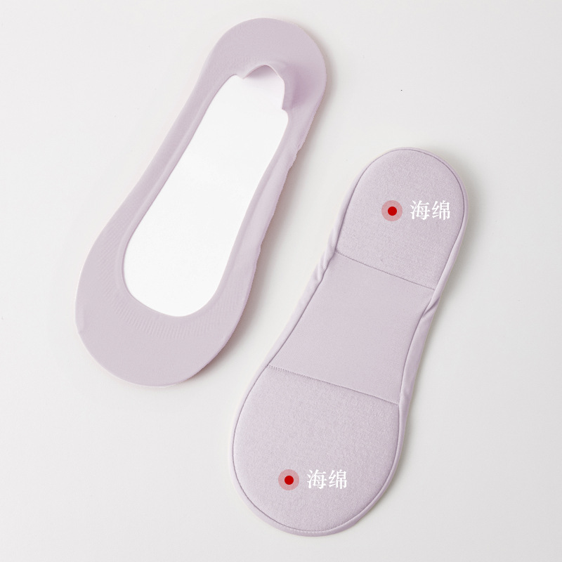 여성용 보트삭스, 순면, 떨어지지 않는 미끄럼 방지 스폰지 바닥, 얇은 아이스 실크, 얕은 입구, 투명, 냄새 방지, 하이힐 양말, 면 바닥