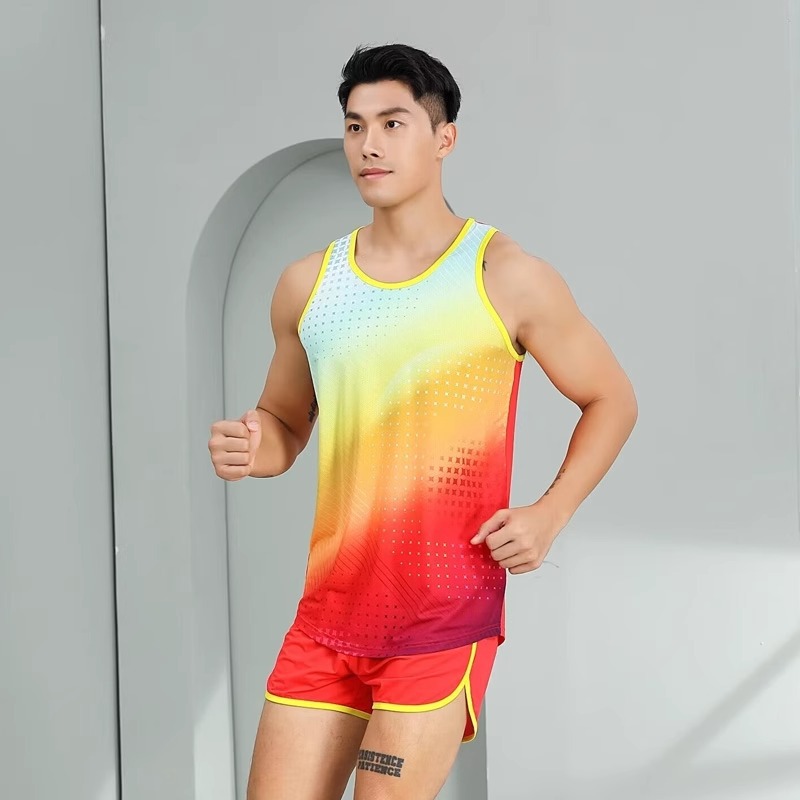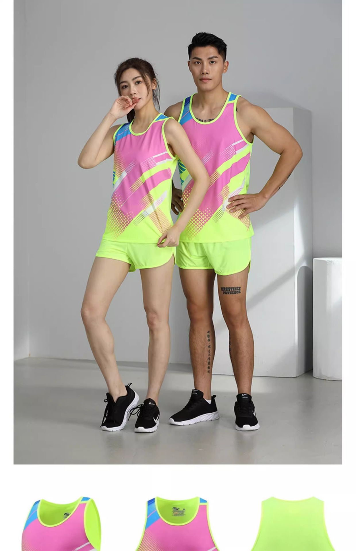 육상 의류 세트 남녀 훈련 피트니스 의류 스프린트 조끼 마라톤 달리기 스포츠 시험 대회 스포츠웨어 인쇄