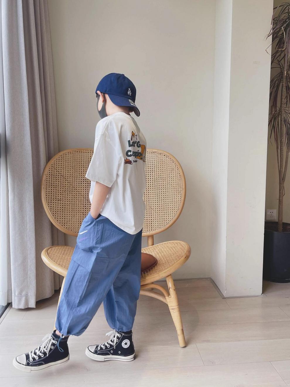 짧은 소매가있는 중대형 어린이를위한 소년 여름 새로운 빨간 재미 신발 패턴 인쇄 티셔츠