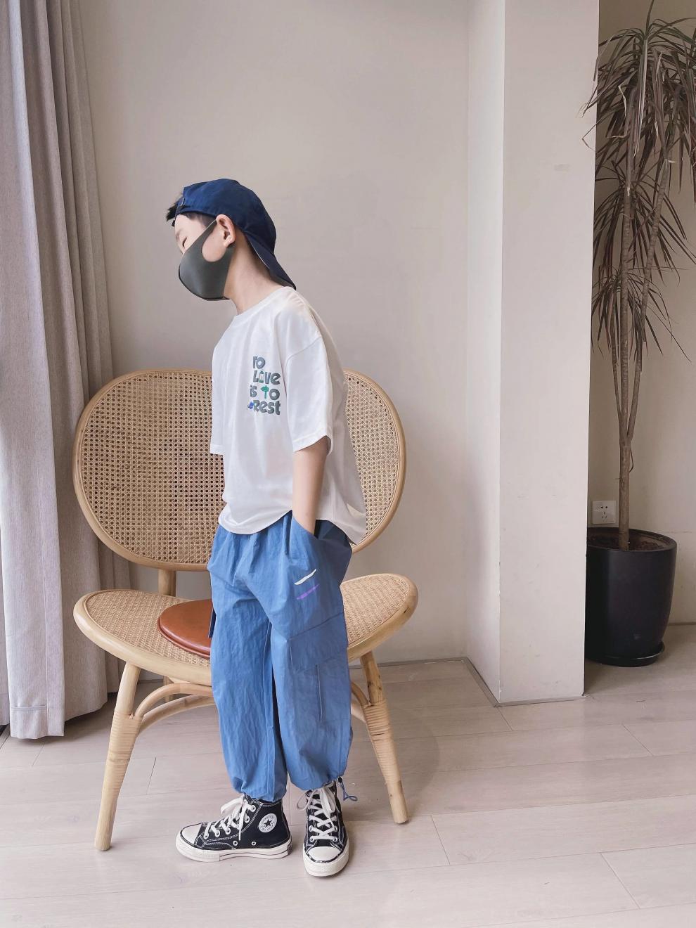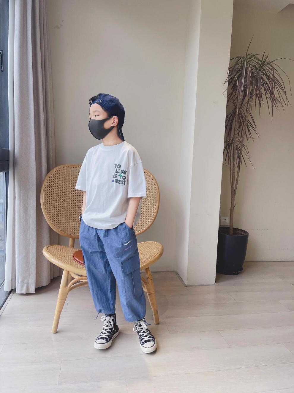 짧은 소매가있는 중대형 어린이를위한 소년 여름 새로운 빨간 재미 신발 패턴 인쇄 티셔츠스토어 가기