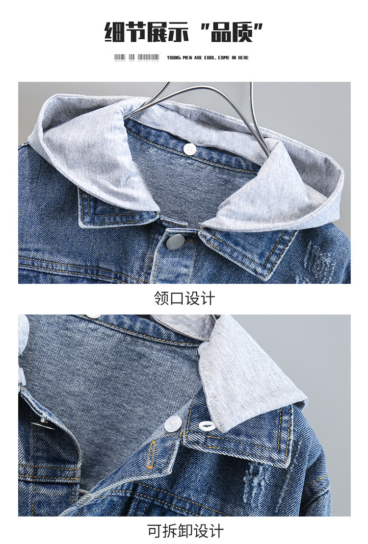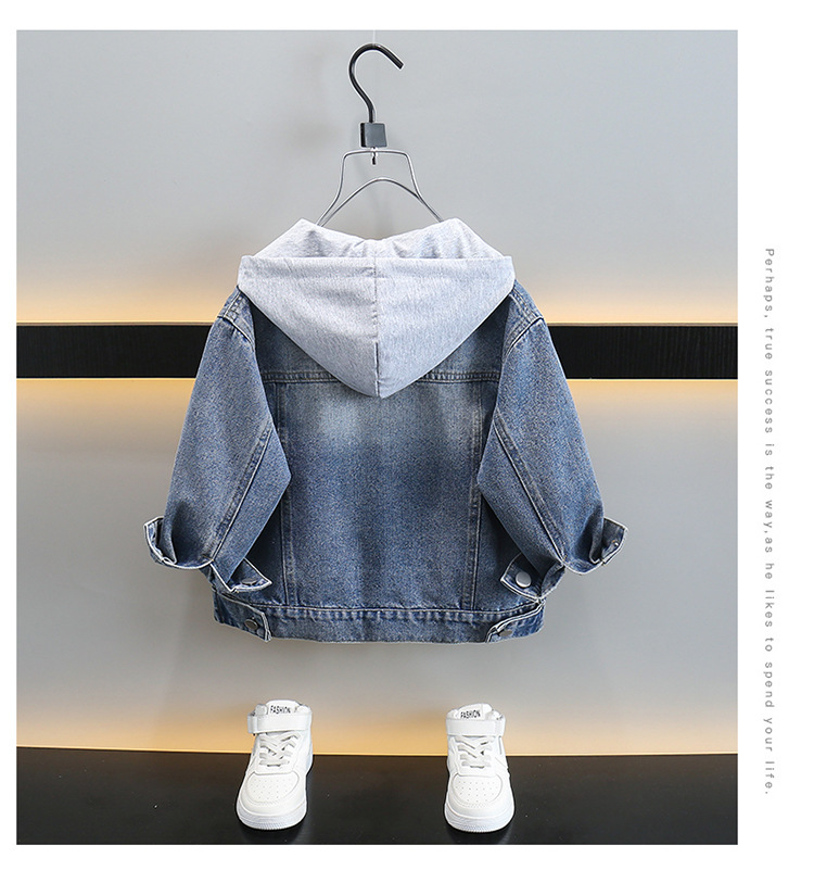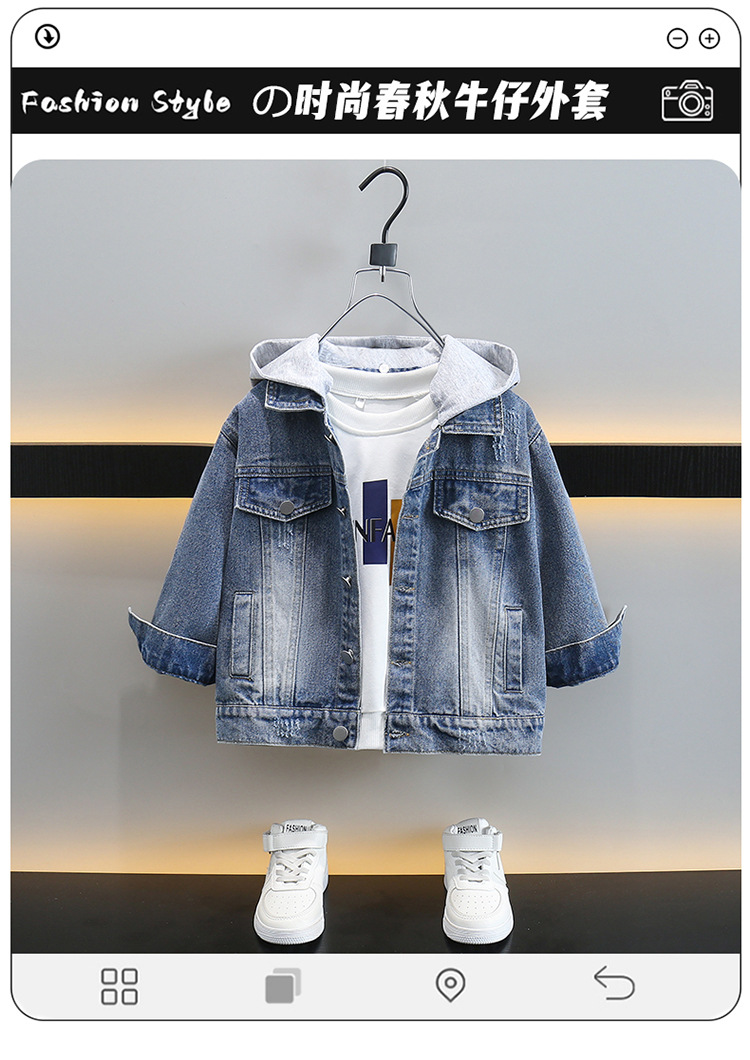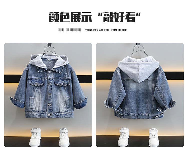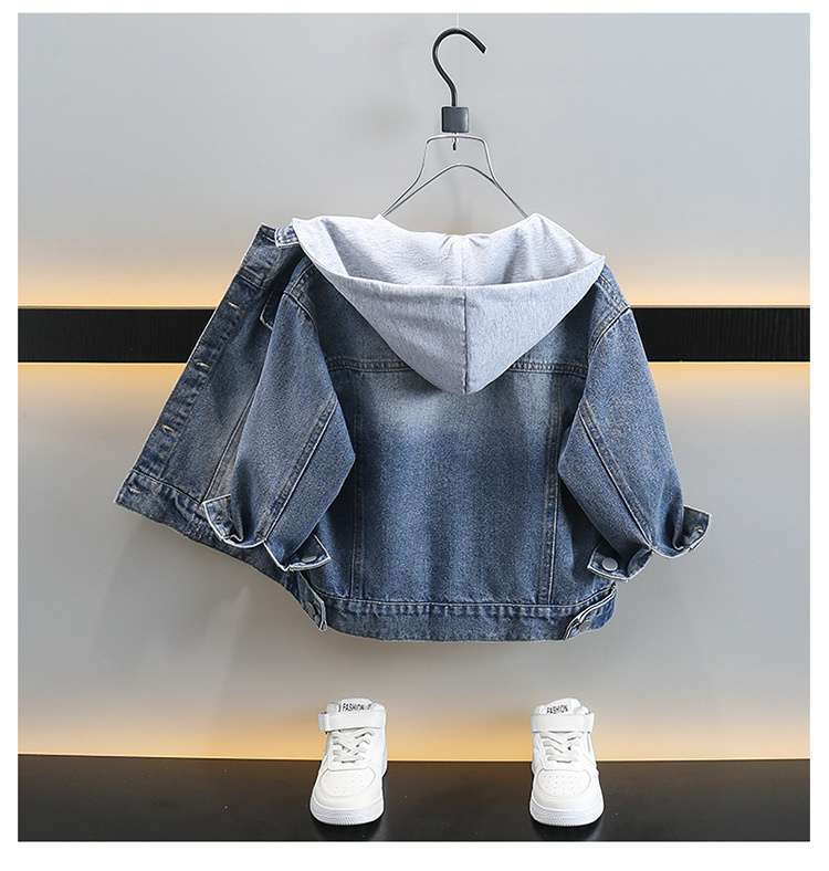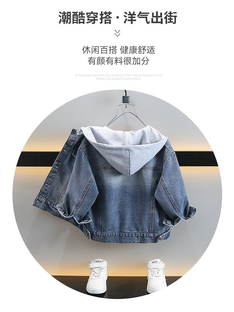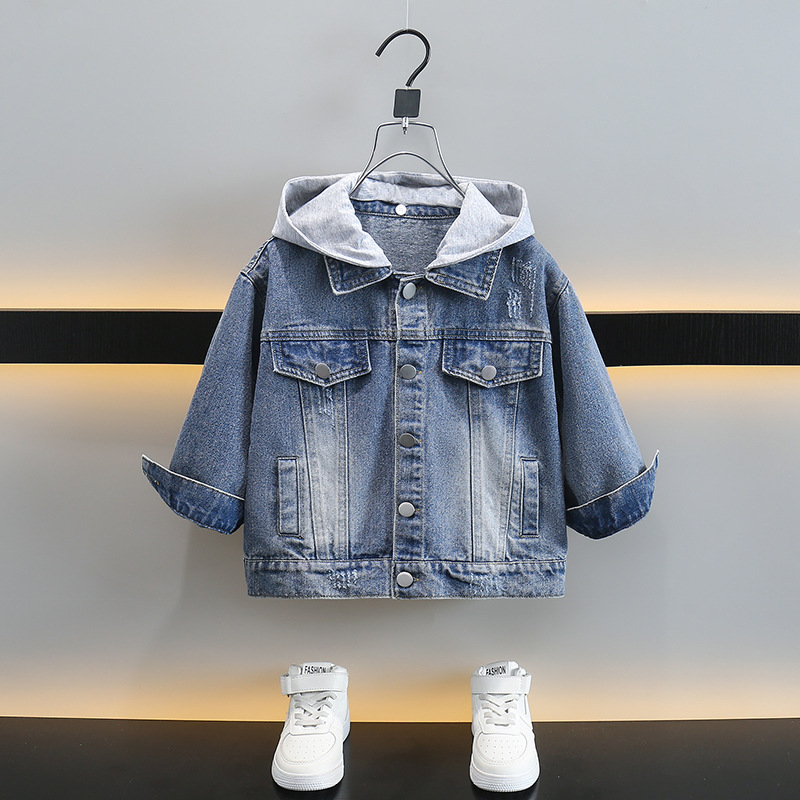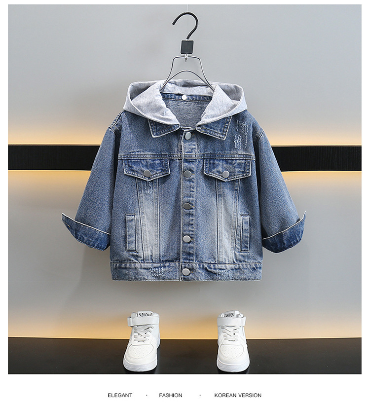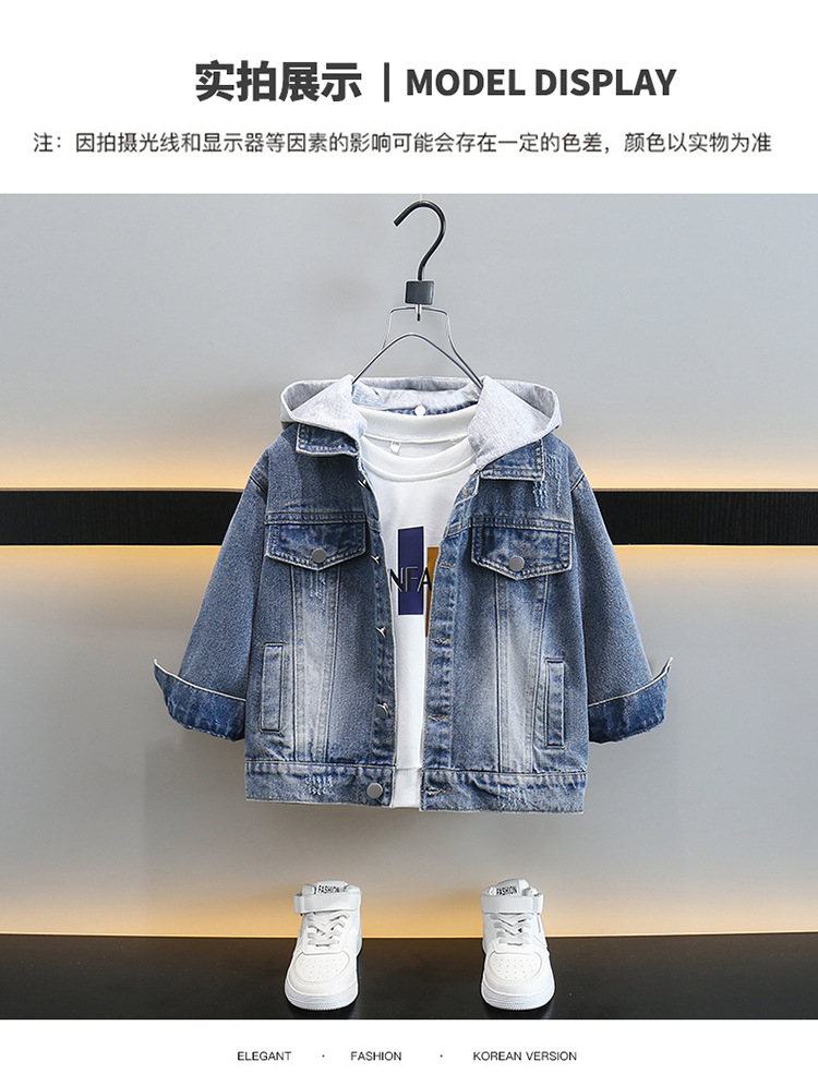 소년 데님 코트 봄과 가을 2025 새로운 한국식 소년 후드 재킷 어린이 러피안 잘 생긴 청바지스토어 가기